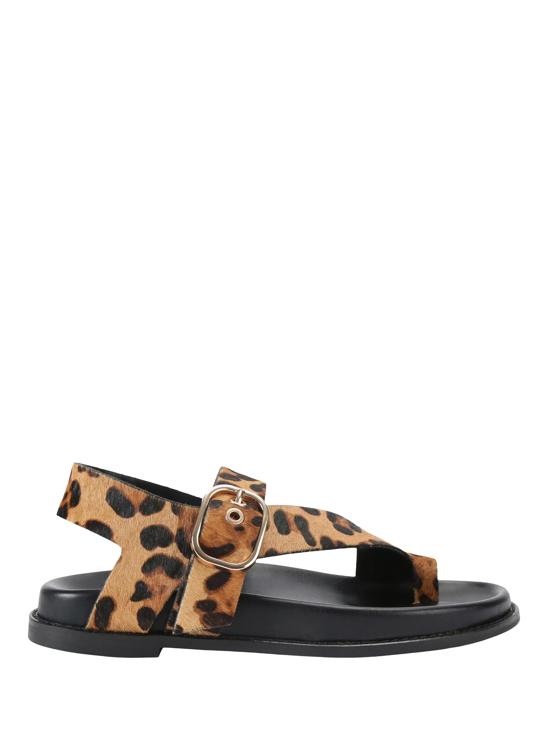 KG Kurt Geiger leopard print suede T-bar sandals. The soft upper and flat sole keep things practical for your routine while the buckle fastening ensures a secure fit. A playful take on everyday comfort.
