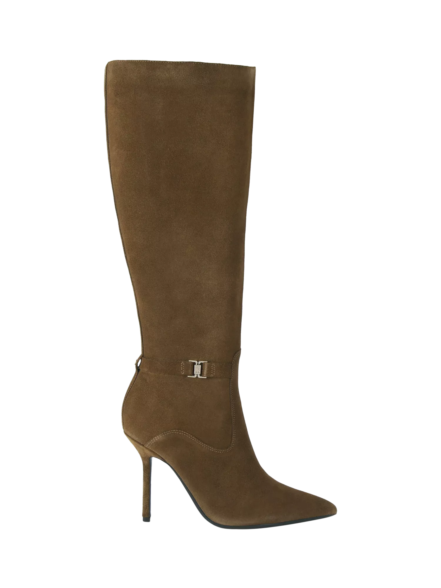 A pair of KG Kurt Geiger knee-high boots. The high stiletto heel and pointed toe add striking height, while a zip fastening ensures ease. Suede uppers offer comfort for your plans.