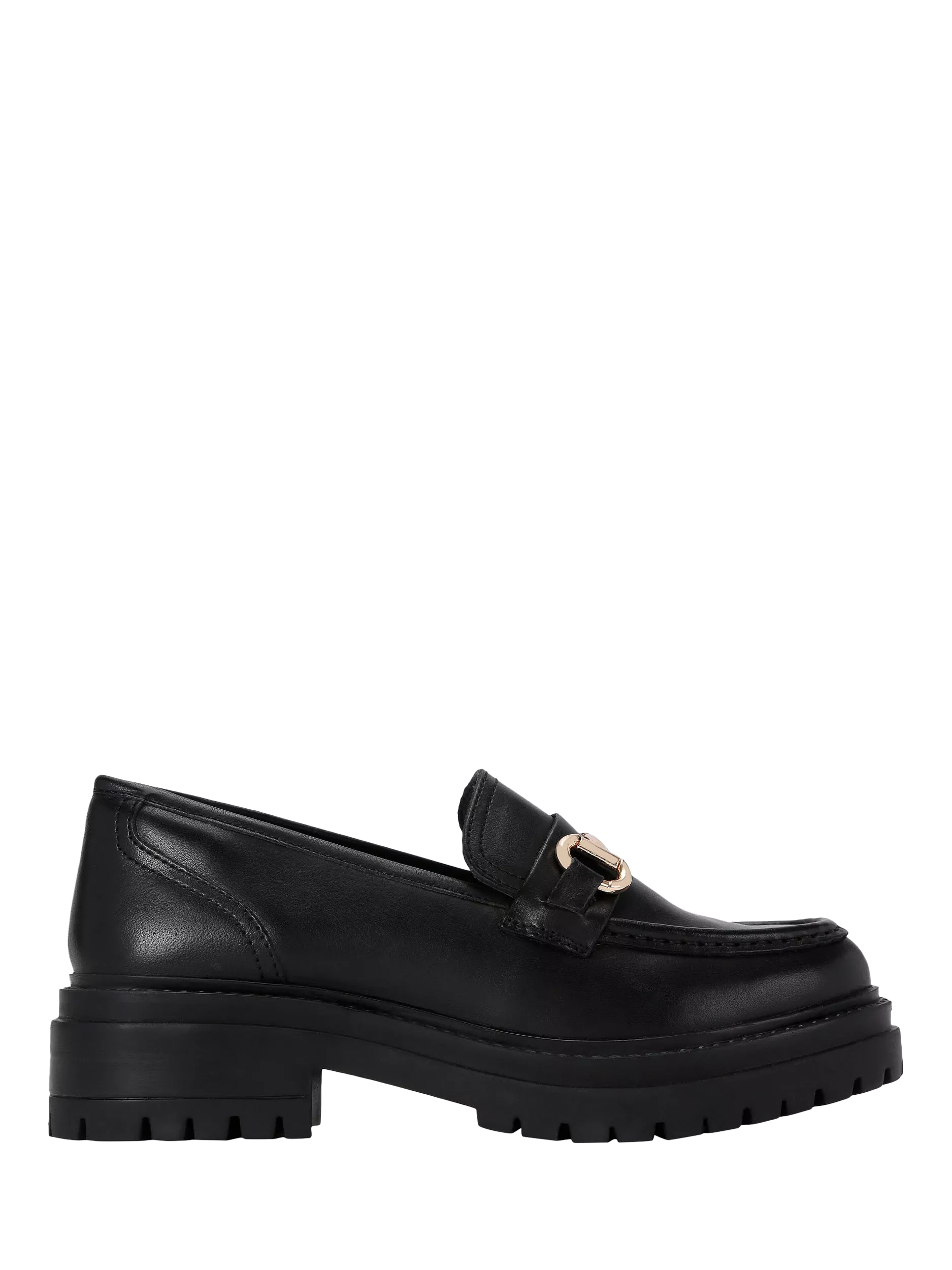 This Tasha Loafer is crafted from leather with a gold horse bit chain across the vamp and an extra chunky sole.