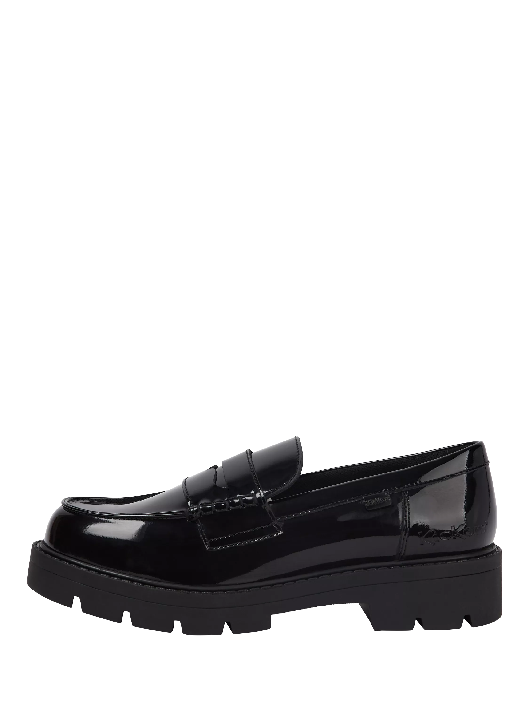 The Kori Loafer Patent. A classic. These school shoes are on trend, and stylish. Crafted from a shiny patent leather, there's no getting away from the Kickers' signature attitude. Style with a simple white sock and wear everywhere, it's that easy.