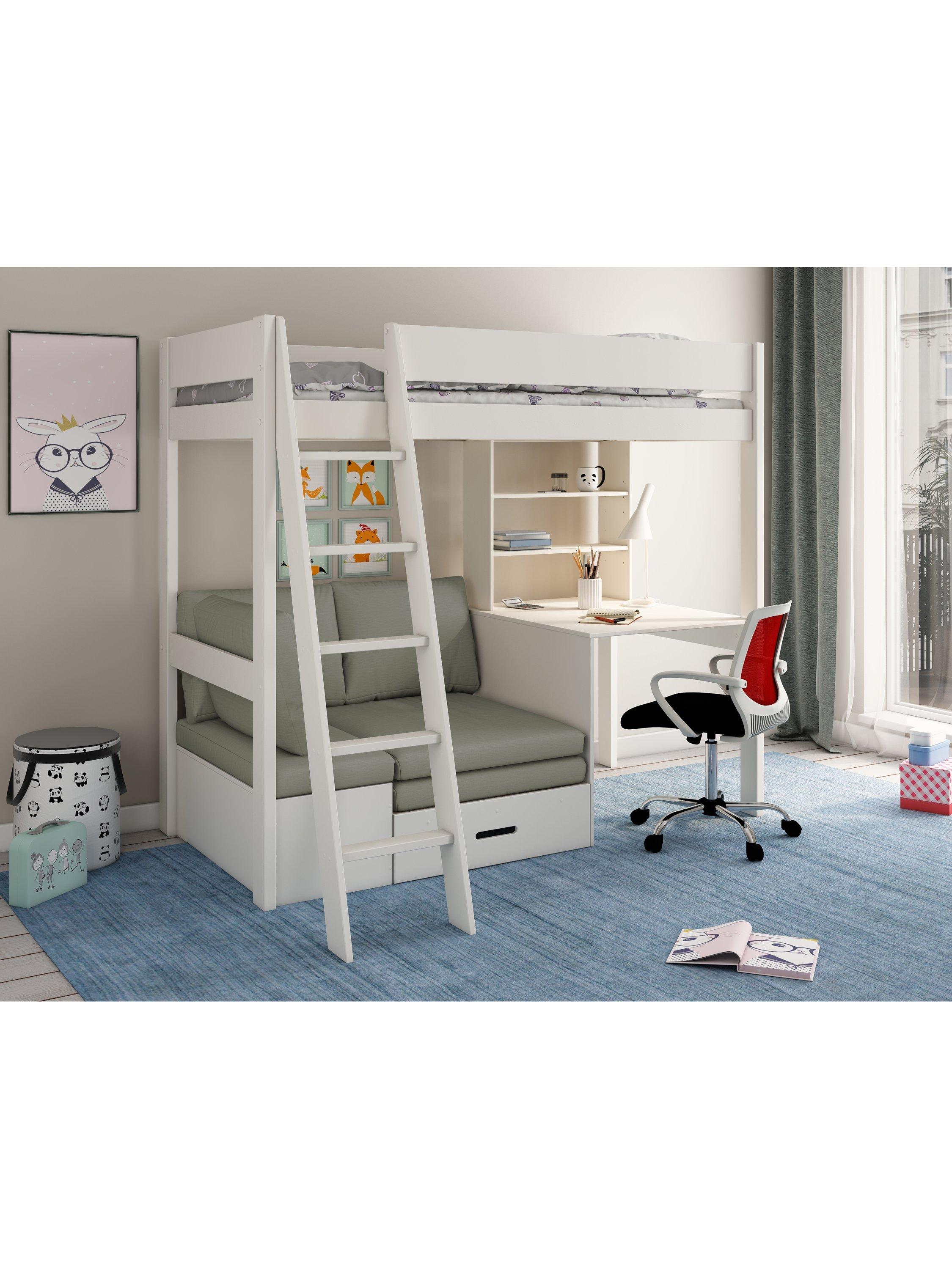 Kids AvenueEstella 4 High Sleeper Bed Frame with Futon, Single, White