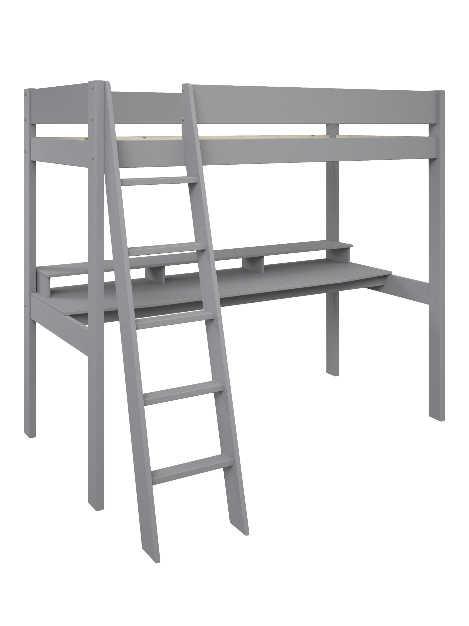 The high sleeper is made from solid pine wood. The sloping ladder makes it easy to get into the sleeping area, and the five sturdy steps provide a safe and secure way to climb up and down. It’s made to fit a UK single mattress.