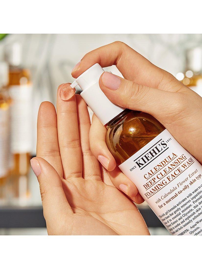 An efficacious foaming cleanser that gently removes impurities and leaves skin feeling moisturised. This creamy gel formula is enriched with Calendula Extract and activates with water to create a dense foam. Cleanse away impurities and dirt with this deep cleansing face wash for oily skin and normal skin. Skin feels replenished and soothed.