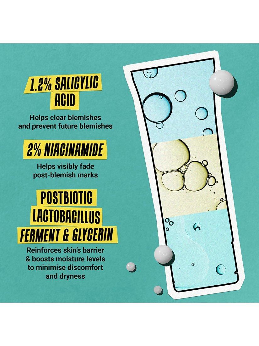 Concentrated with 1.2% Salicylic Acid, 2% Niacinamide, Postbiotic Lactobacillus Ferment and Glycerin, our formula works as an all-over daily blemish treatment that helps to improve skin clarity and reinforce the skin’s barrier.