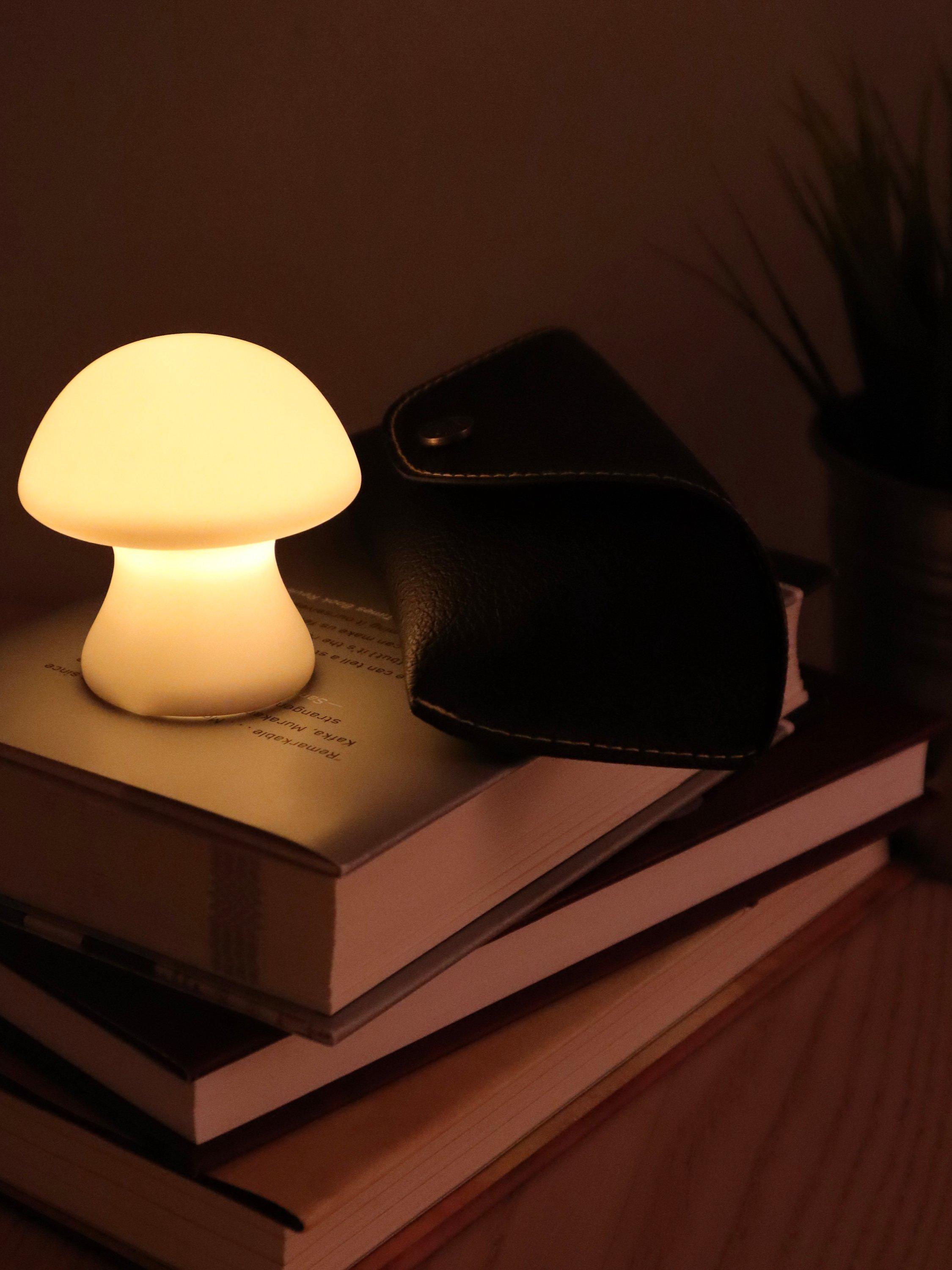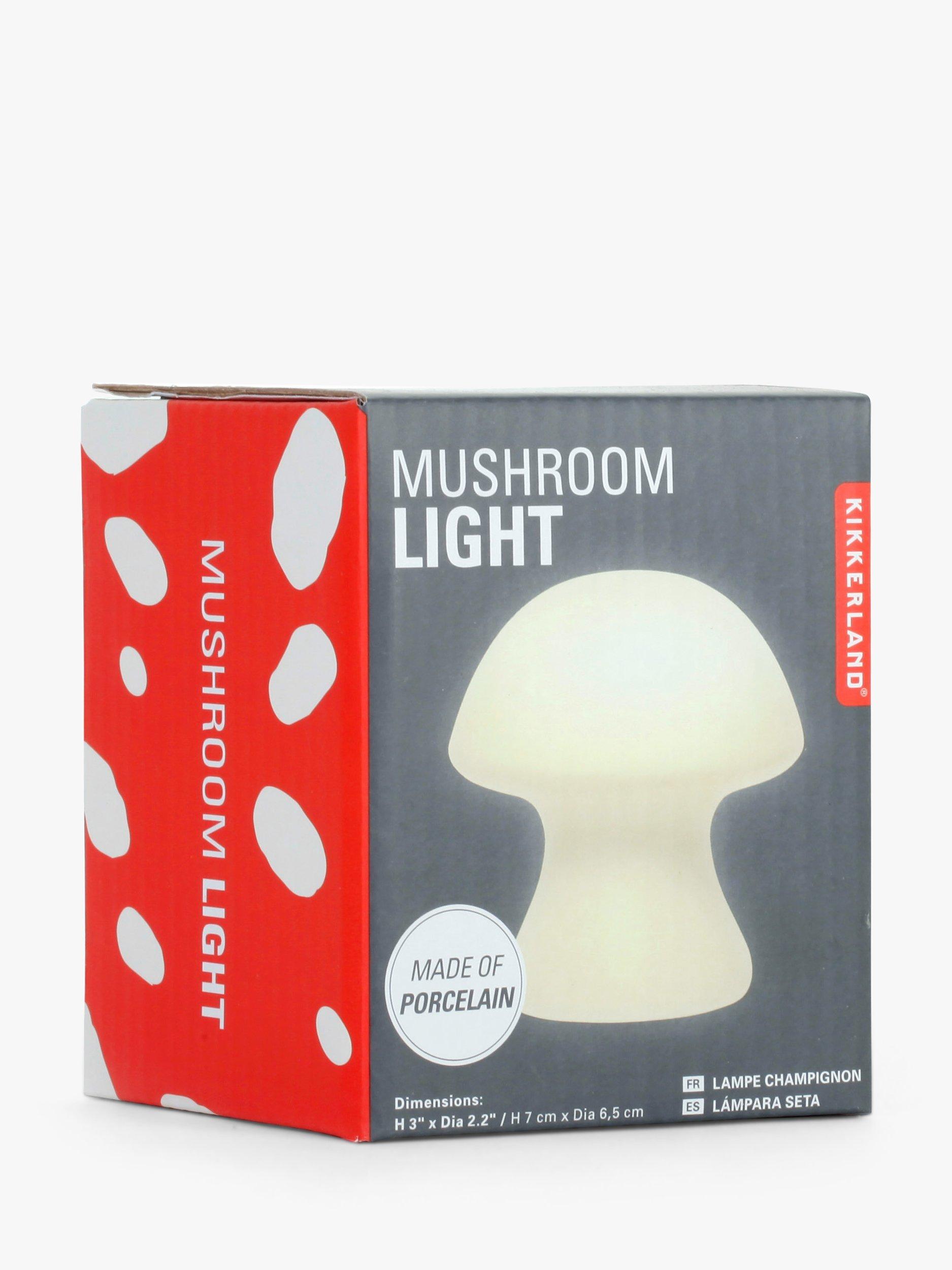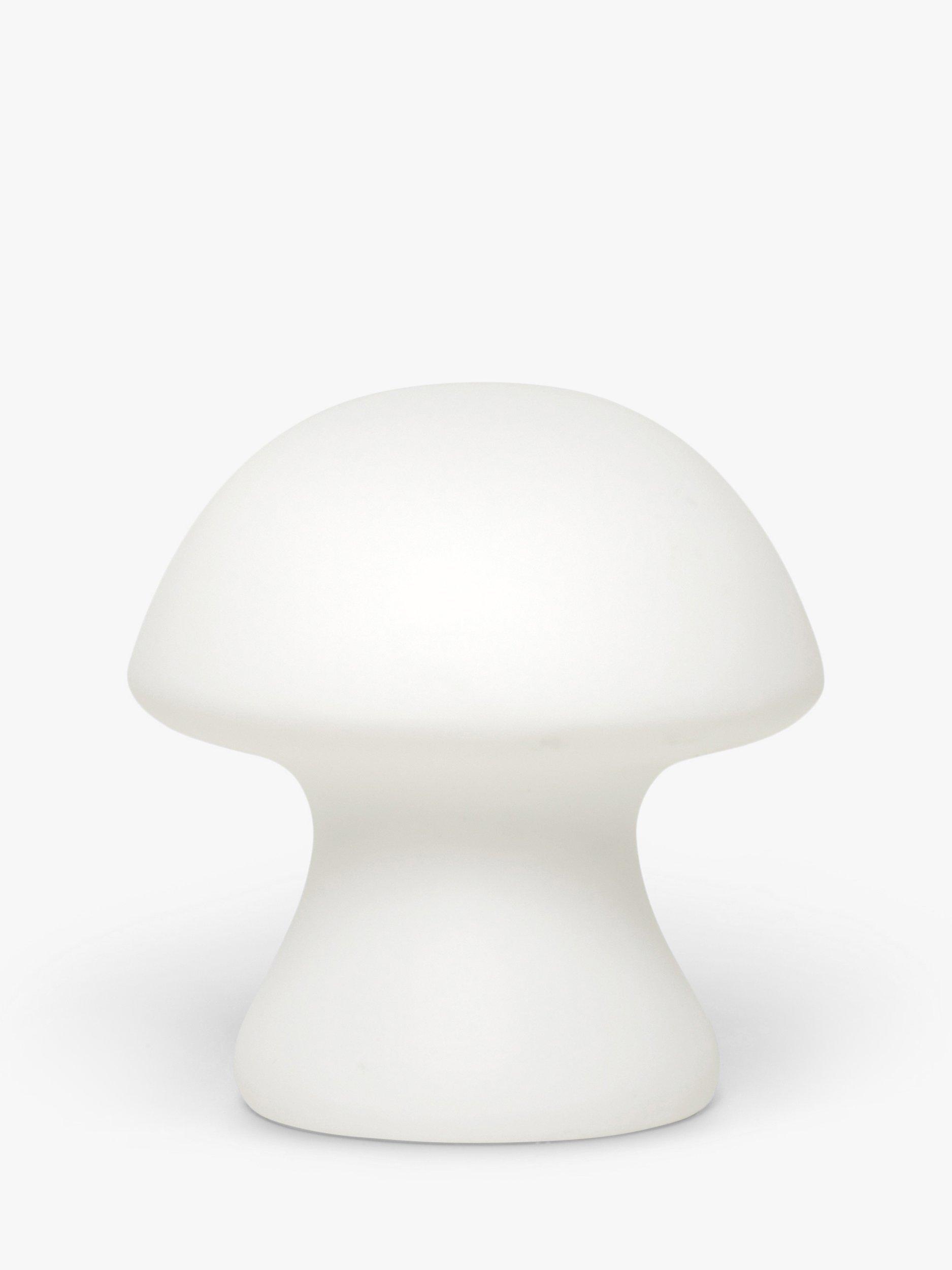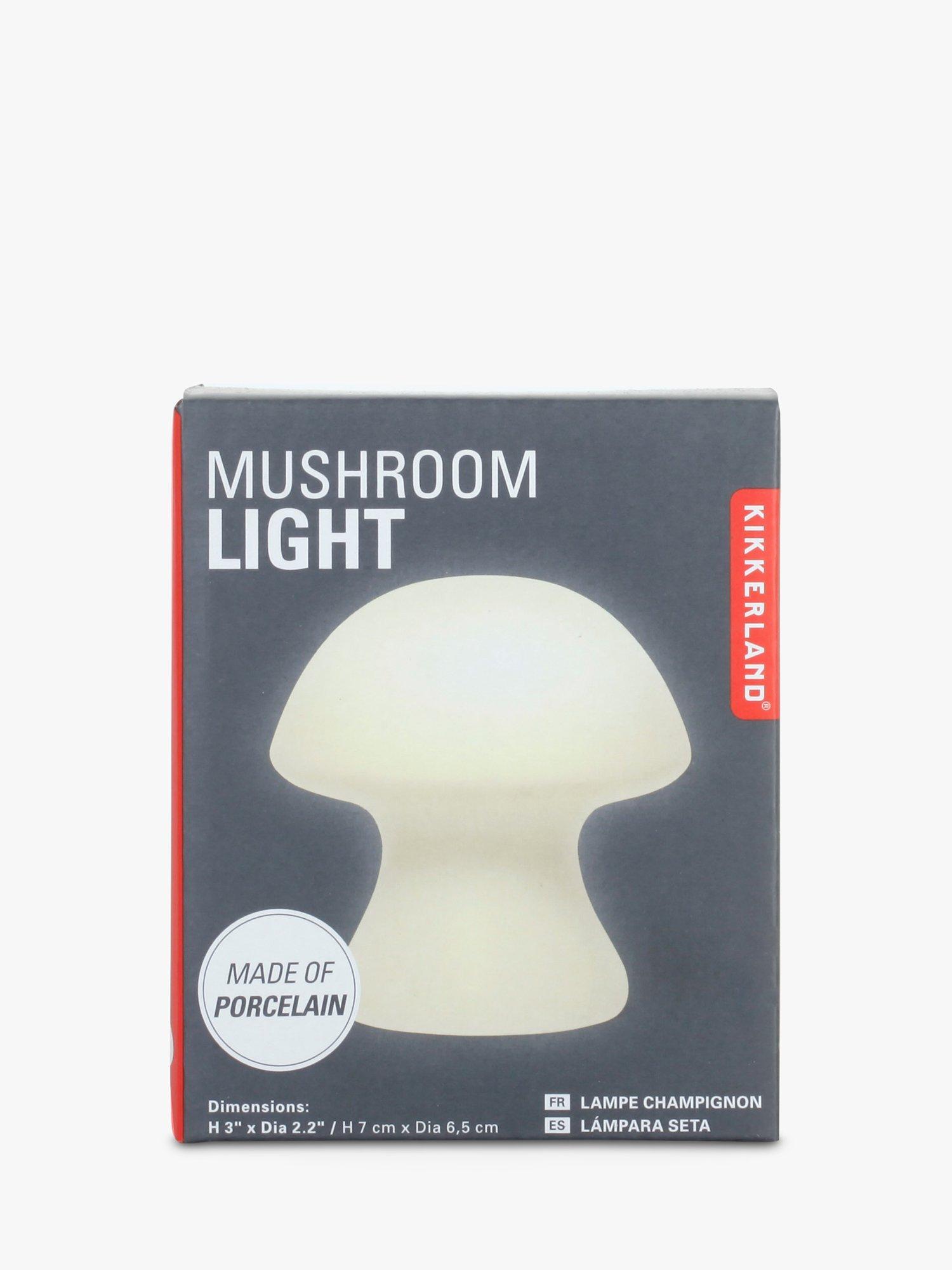 This mushroom-shaped porcelain light provides a lovely all-round, diffuse glow. A cordless design with three LR44 mercury-free batteries included.