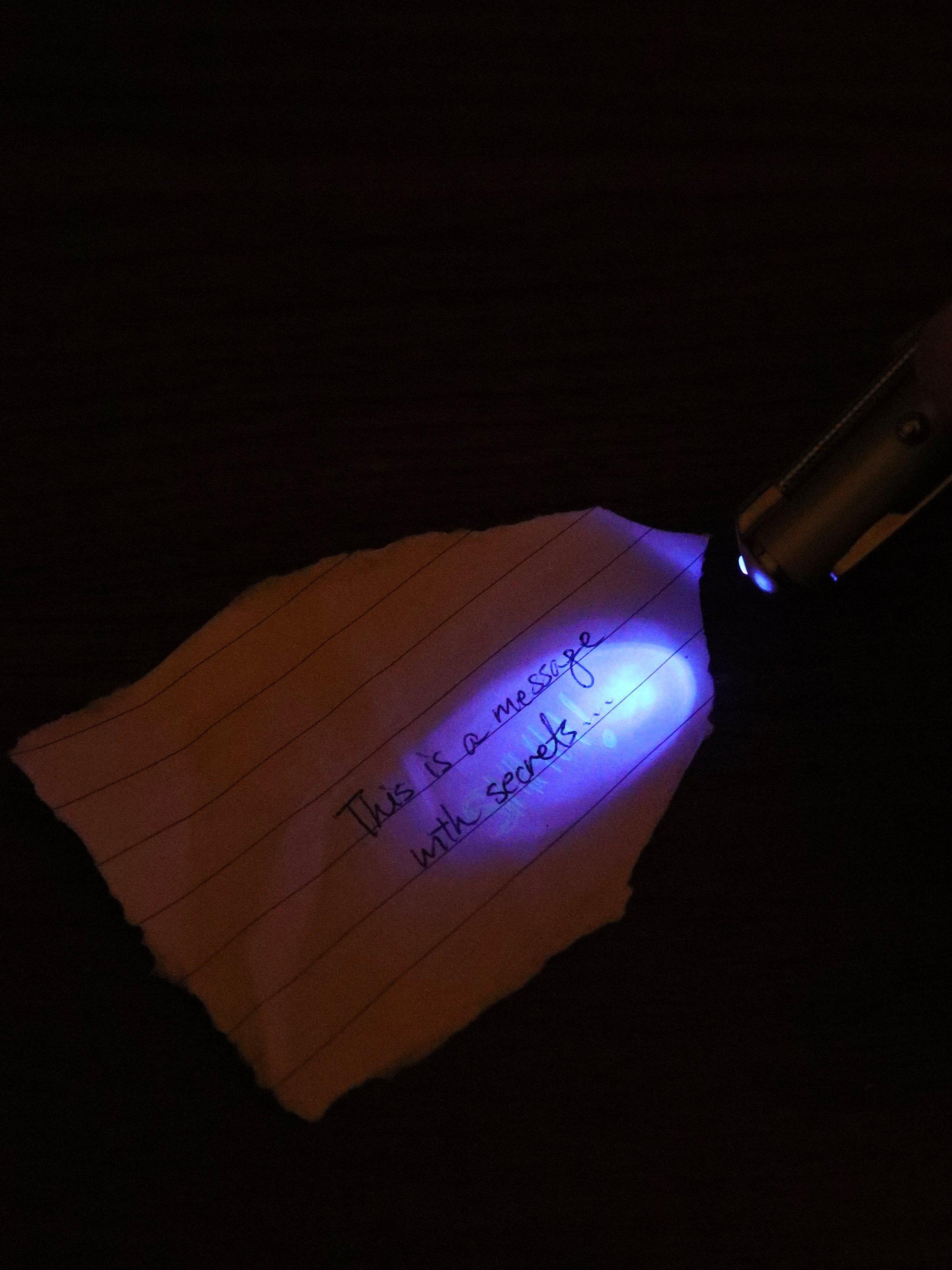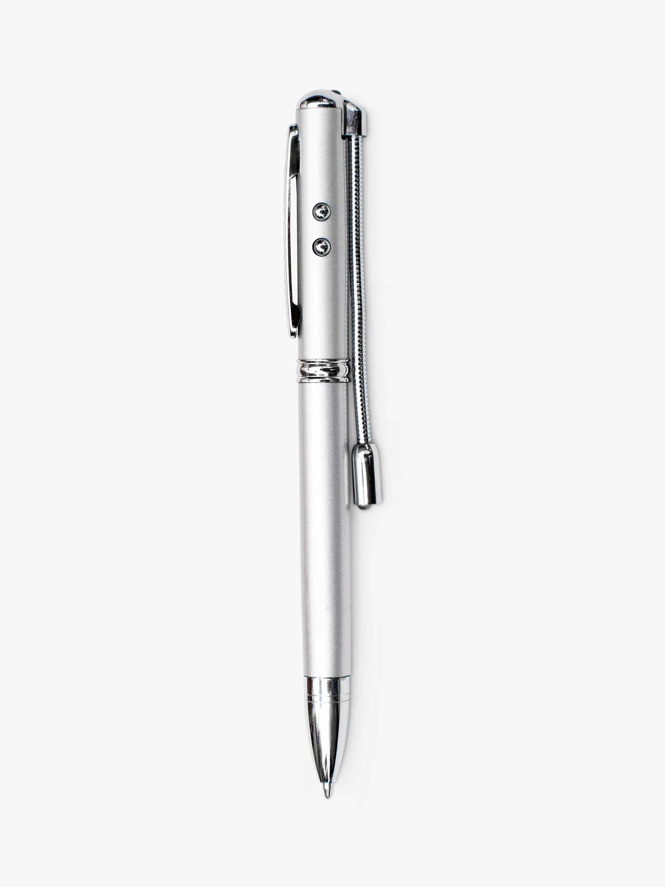 Spy Pen - Write with top secret precission! Includes: 3 Lights (laser, blacklight, flashlight), 2 inks (black, invisable).