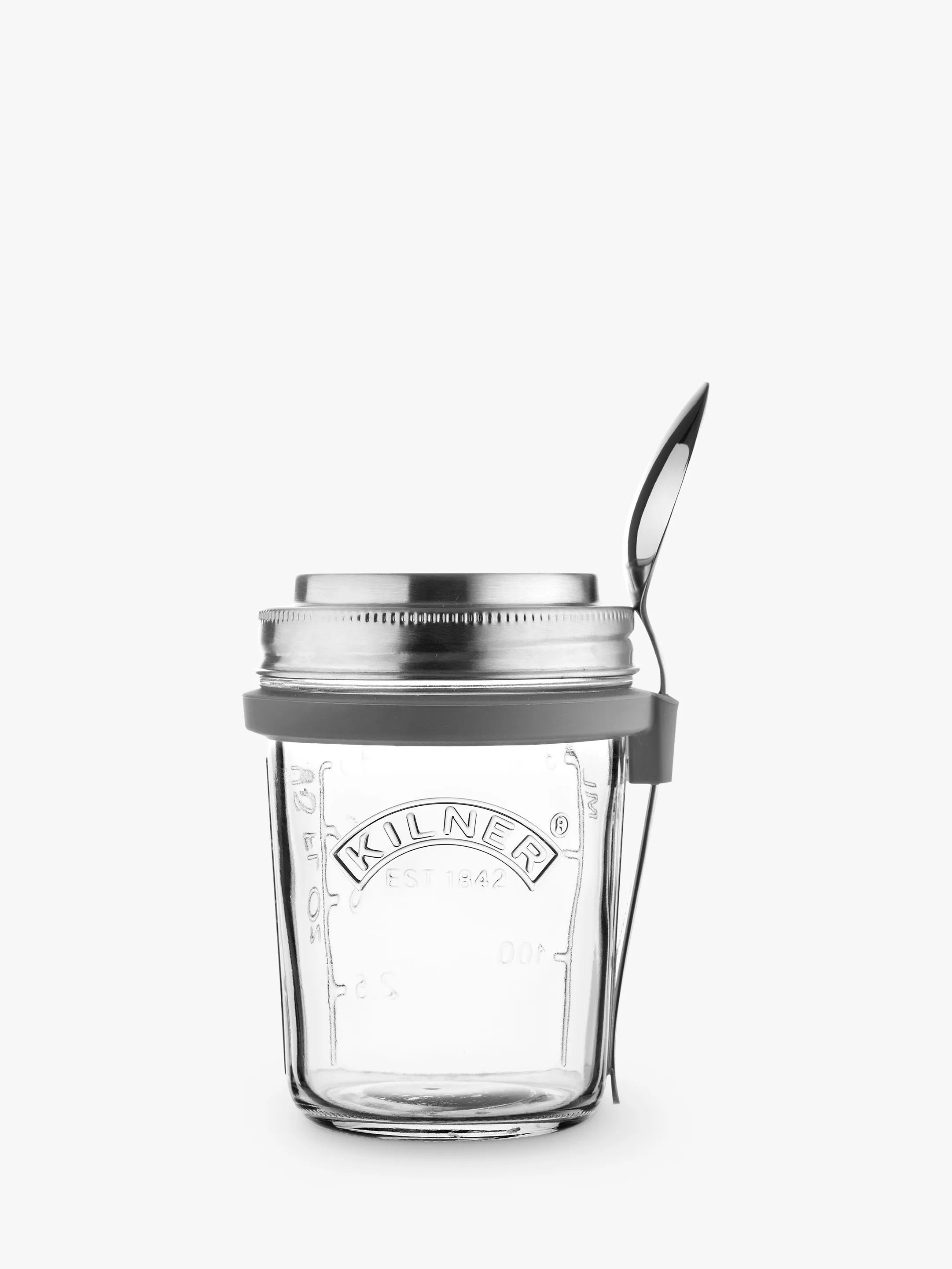 KilnerGlass Breakfast Jar & Spoon Set, 350ml, Clear