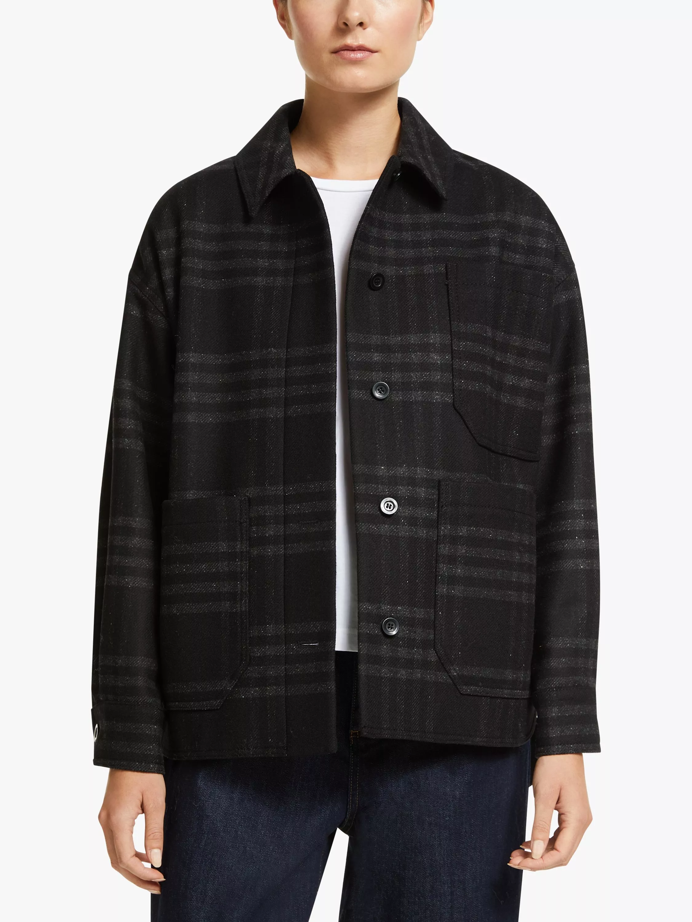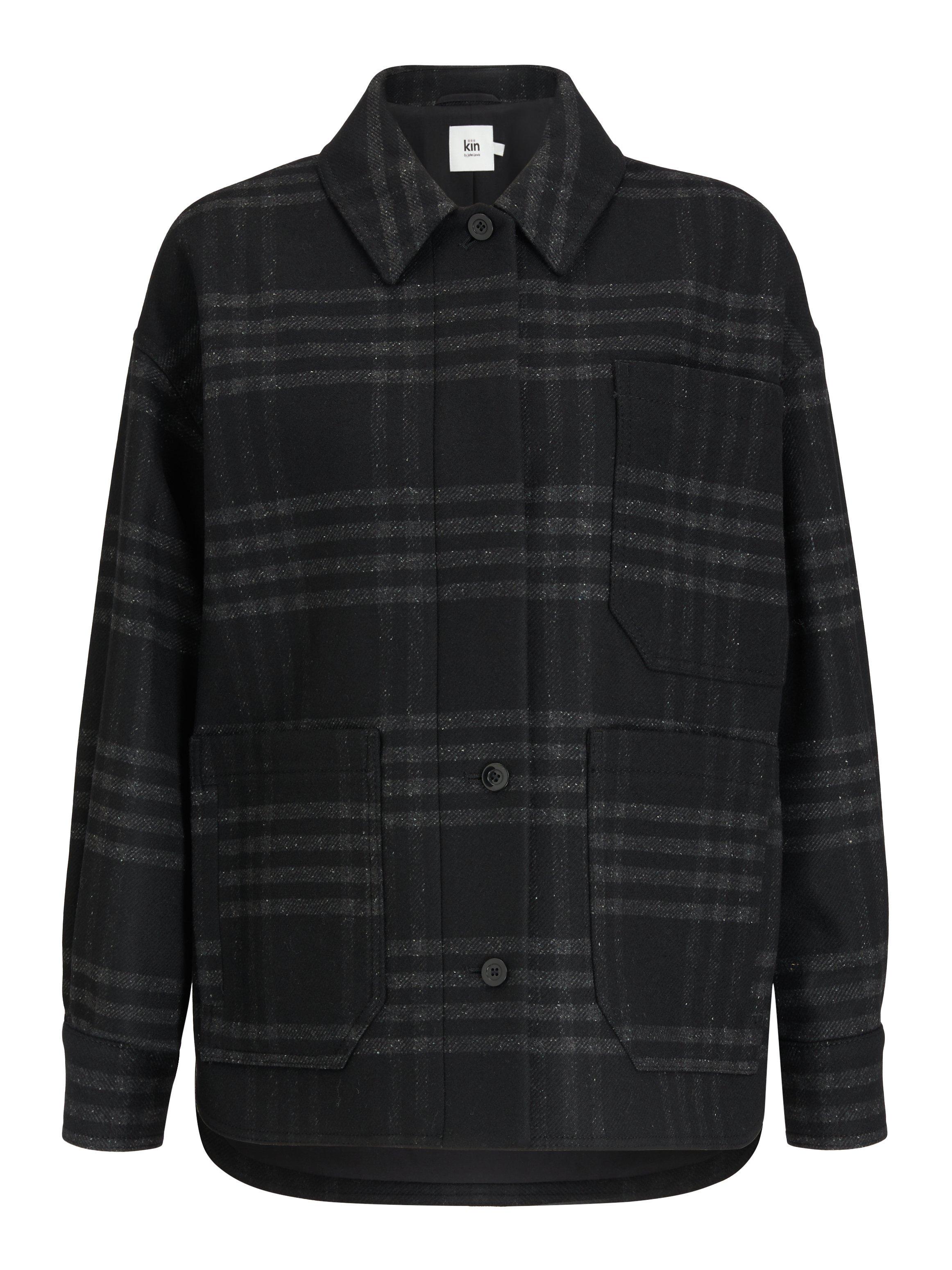 The best example of Kin's signature understated style, this check jacket is cut from a soft wool blend in a clean and contemporary shape. Workwear inspired with large front pockets, it has a button front that leads to a point collar with dropped shoulder sleeves and a stepped back hem for an easy fit over the hips.