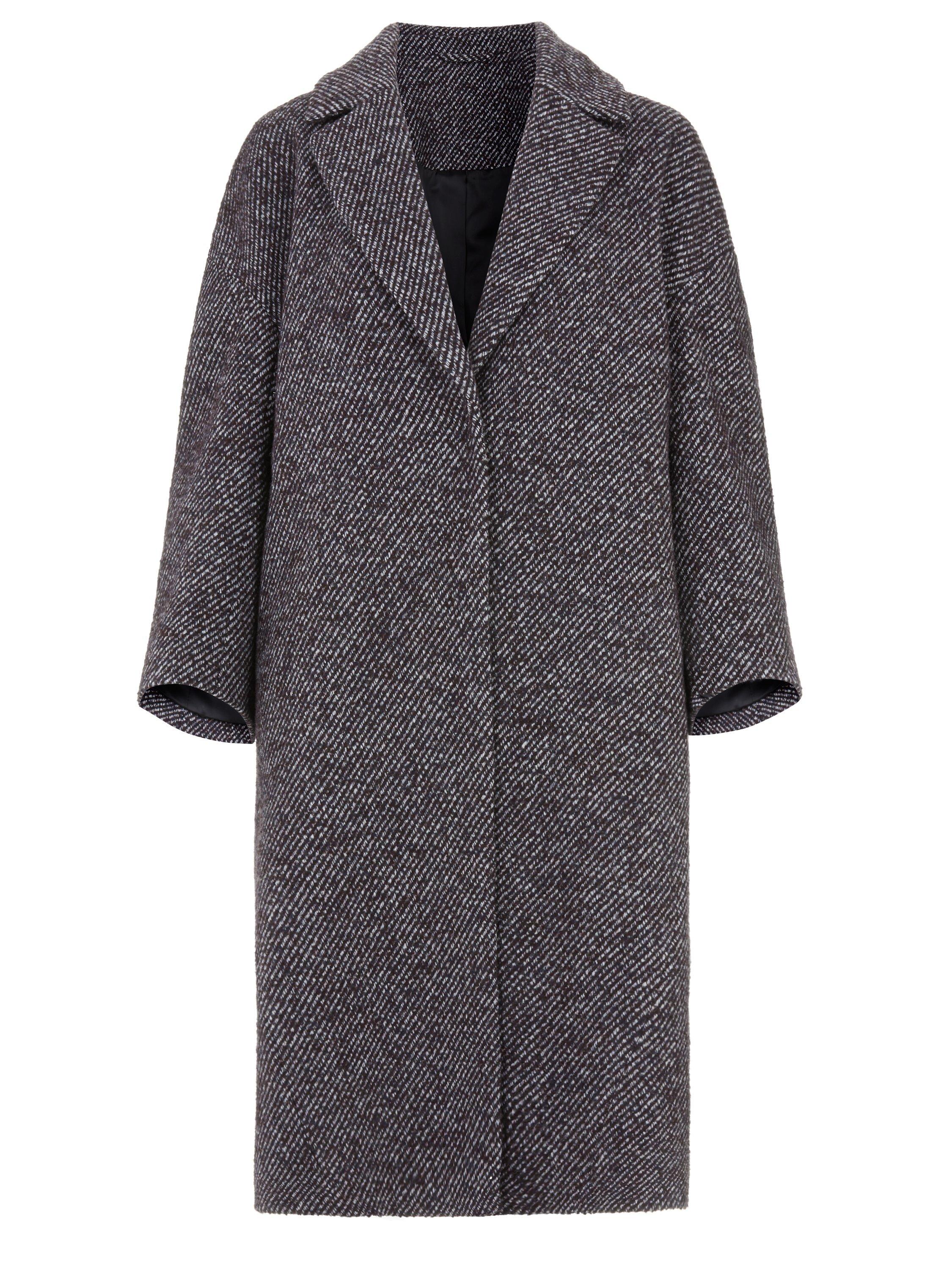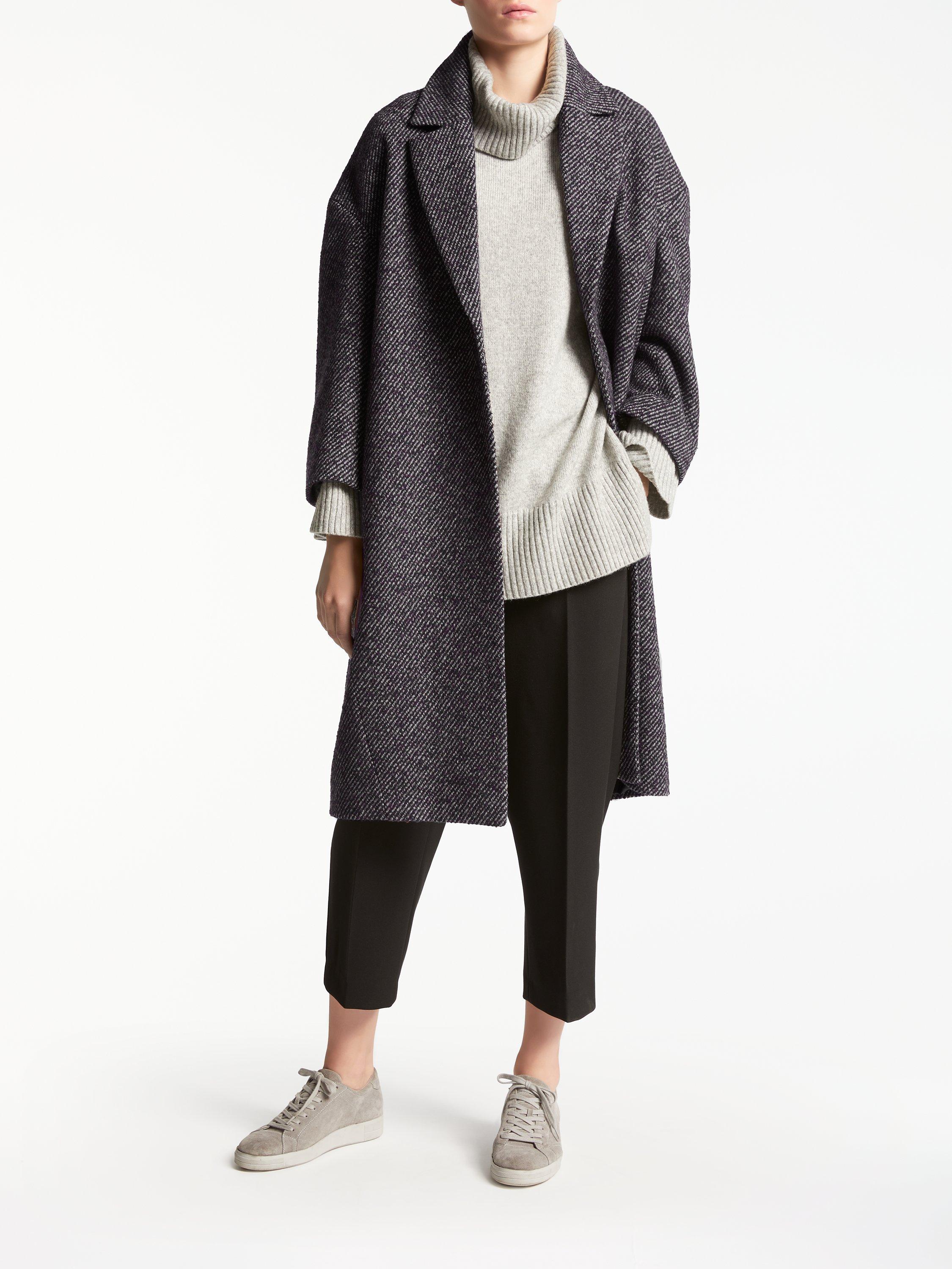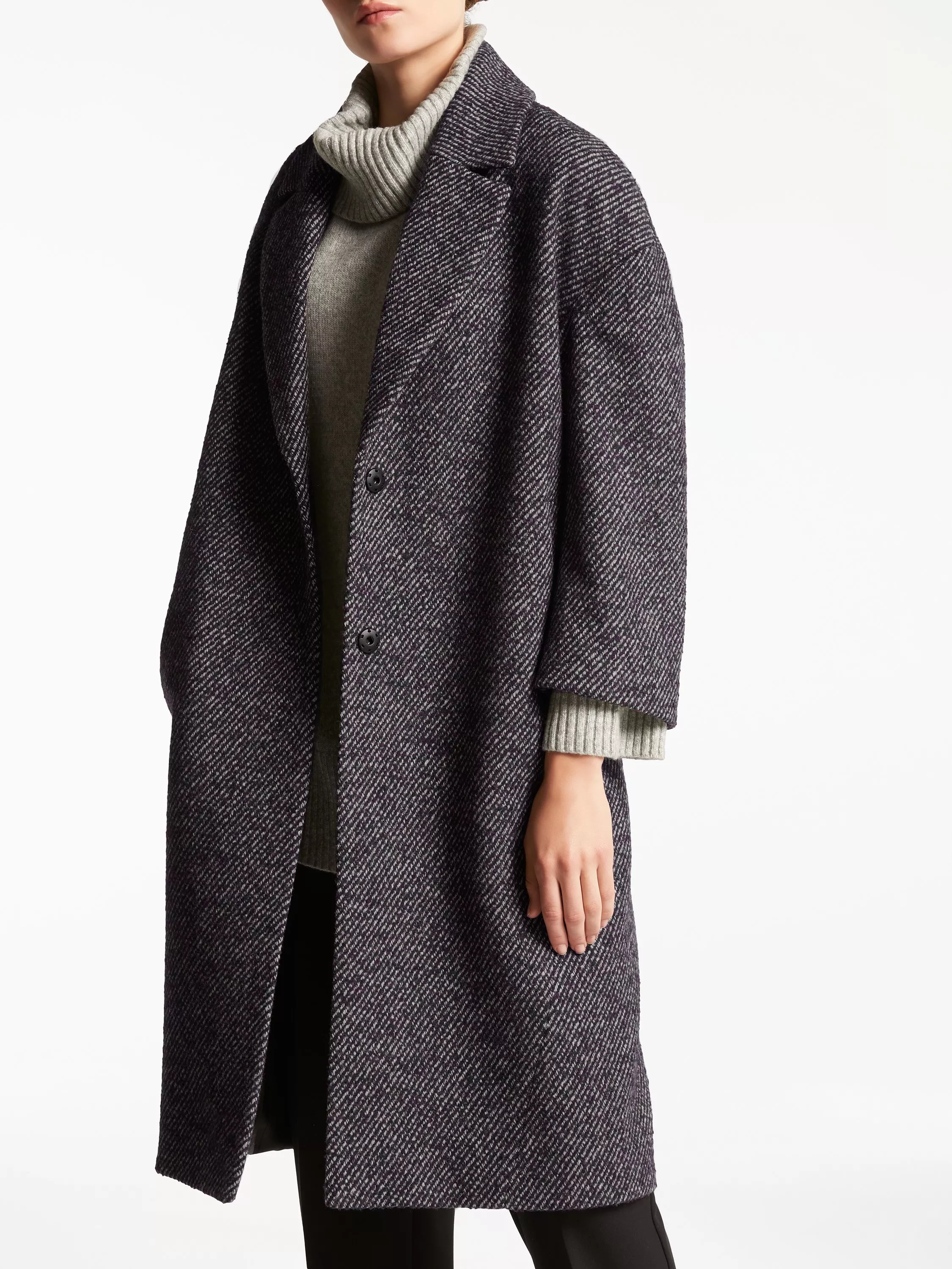 In classic Kin style this chic and contemporary cocoon style wool-rich coat has a sleek and minimal shape, with pocket detail, cropped sleeves and a notch lapel collar.