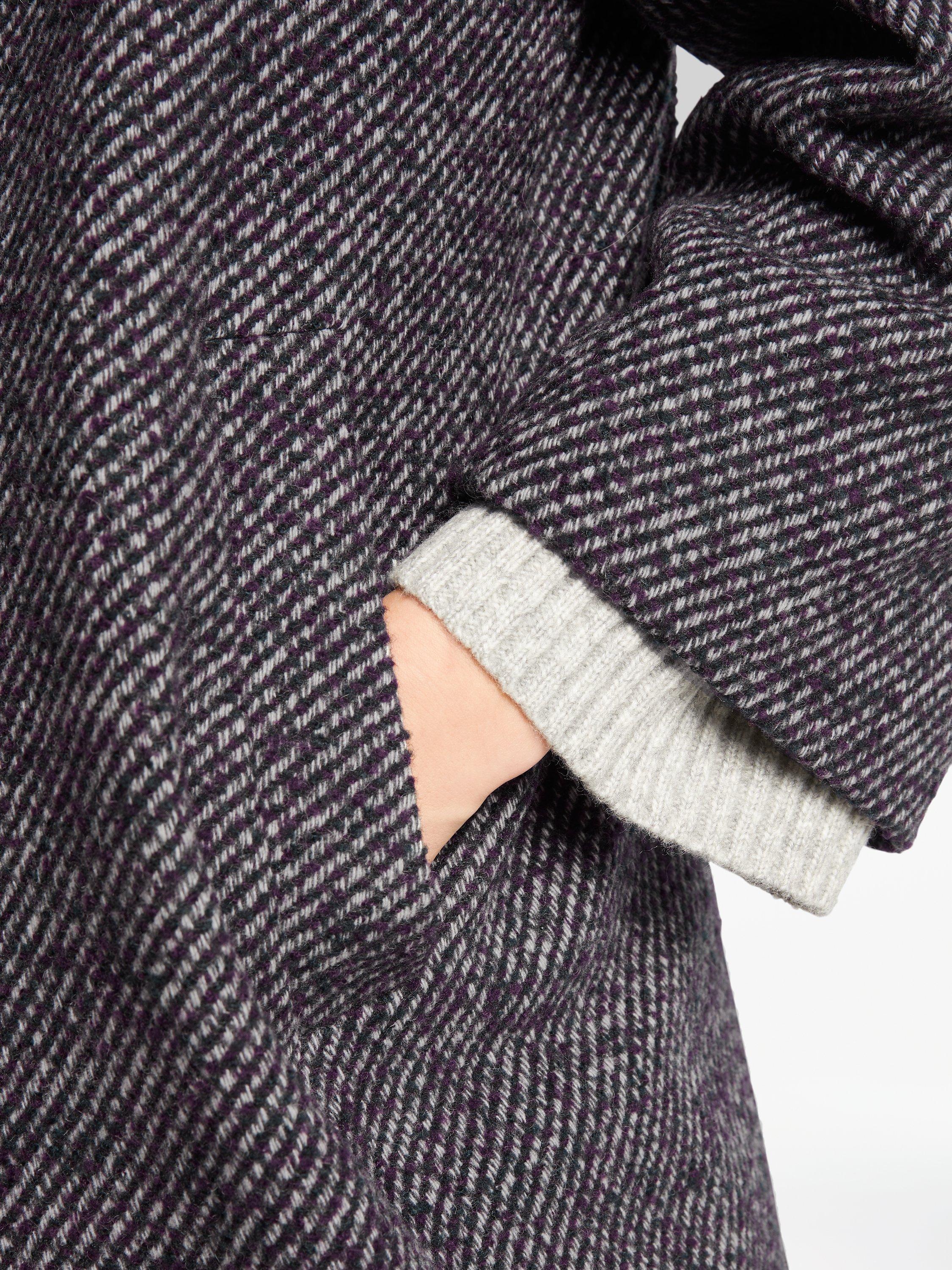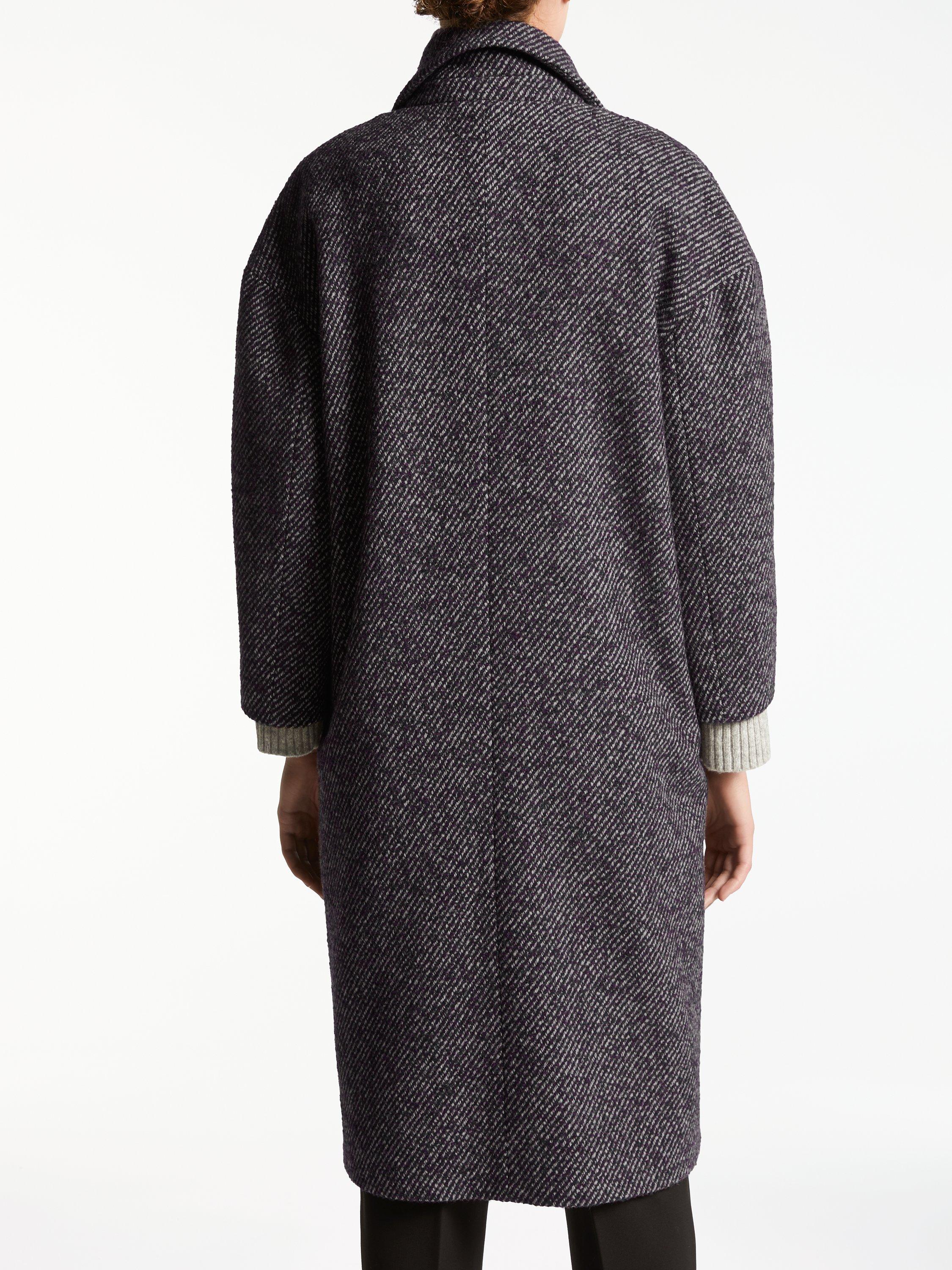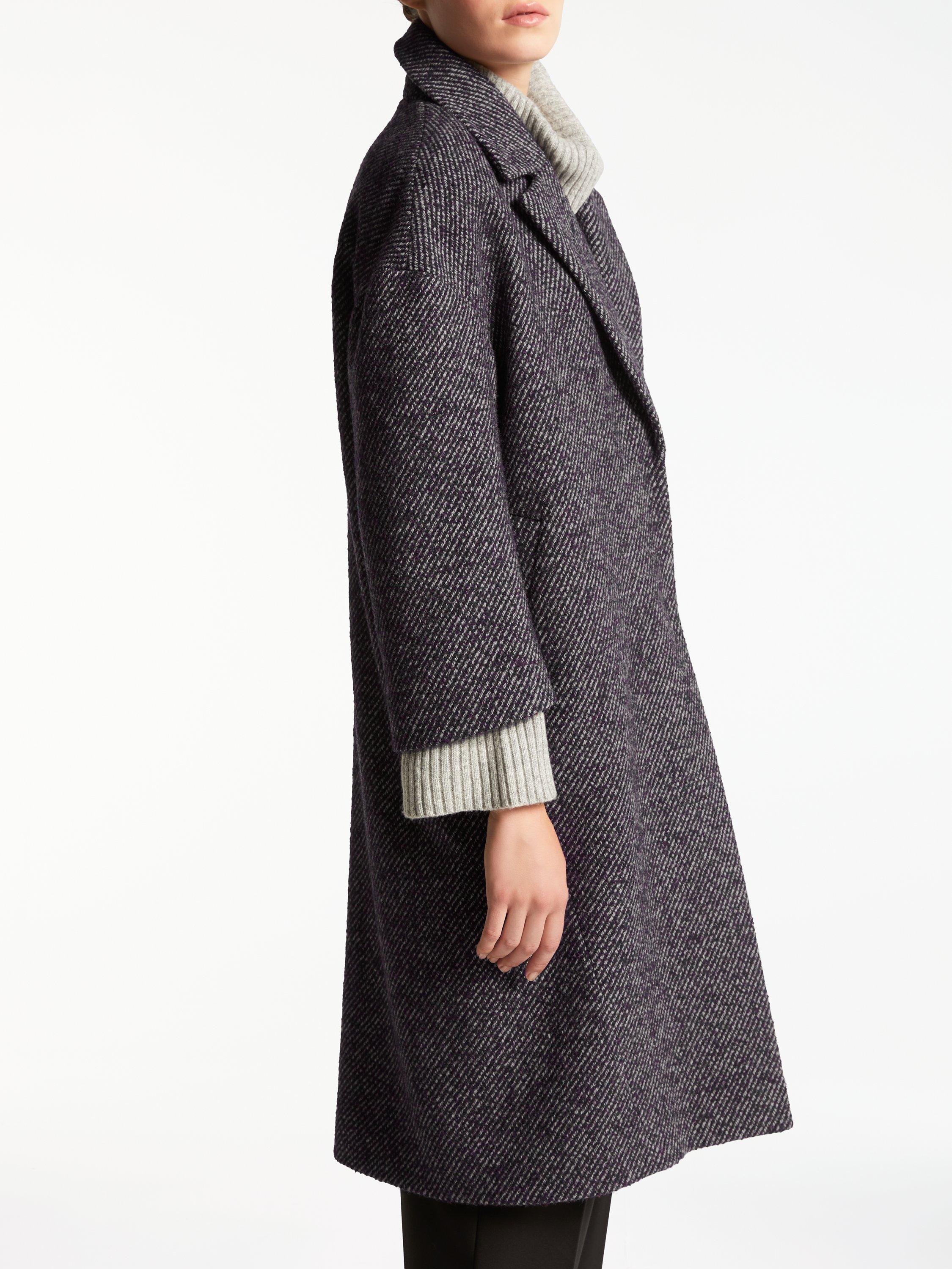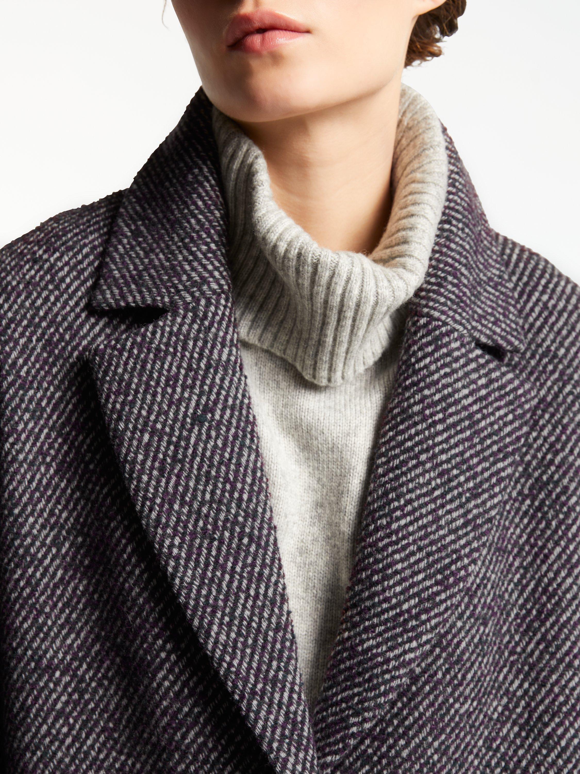 In classic Kin style this chic and contemporary cocoon style wool-rich coat has a sleek and minimal shape, with pocket detail, cropped sleeves and a notch lapel collar.