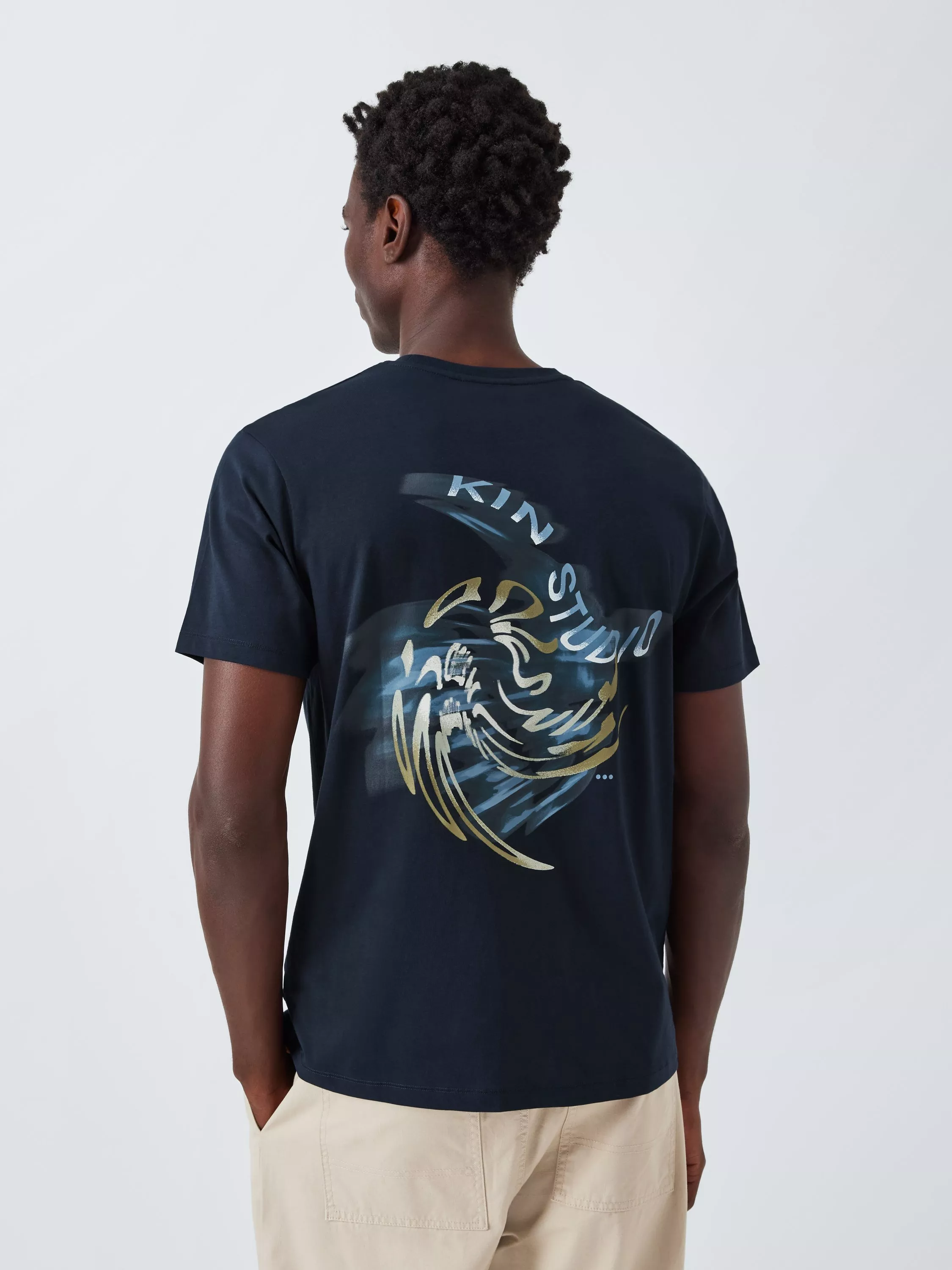 Short-sleeved Kin tee in a pure cotton handle for a super soft finish. Featuring a simple logo on the left chest and a big graphic on the back.