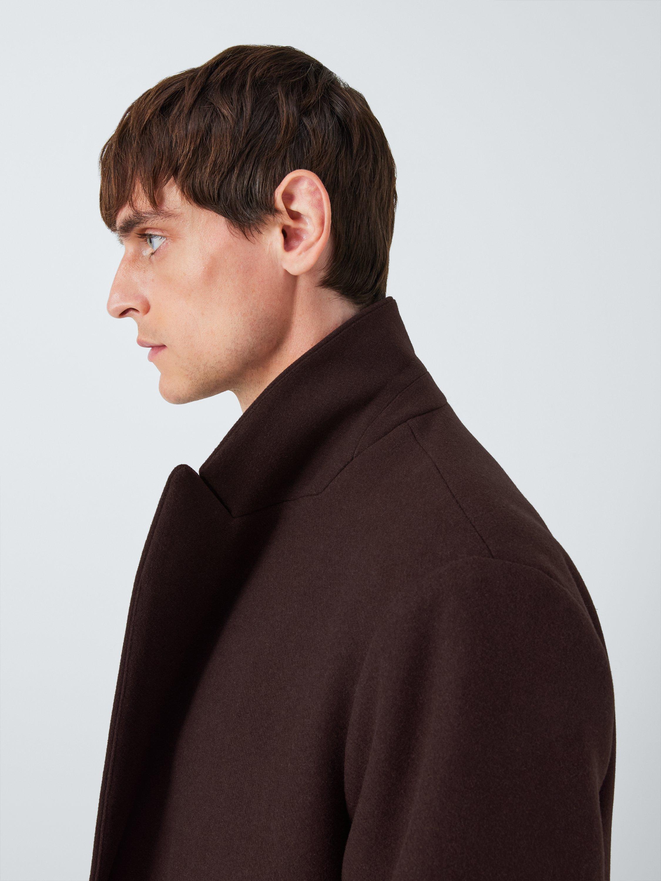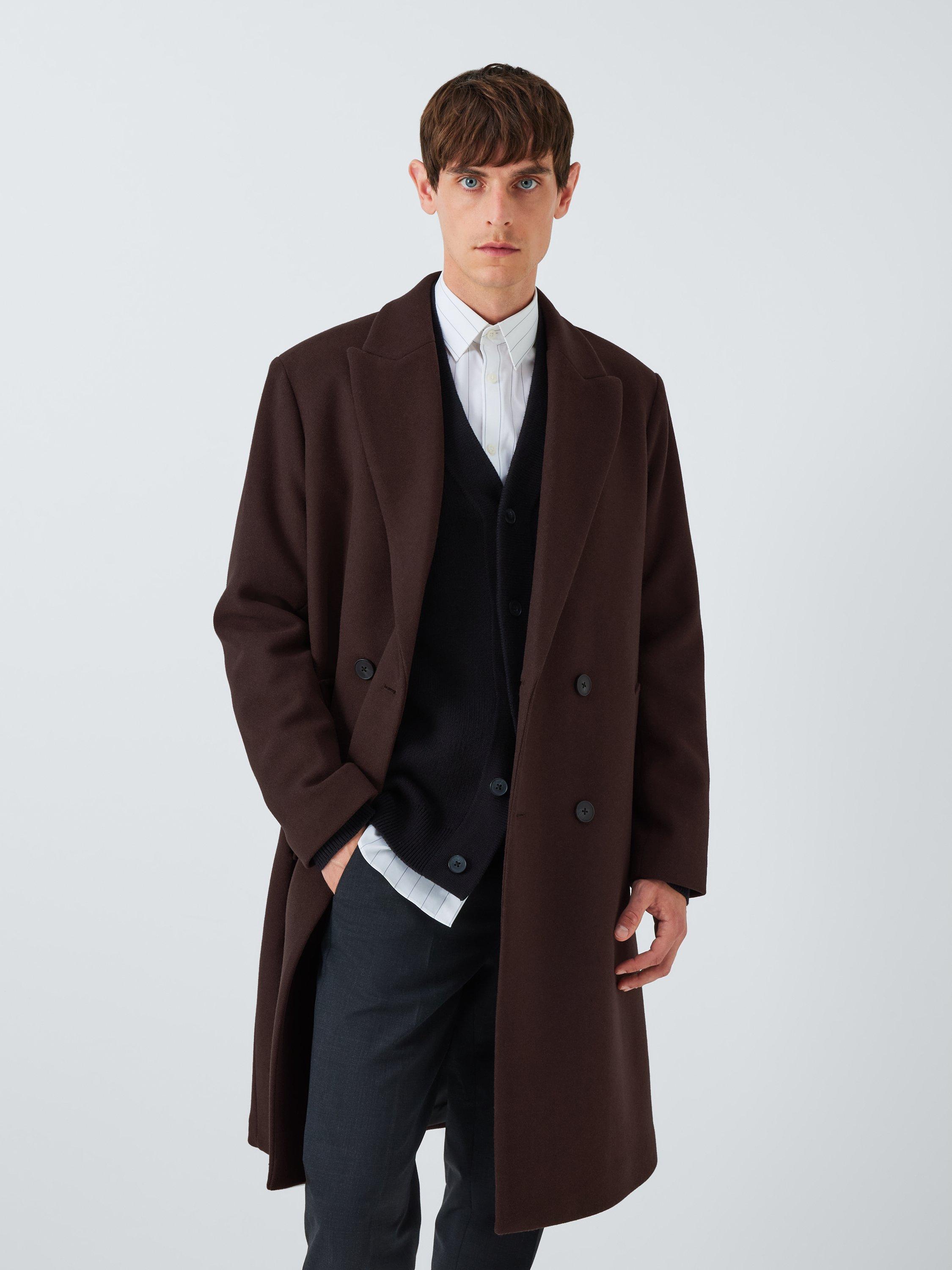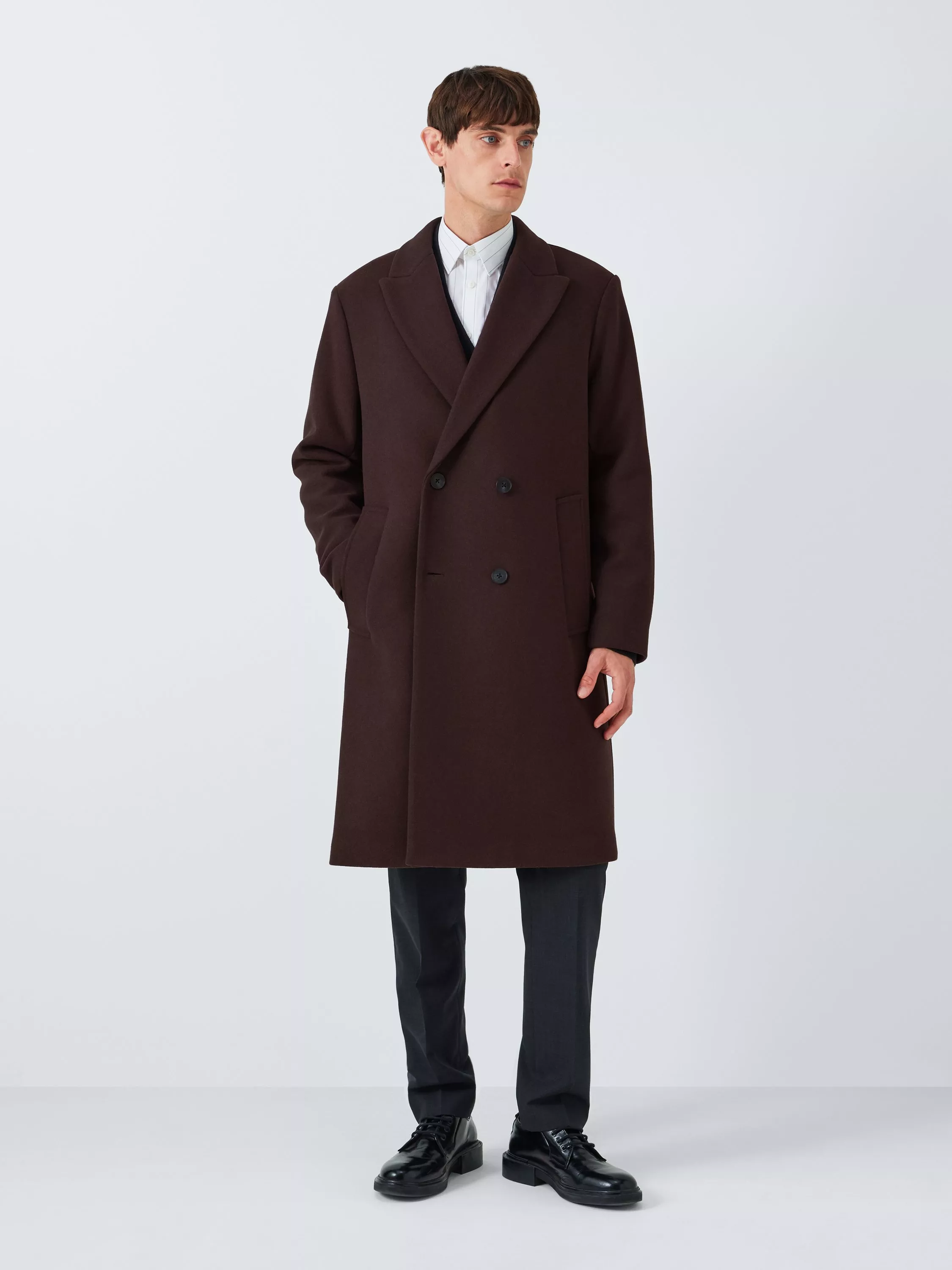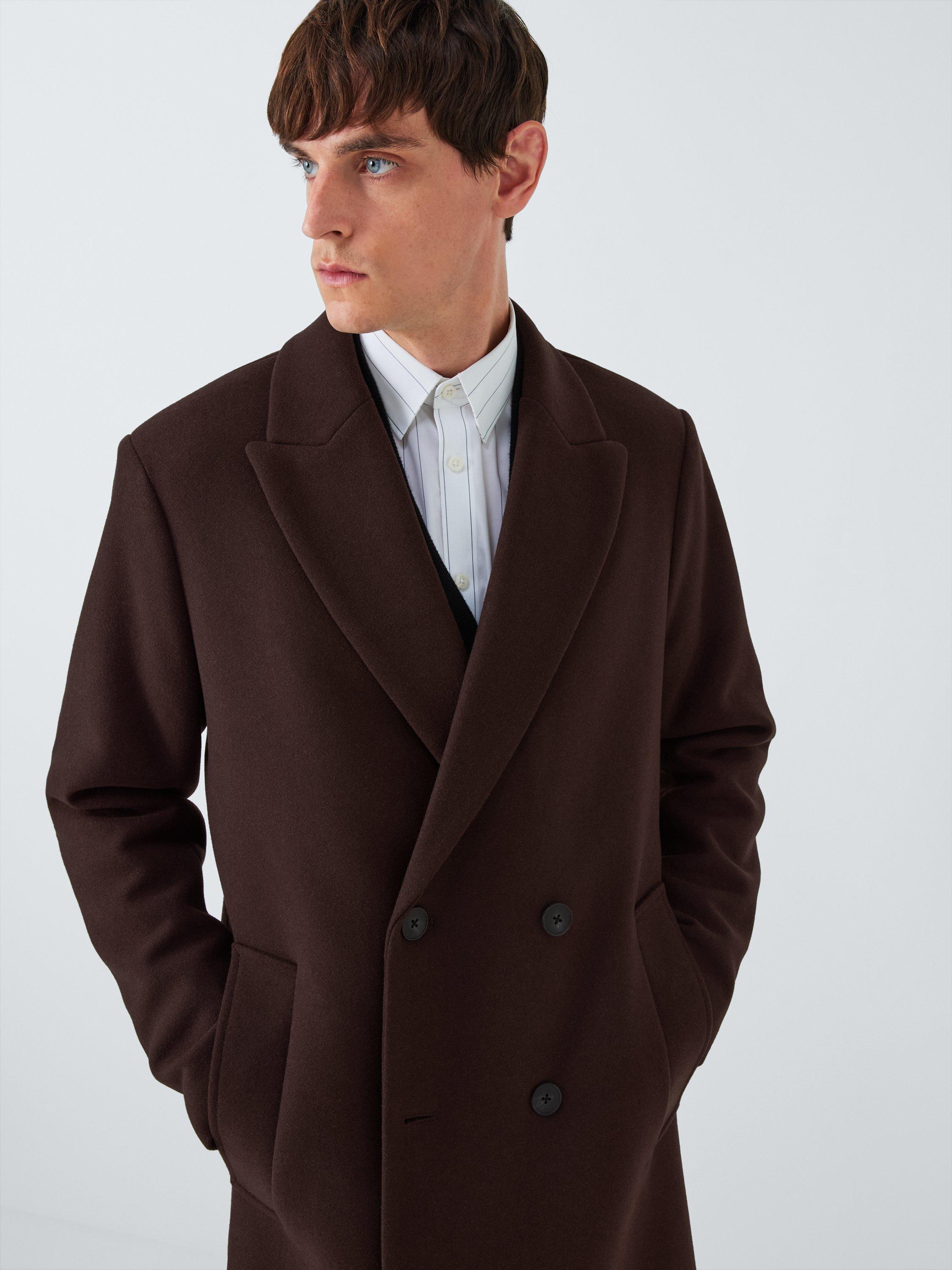 Classic double-breasted coat made of a warm woollen blend. Styled with two handwarmer jetted pockets, wide lapels and a centre front button fastening.