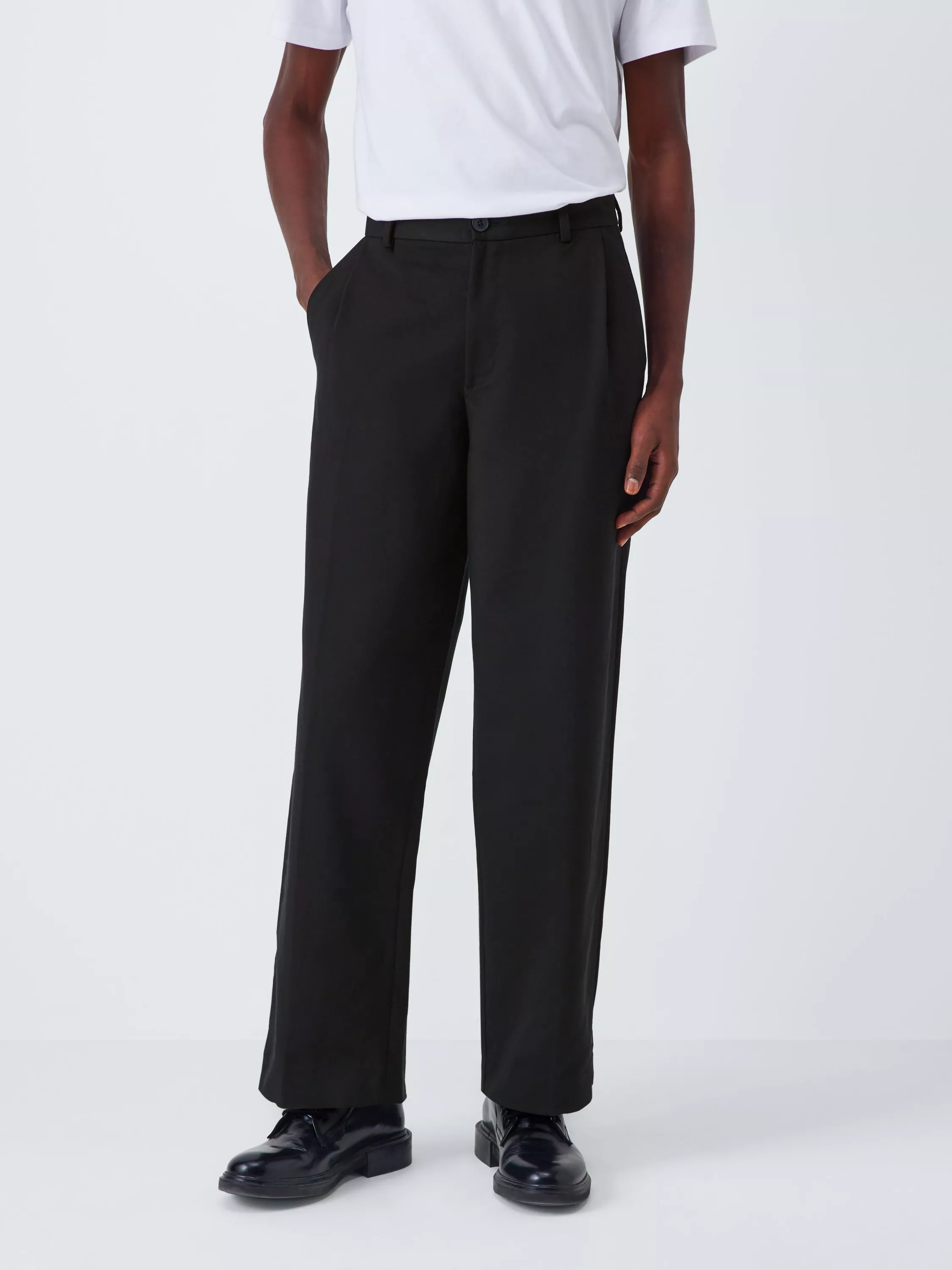 Barrel-leg trousers made from a luxurious and soft double-weave fabric with cotton that has an excellent drape. Styled with two side pockets and two back pockets. Versatile for either smart or casual moods.