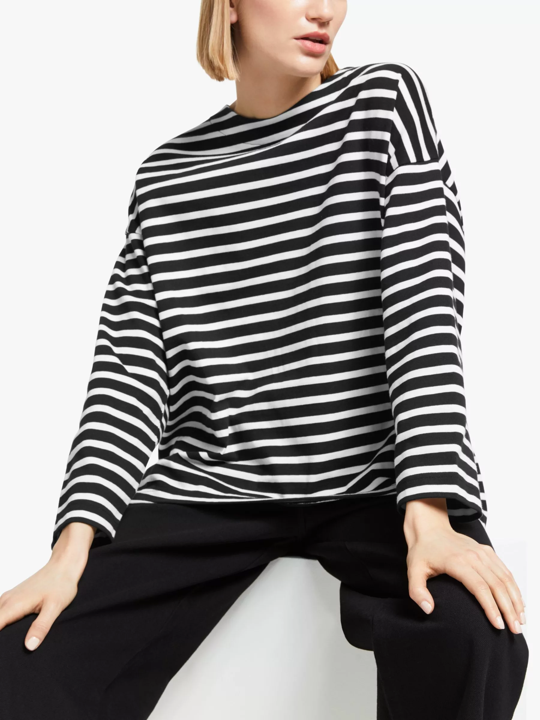 KinElliptical Hem Breton Stripe Top, Black/Multi