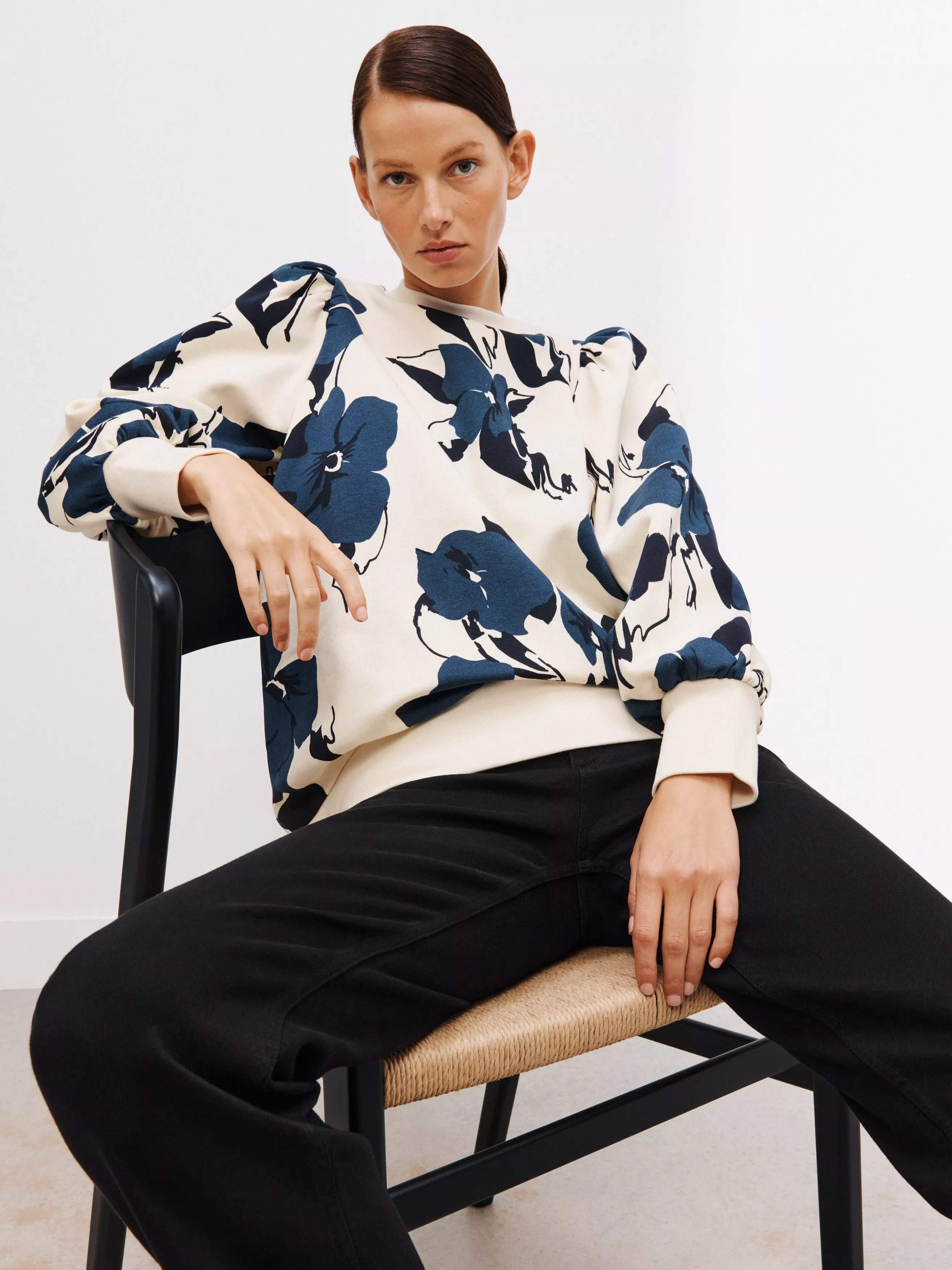 Ideal for layering on chilly days, this pure cotton sweater comes adorned with a delicately flourishing floral throughout. Finished with ribbed accents at the edges to add structure, it's ideal for teaming with jeans on off-duty days.