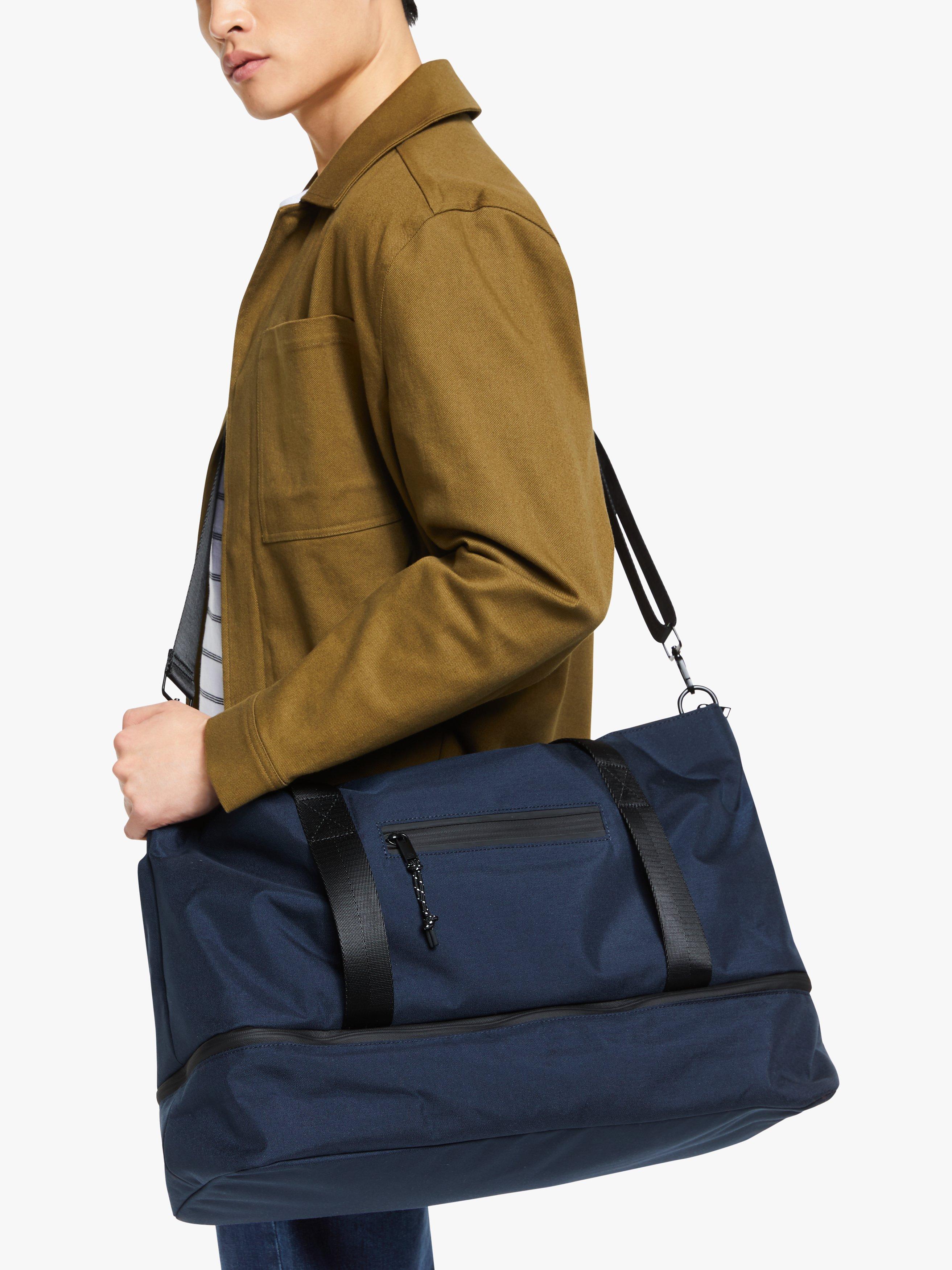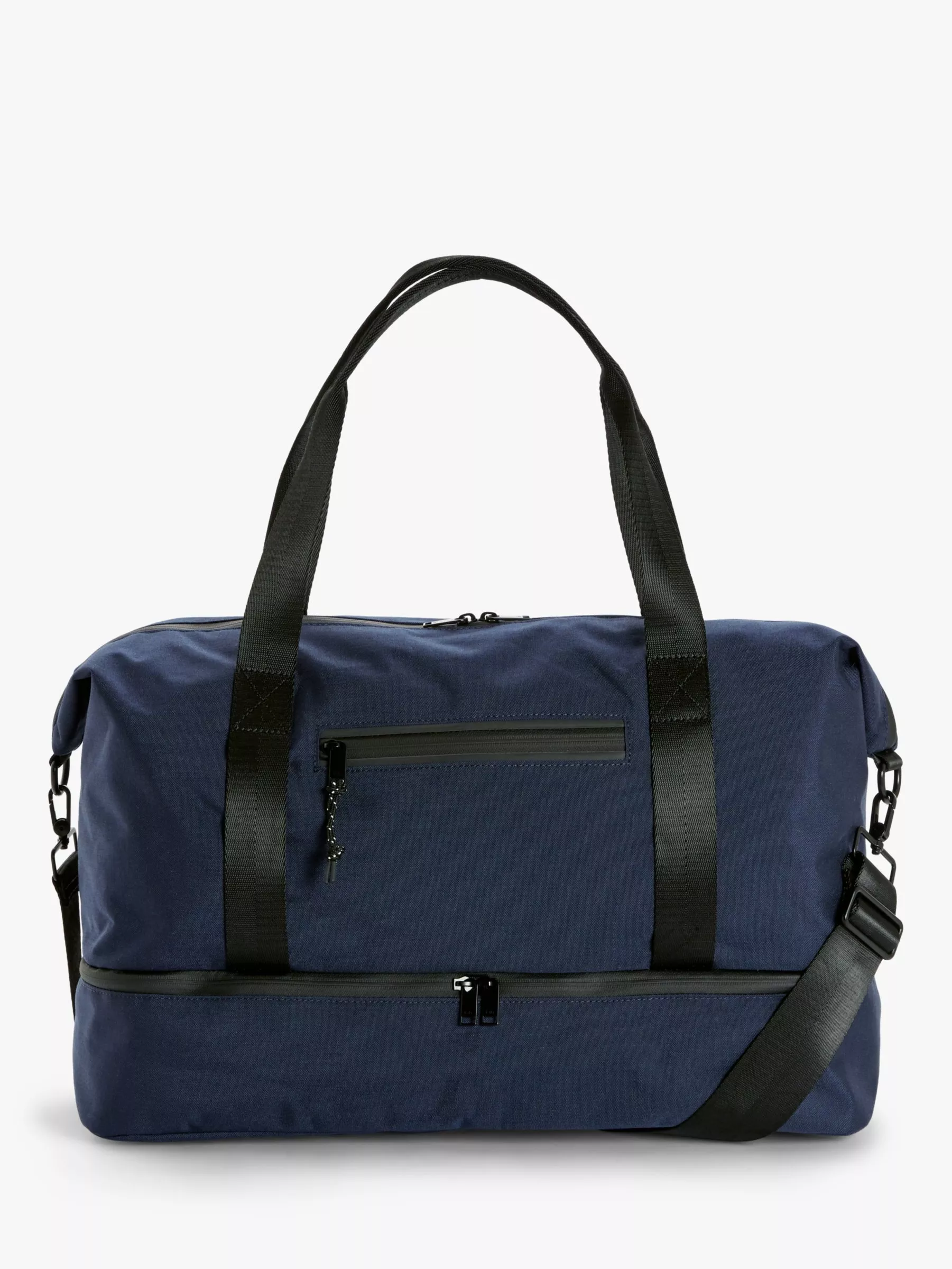 Fitted with an adjustable shoulder strap and metal trimmings, the zipped shoe compartment ensures your clean clothes are kept fresh no matter how long you're on the road for. A front zipped pocket, 2 slip internal pockets and 2 zipped mesh pockets all keep essentials close by, and the smart sleeve can be used in a suitcase trolley system.