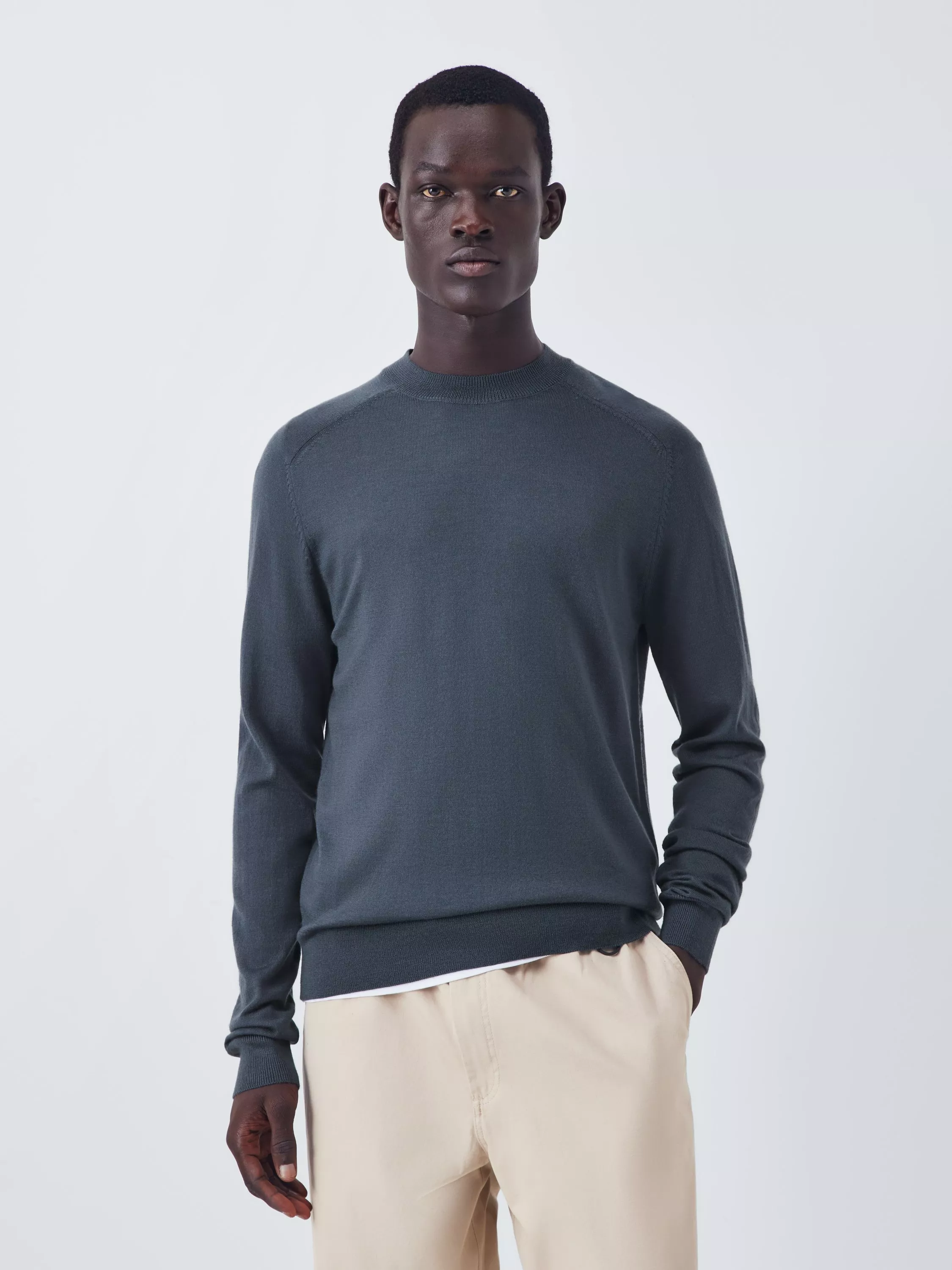 This long-sleeved jumper is crafted from pure merino wool for breathability and great temperature regulation. It's topped with a saddle neck, creating a distinctive seamline on the shoulder for a defined look without bulk. The jumper is completed with a contrasting ribbed knit on the neck, hem and cuffs.