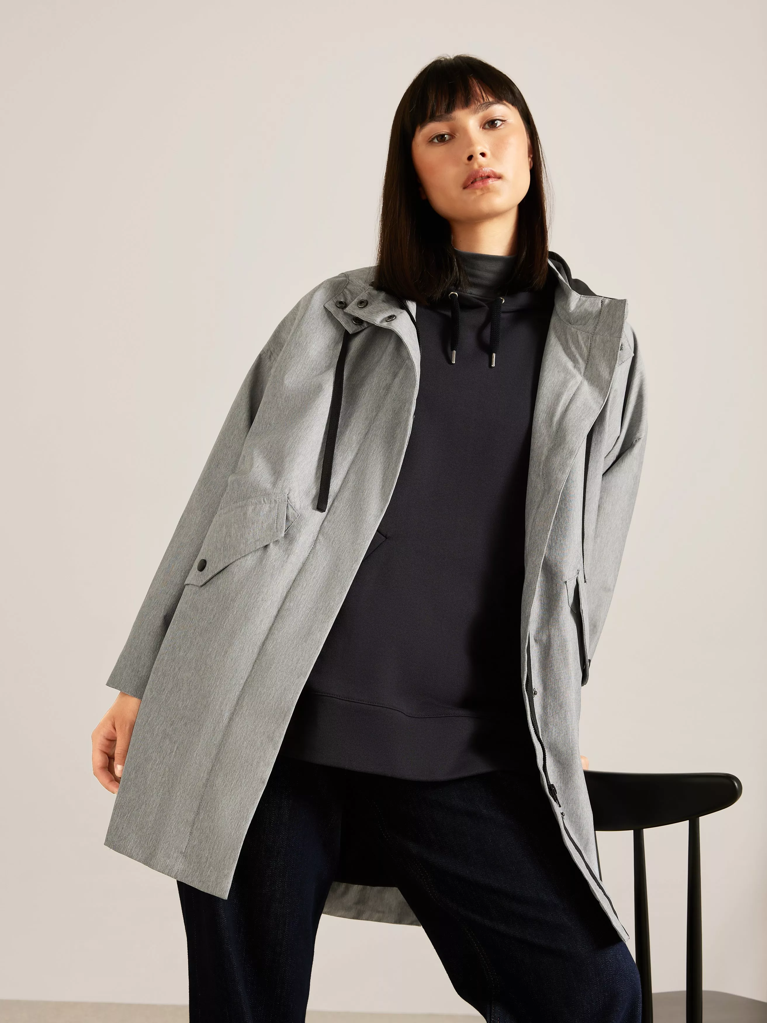 This Kin coat boasts a contemporary edge with a concealed front fastening and casual athleisure-inspired toggle detailing.