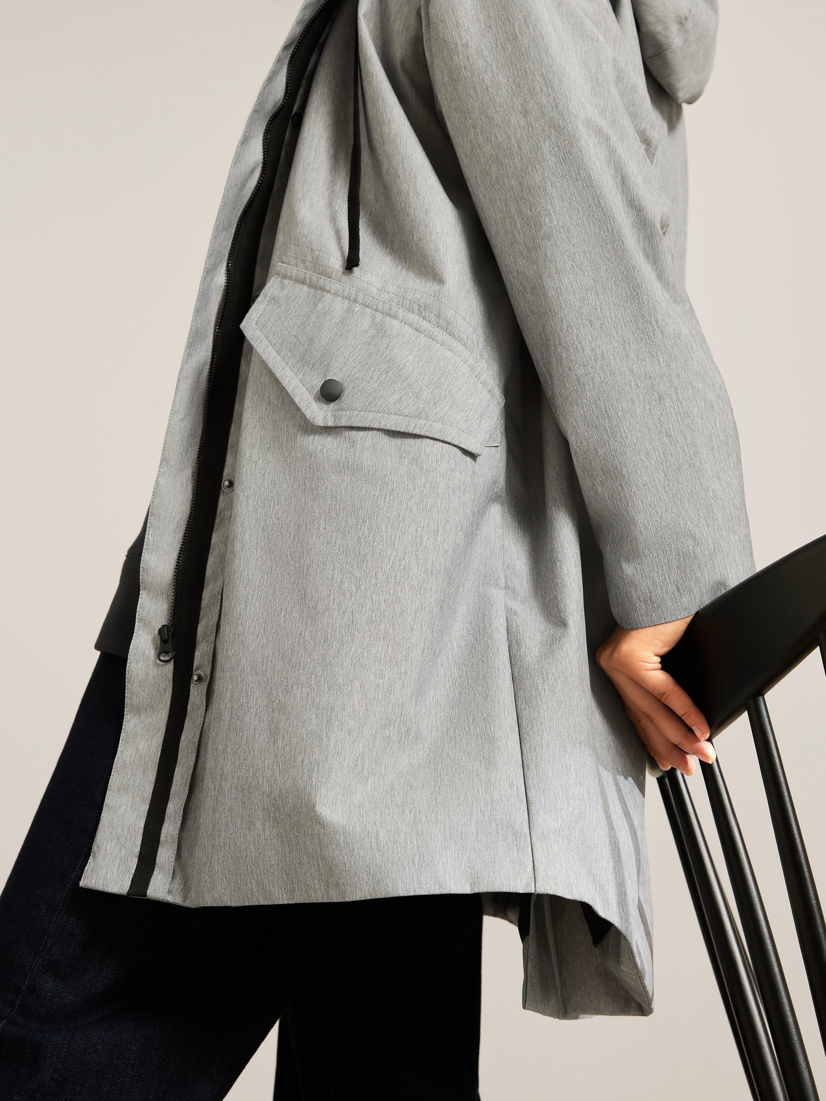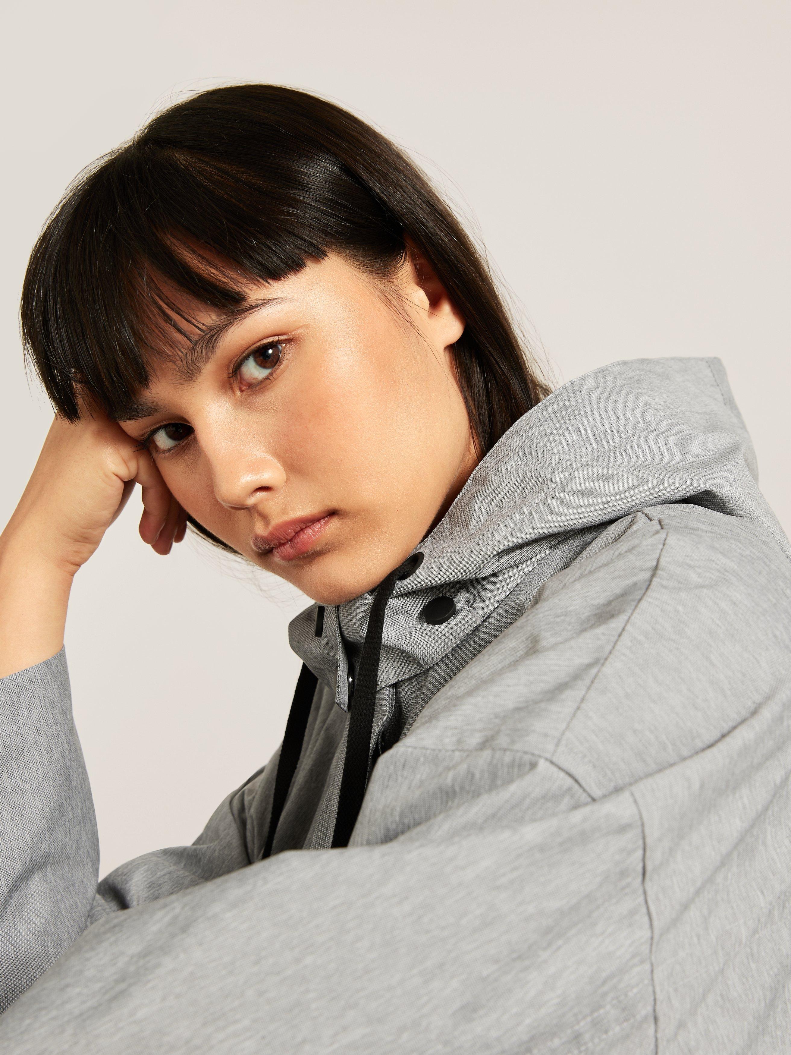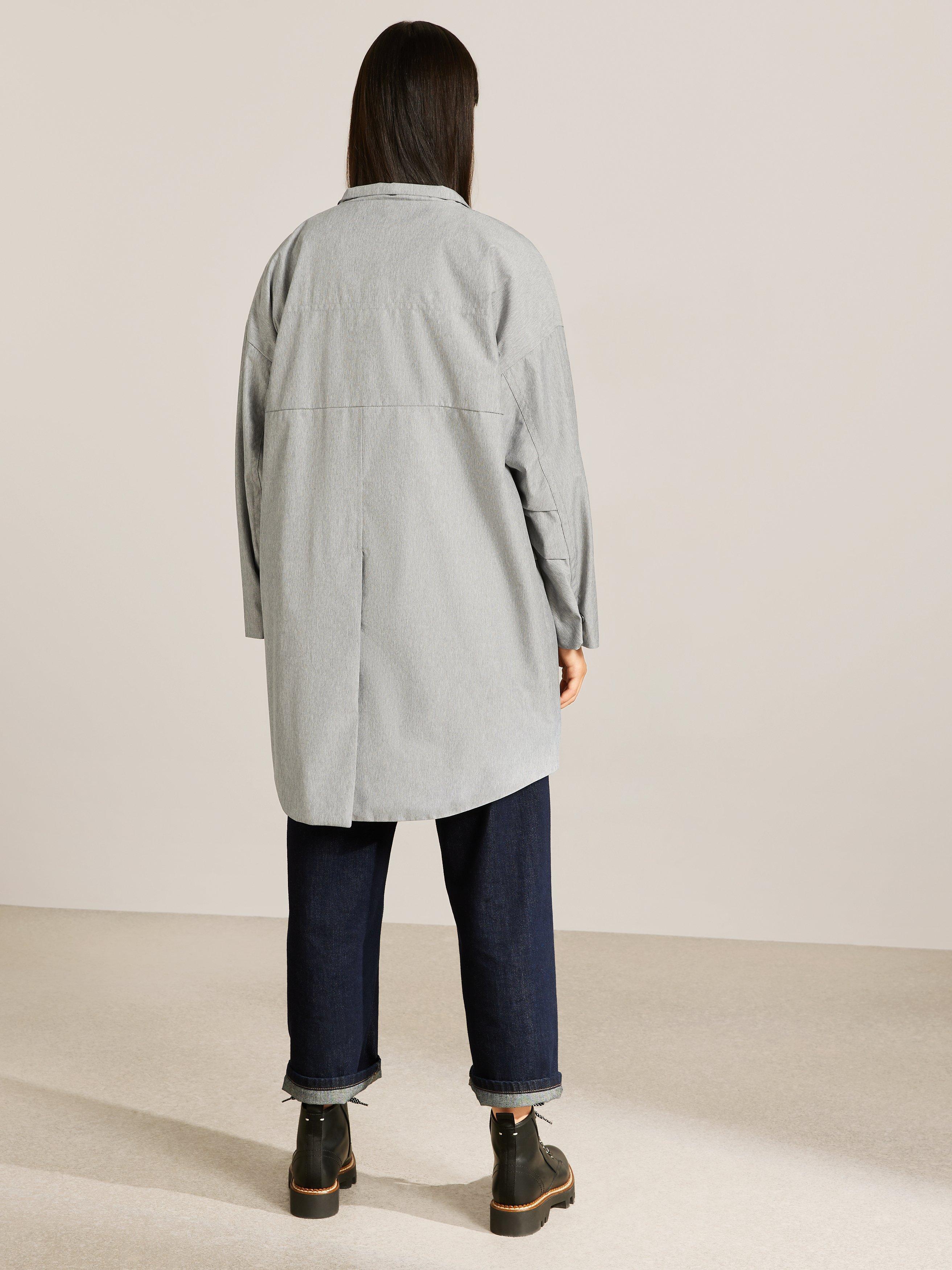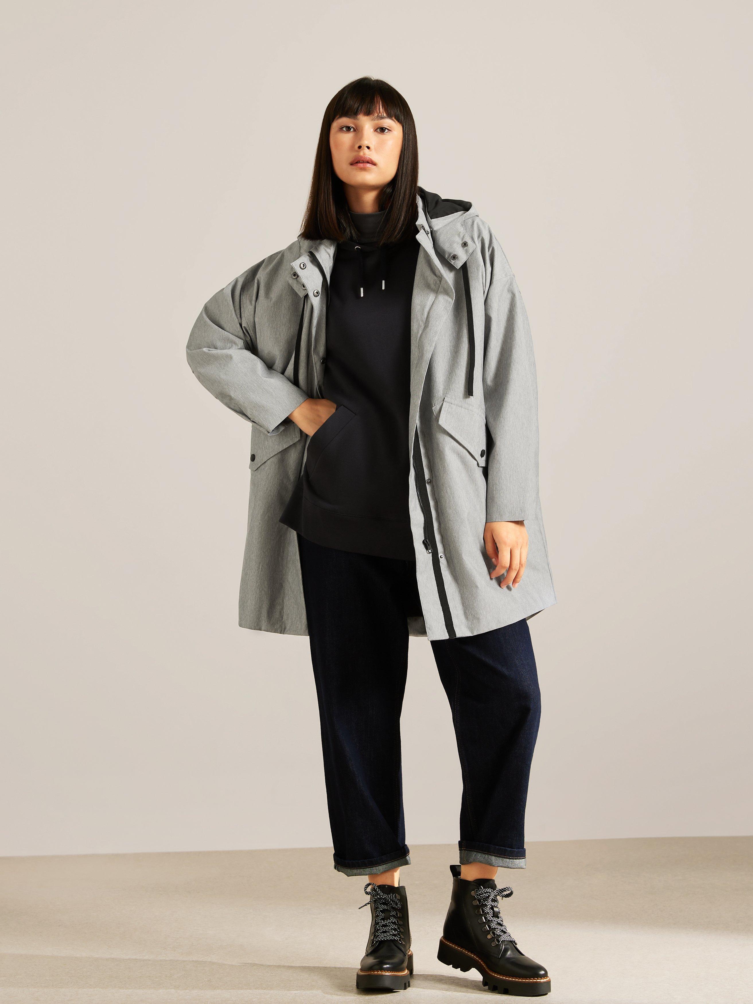 Designed in an oversized boxy silhouette, it fastens with poppers and is shower resistant for practicality.