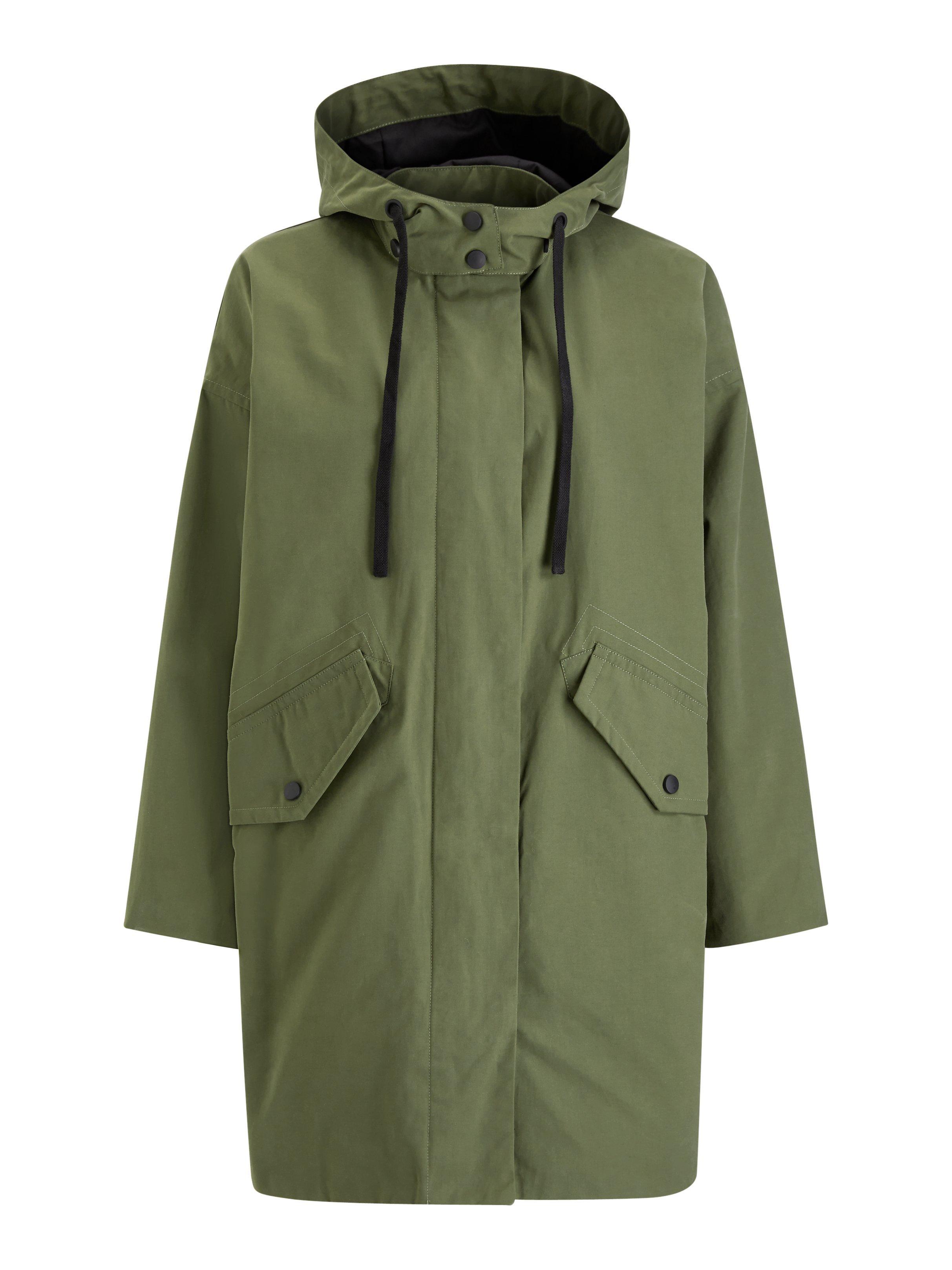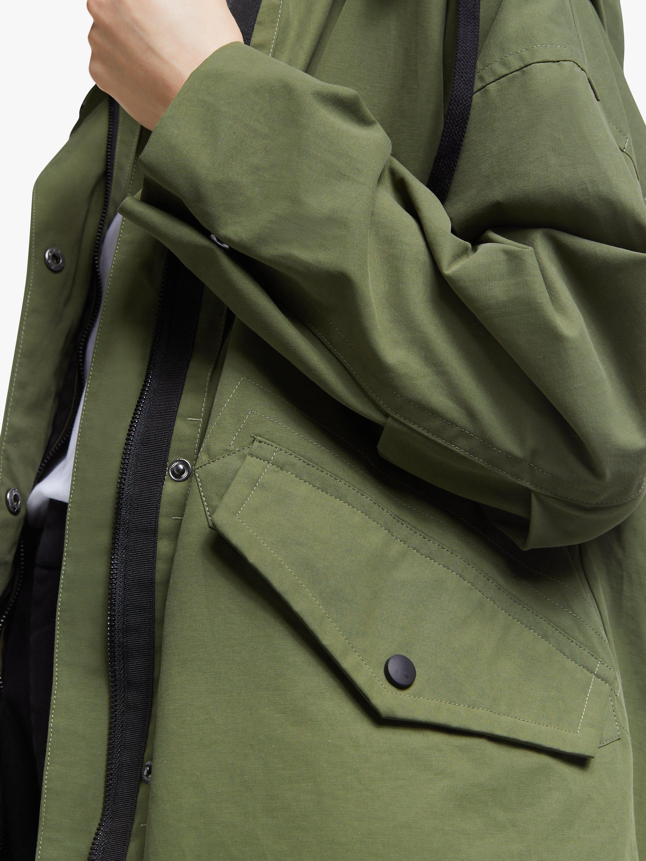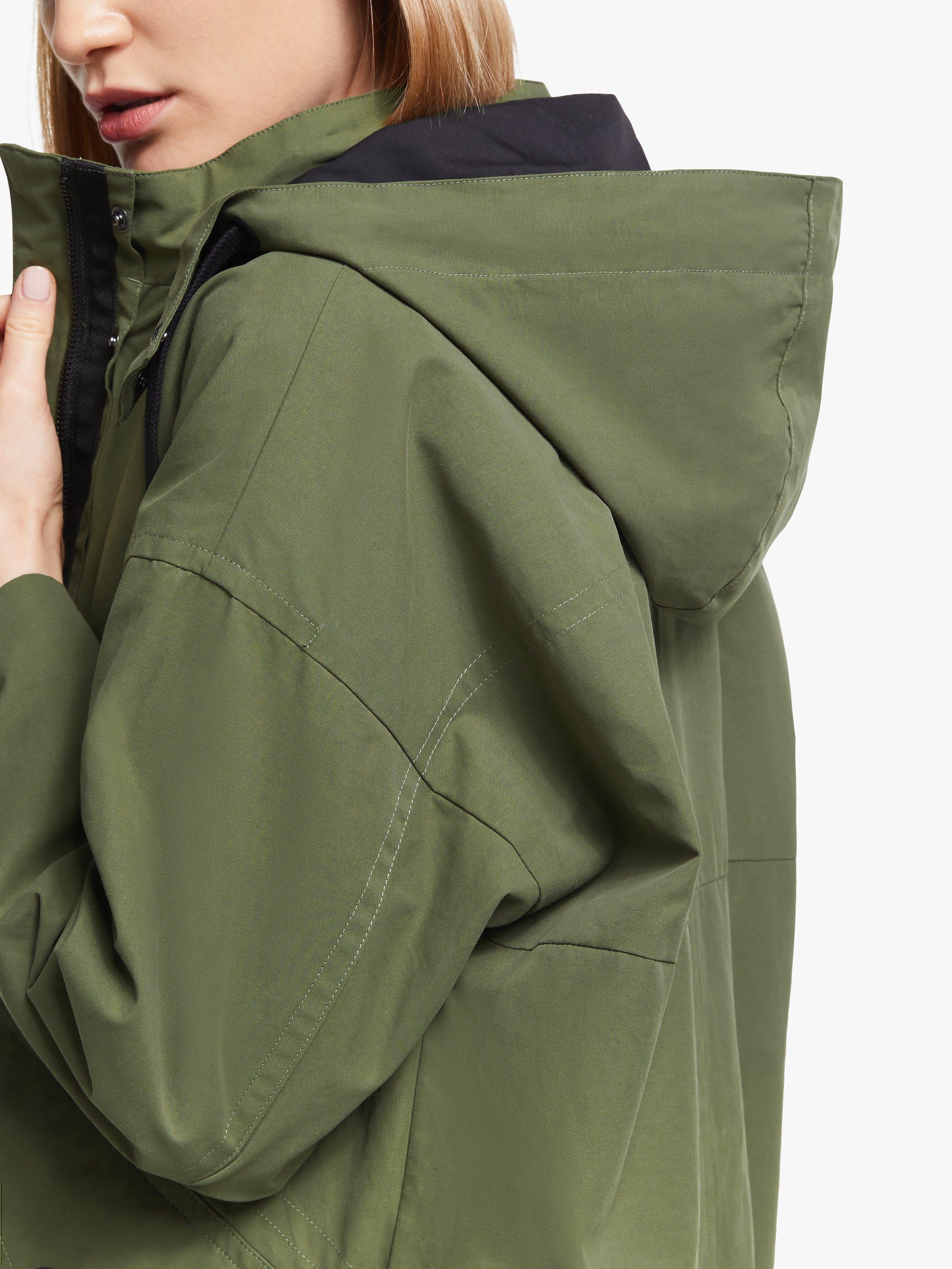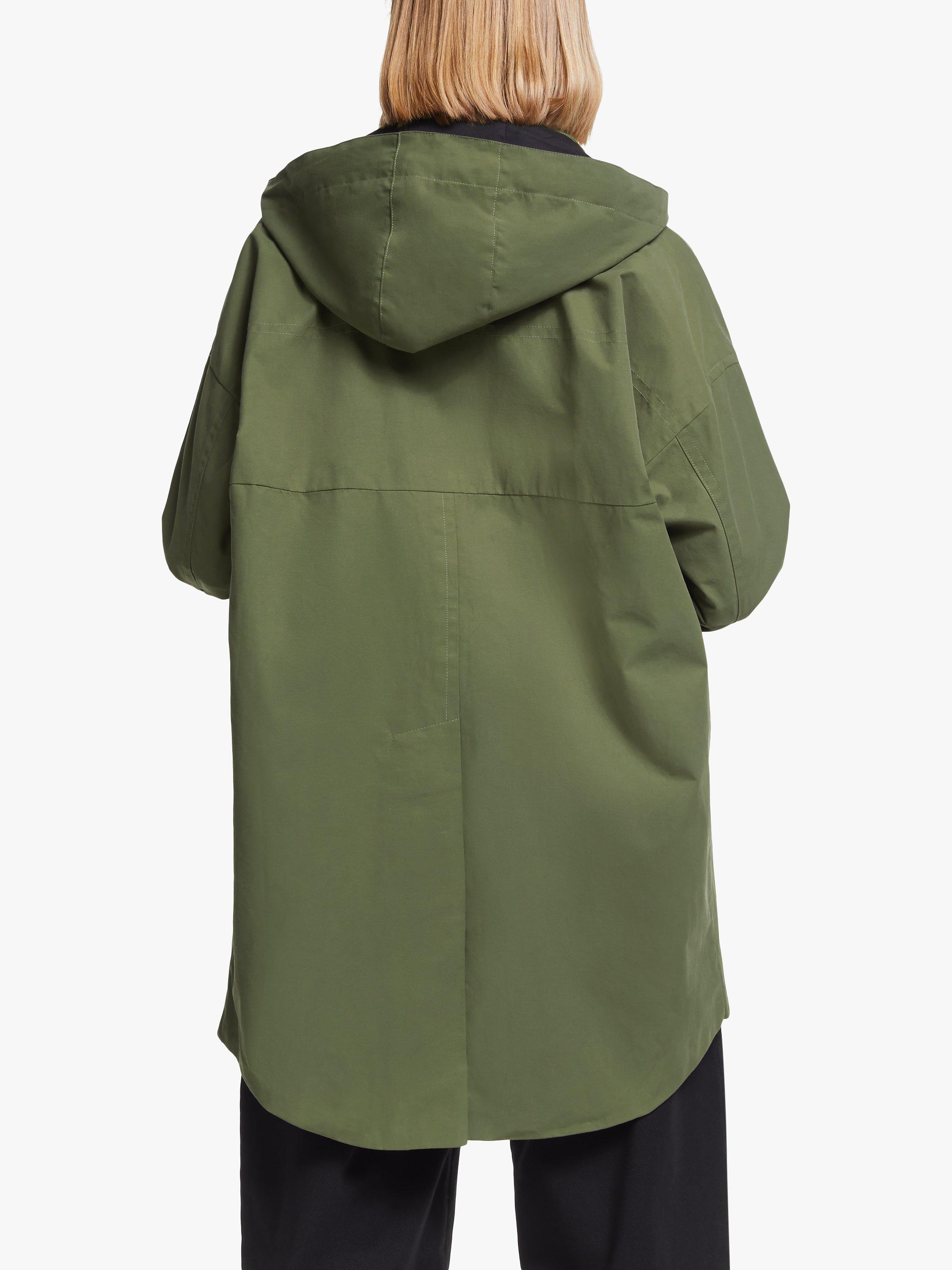 Designed in an oversized boxy silhouette, it fastens with poppers and is shower resistant for practicality.