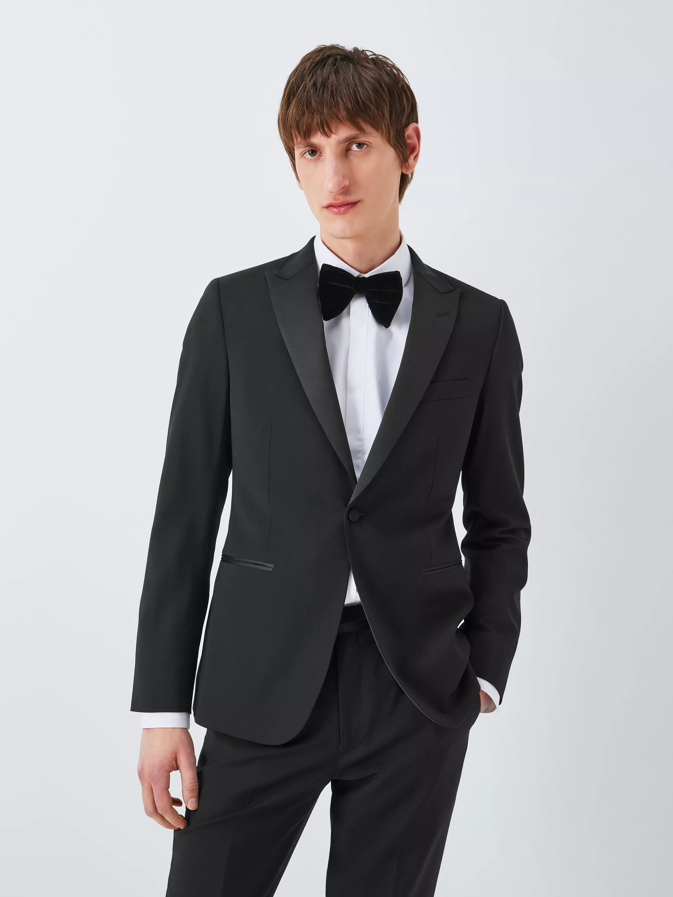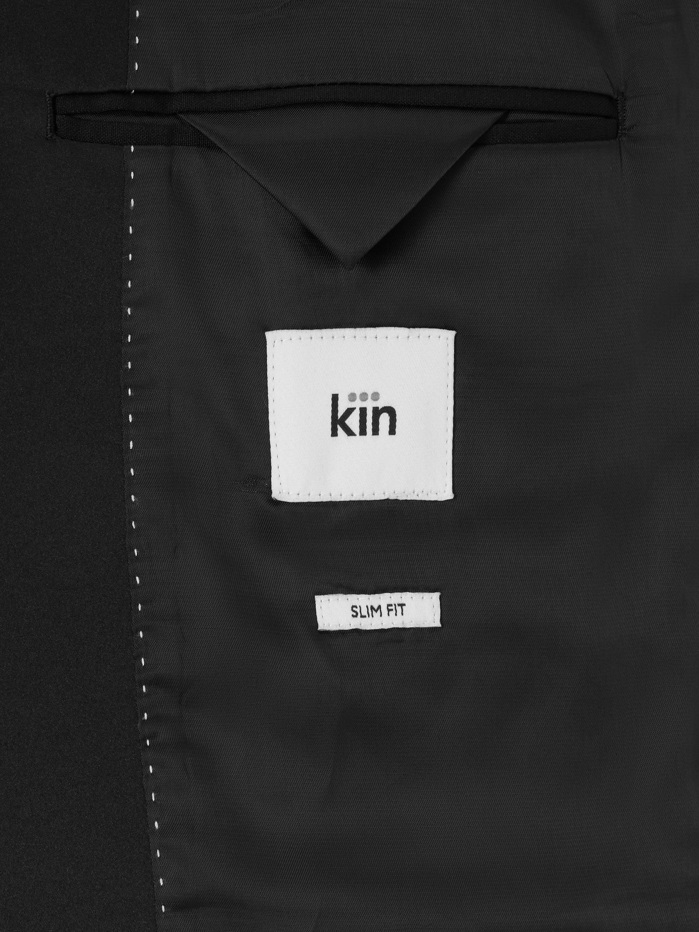 Woven in a wool blend with a touch of stretch for added comfort, this Kin dinner jacket is styled with a contrast satin peak lapel, satin jet pockets at the hip and a welt pocket at the chest.