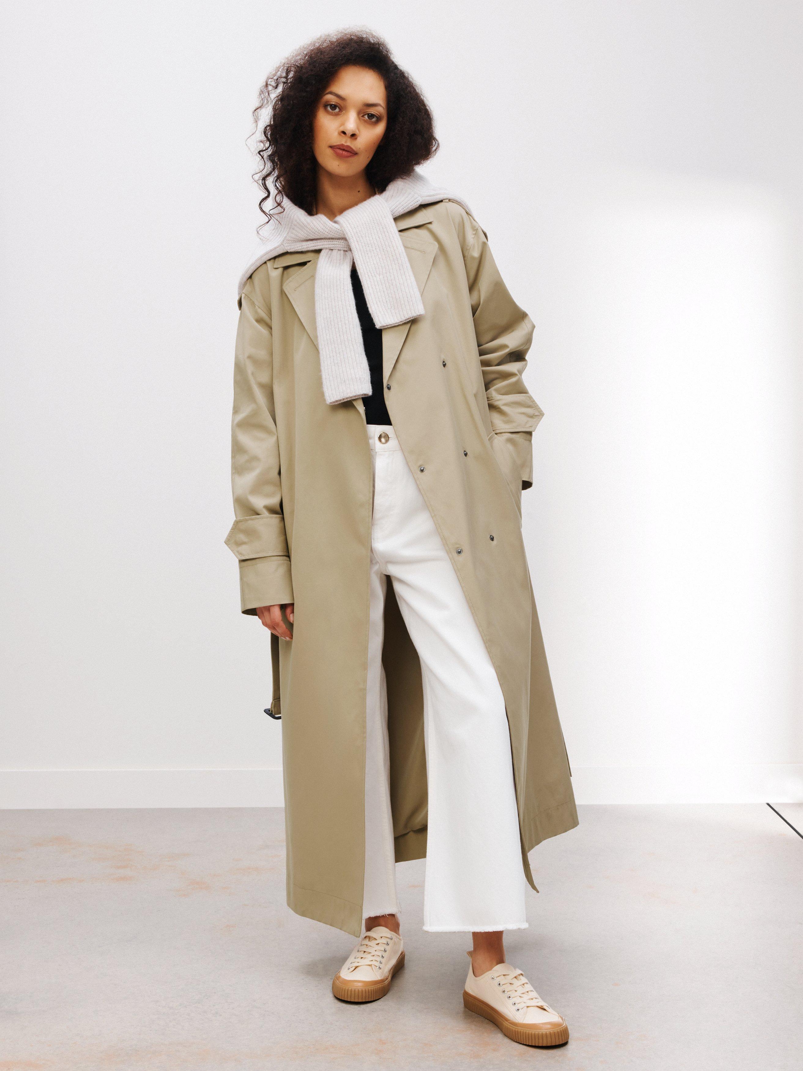 Bringing timeless style to your outerwear collection, this trench coat by Kin falls to a long length for maximum coverage.