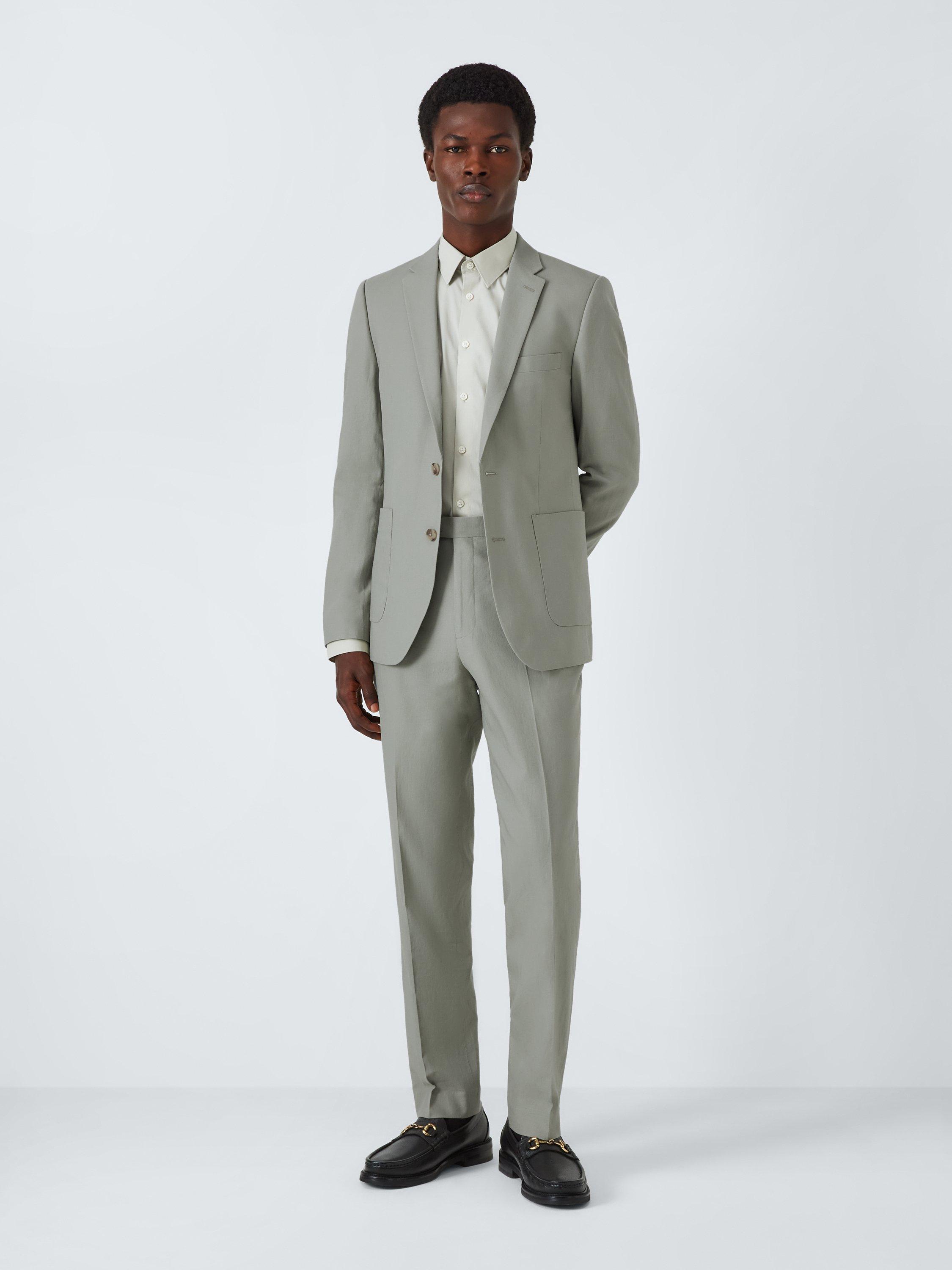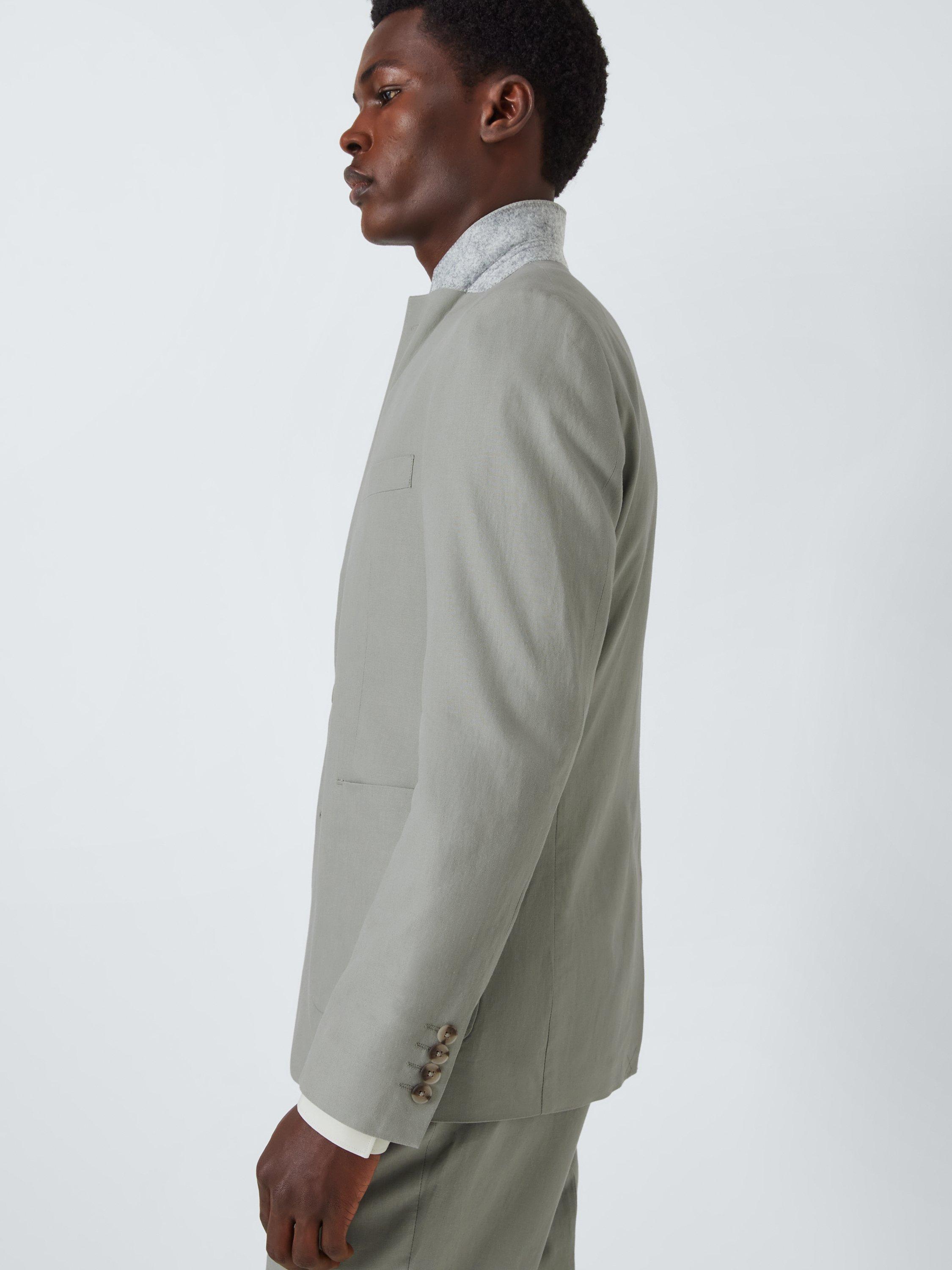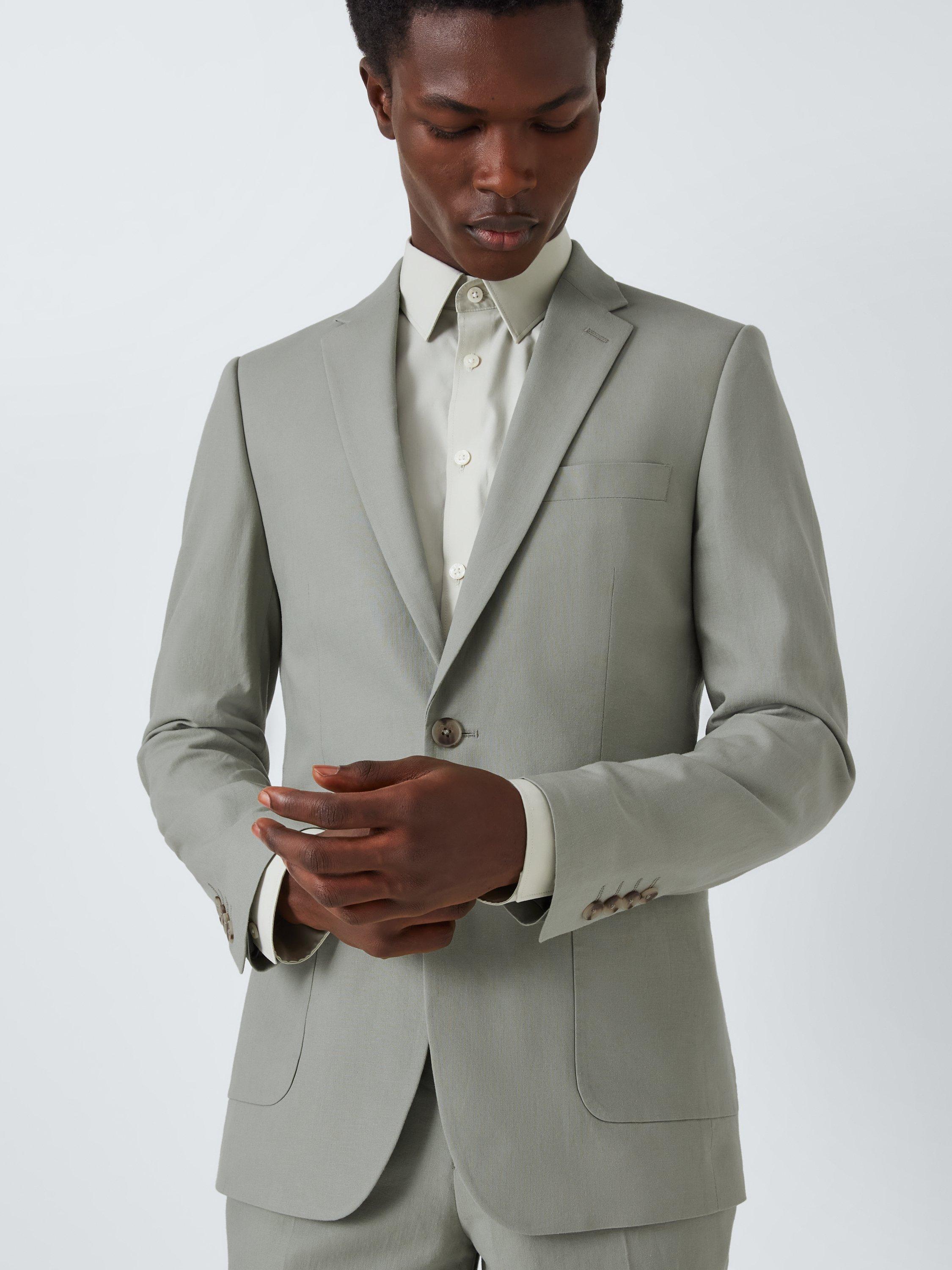 A linen viscose suit blazer tailored to our slim fit specification, available in three colourways: Airforce, Light Grey and Light Green. Styled with two front flap pockets and two internal pockets.