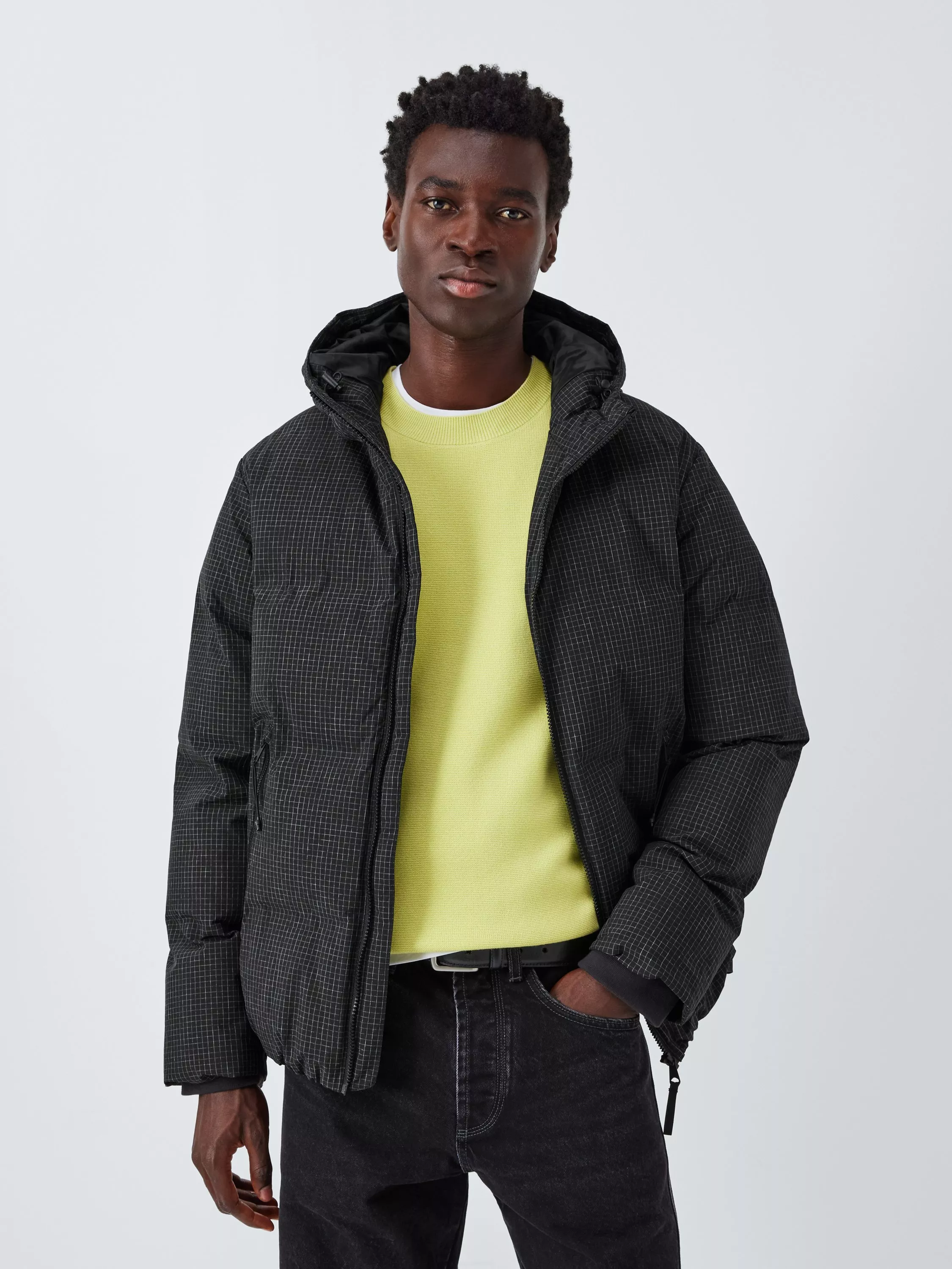 Short puffer jacket with insulation for warmth, and a ripstop outer treated with a water-repellent finish to keep you protected from light rain. This grid-patterned jacket features two zipped slant pockets and toggled adjusters on the hem and hood to ensure a snug fit.