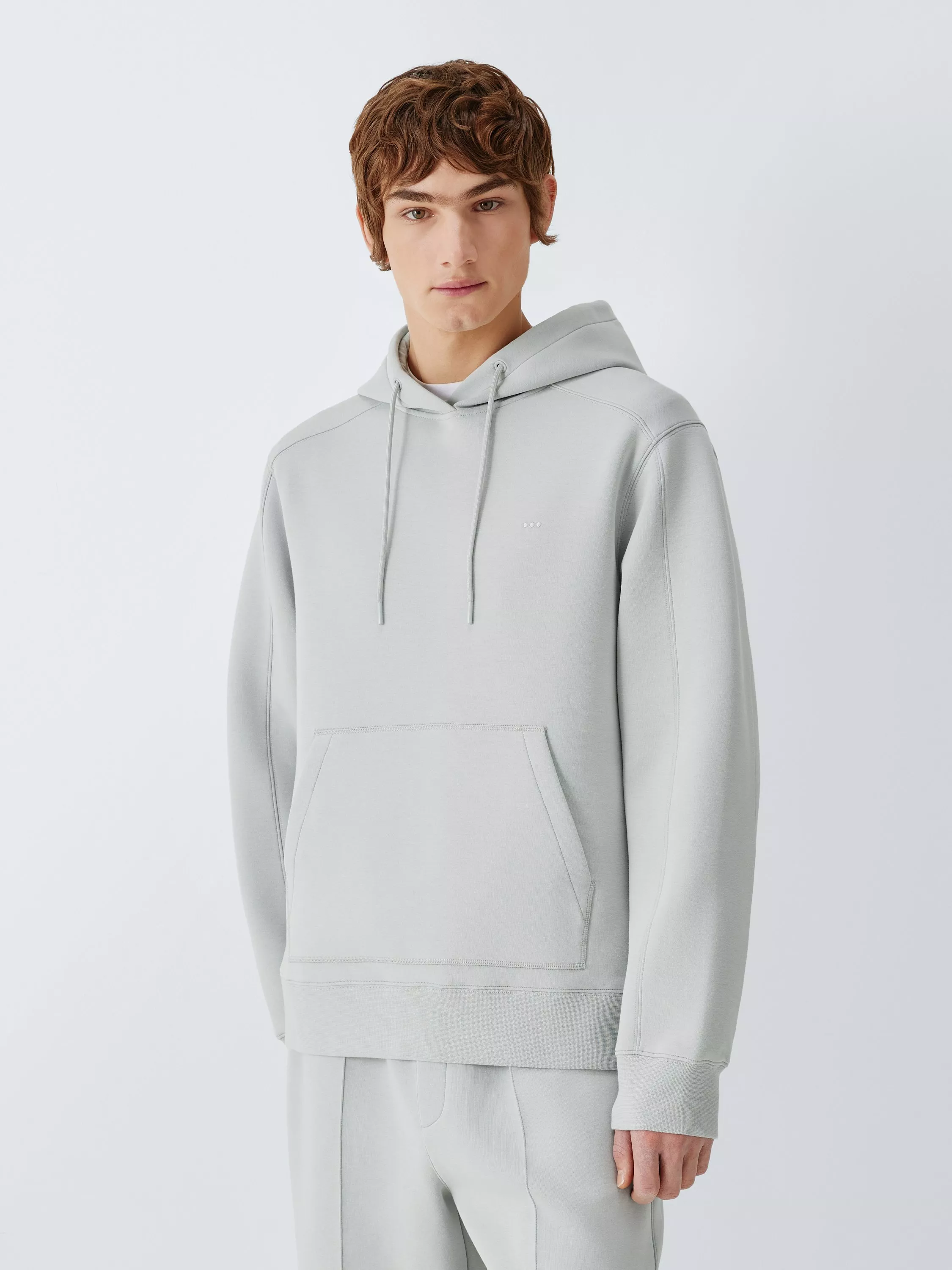 Layering made simple. This hoodie is made from a heavier-weight scuba fabric with added stretch for flex and comfort throughout the day. It features all the details you'd expect: a hood with pull toggles, a centre kangaroo pocket, plus a simple three-dot Kin logo.