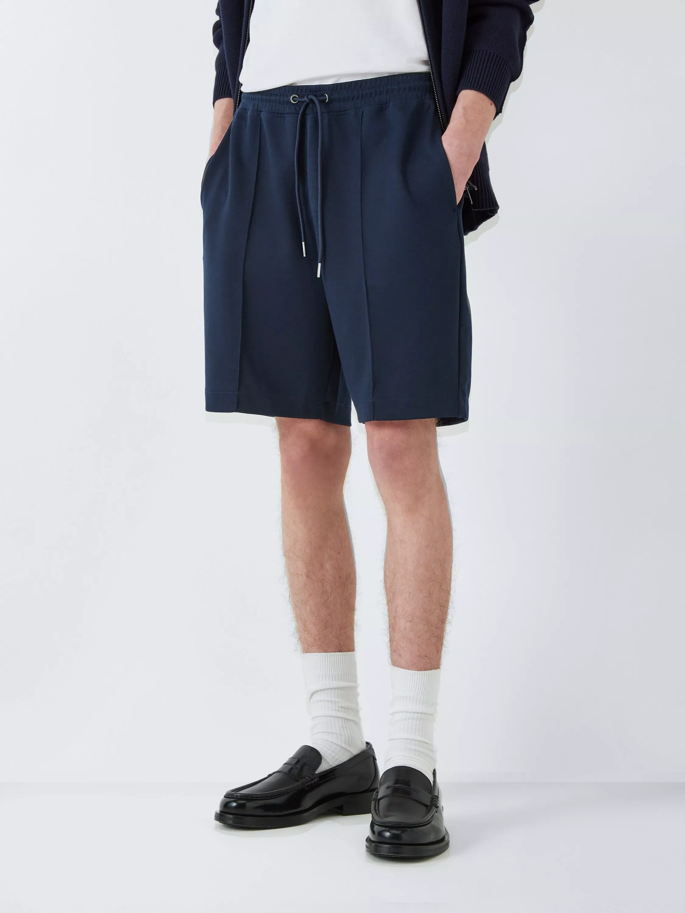 Shorts with two side pockets and a drawcord elasticated waist for a snug fit. Made from a heavier-weight scuba fabric with a hint of stretch for added comfort. Pintuck detailing gives them a modern edge.