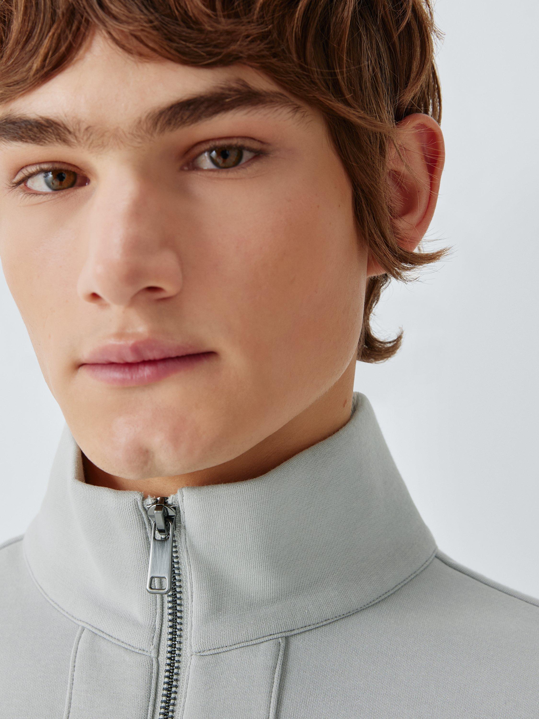 A streamlined funnel neck and subtle panel detailing elevate the piece. The cotton-rich blend is chosen for its superior softness and natural breathability, balanced with a multi-directional stretch that moves effortlessly with you.