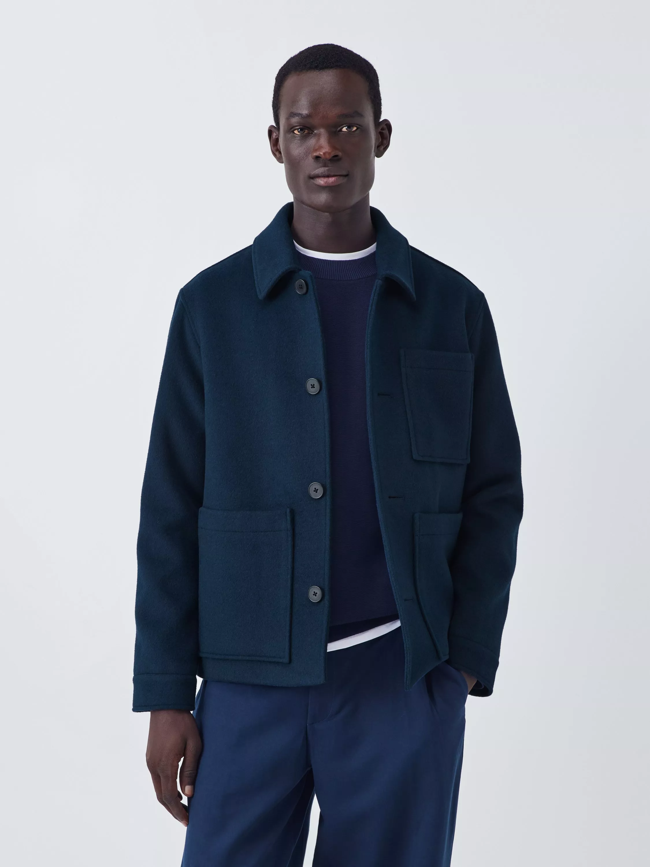 A short jacket cut from a hard-wearing wool-blend fabric and finished with numerous pockets.