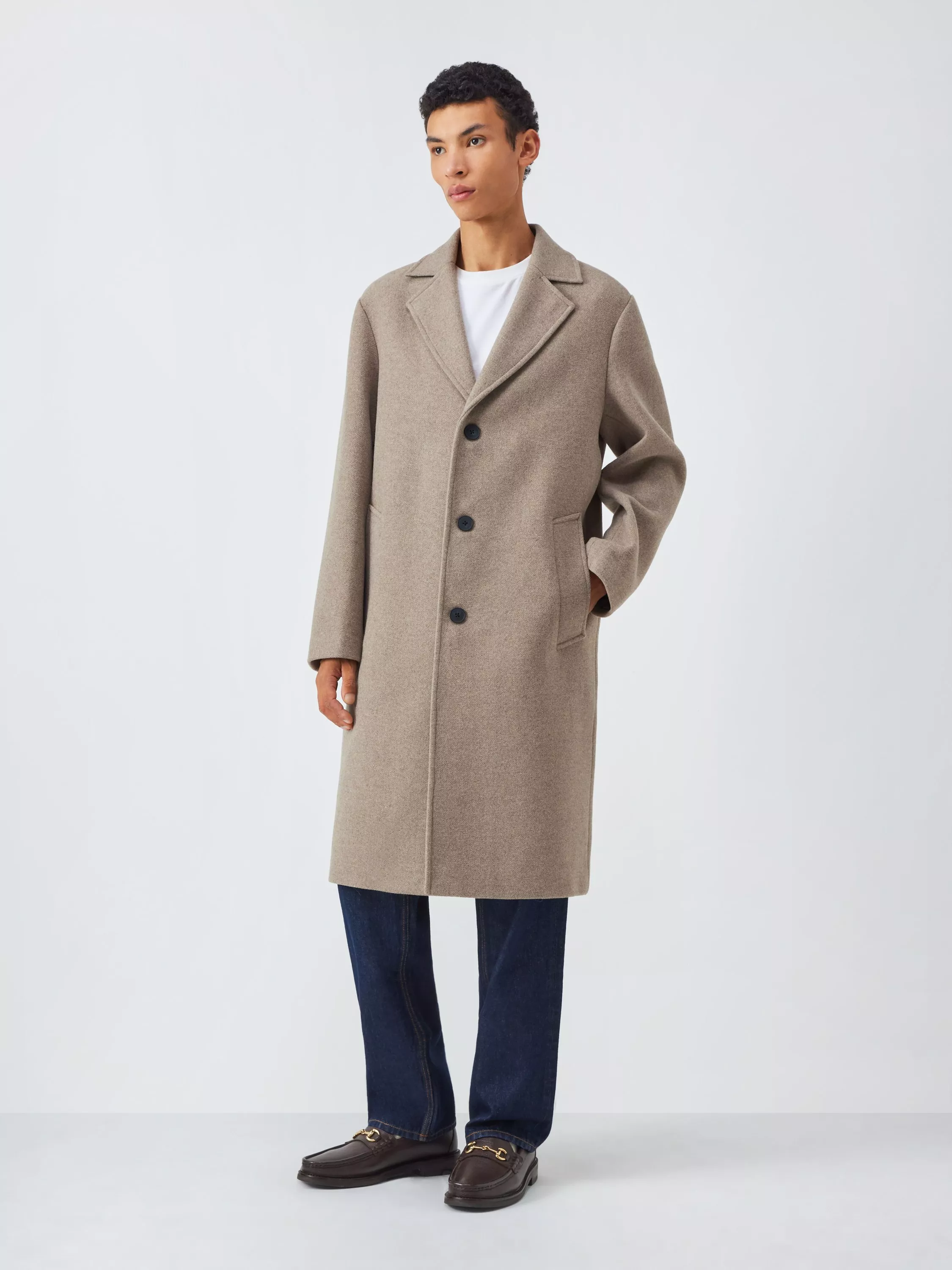 A versatile coat with a three-button front. This piece also has two convenient side entry pockets.