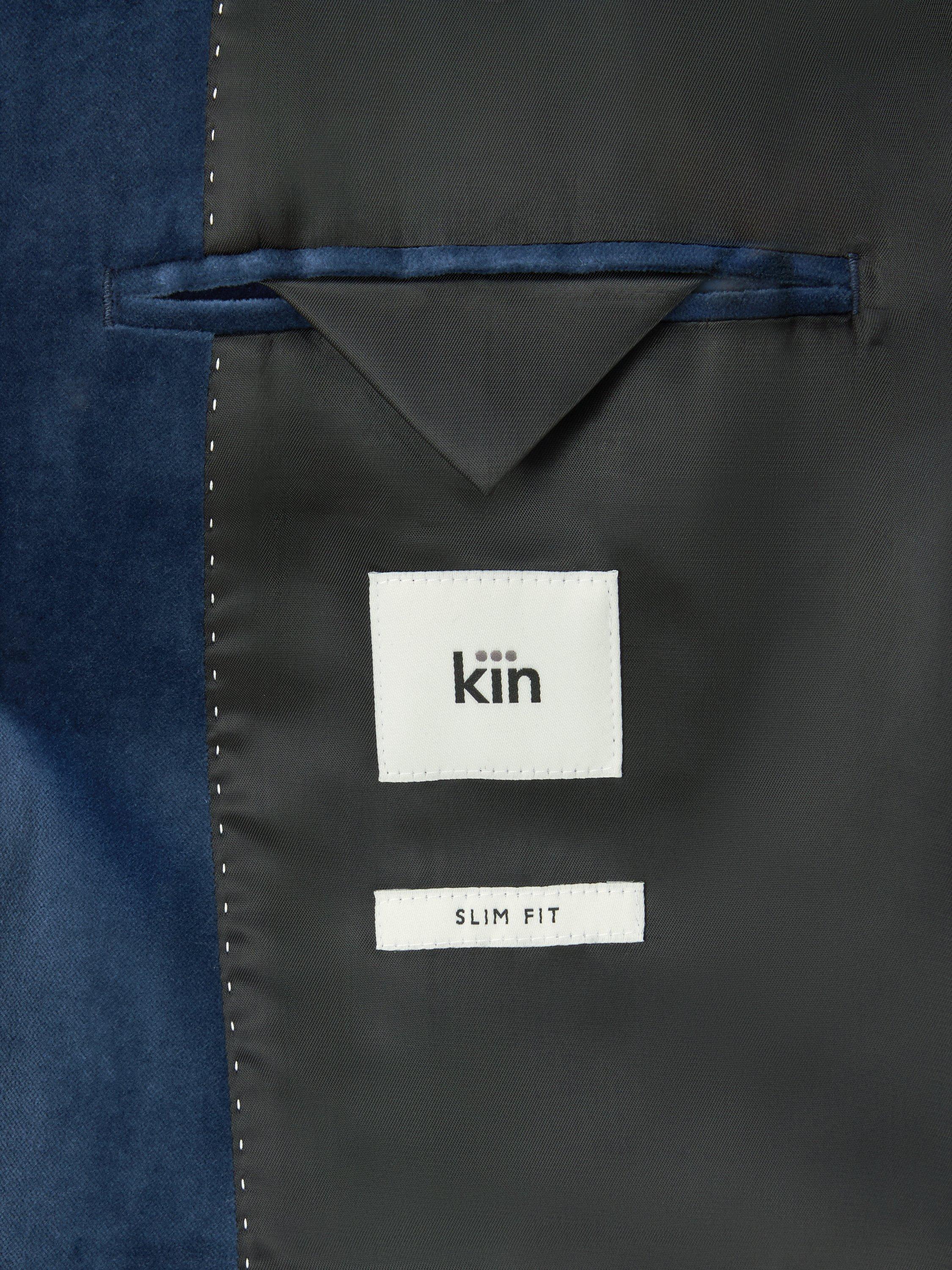 Made from luxurious cotton velvet, this Kin single-breasted jacket is styled with a contrast satin peak lapel, satin jet pockets at the hip and a welt pocket at the chest. Finished with a satin-covered button and a single vent at the back.