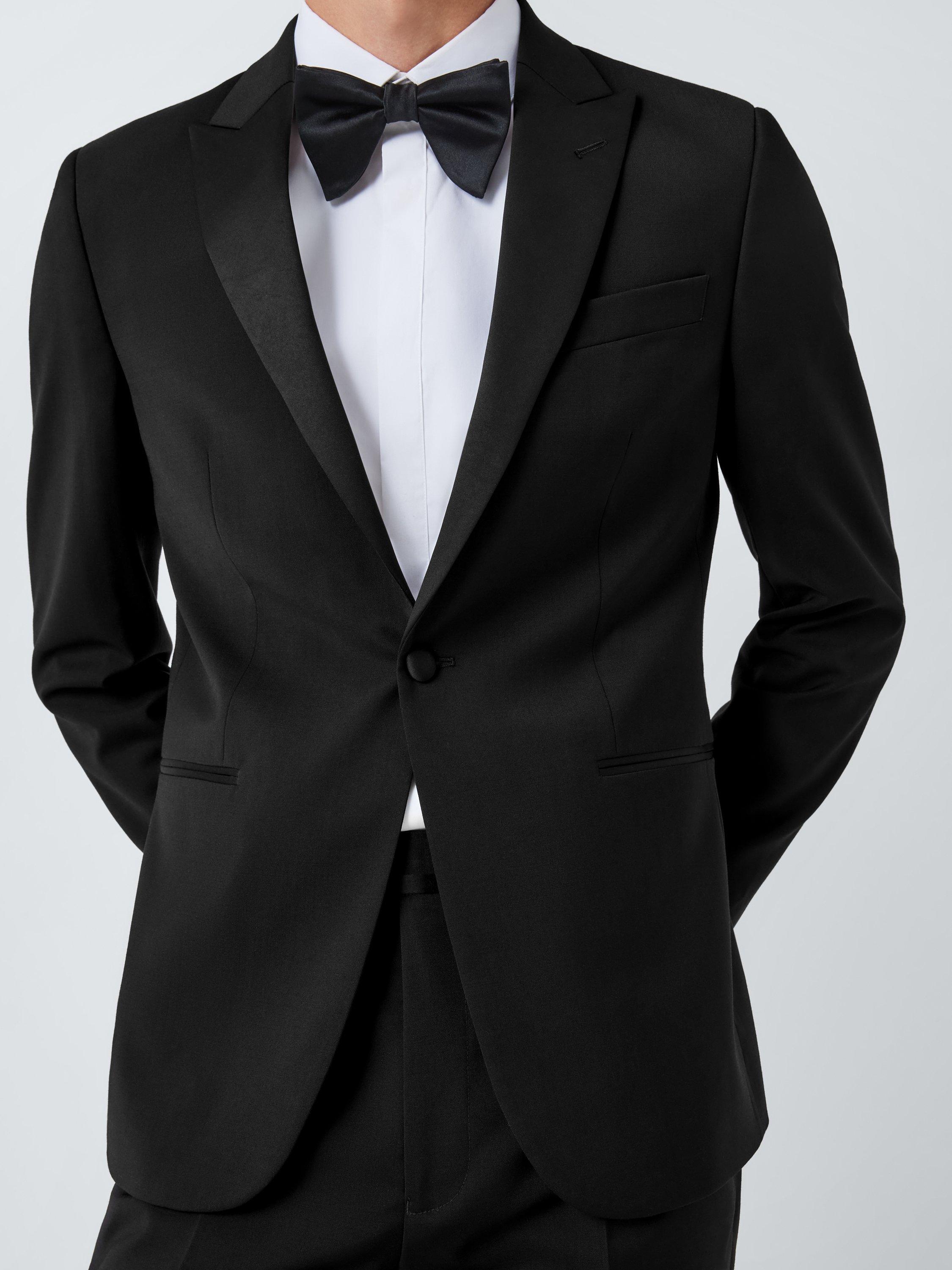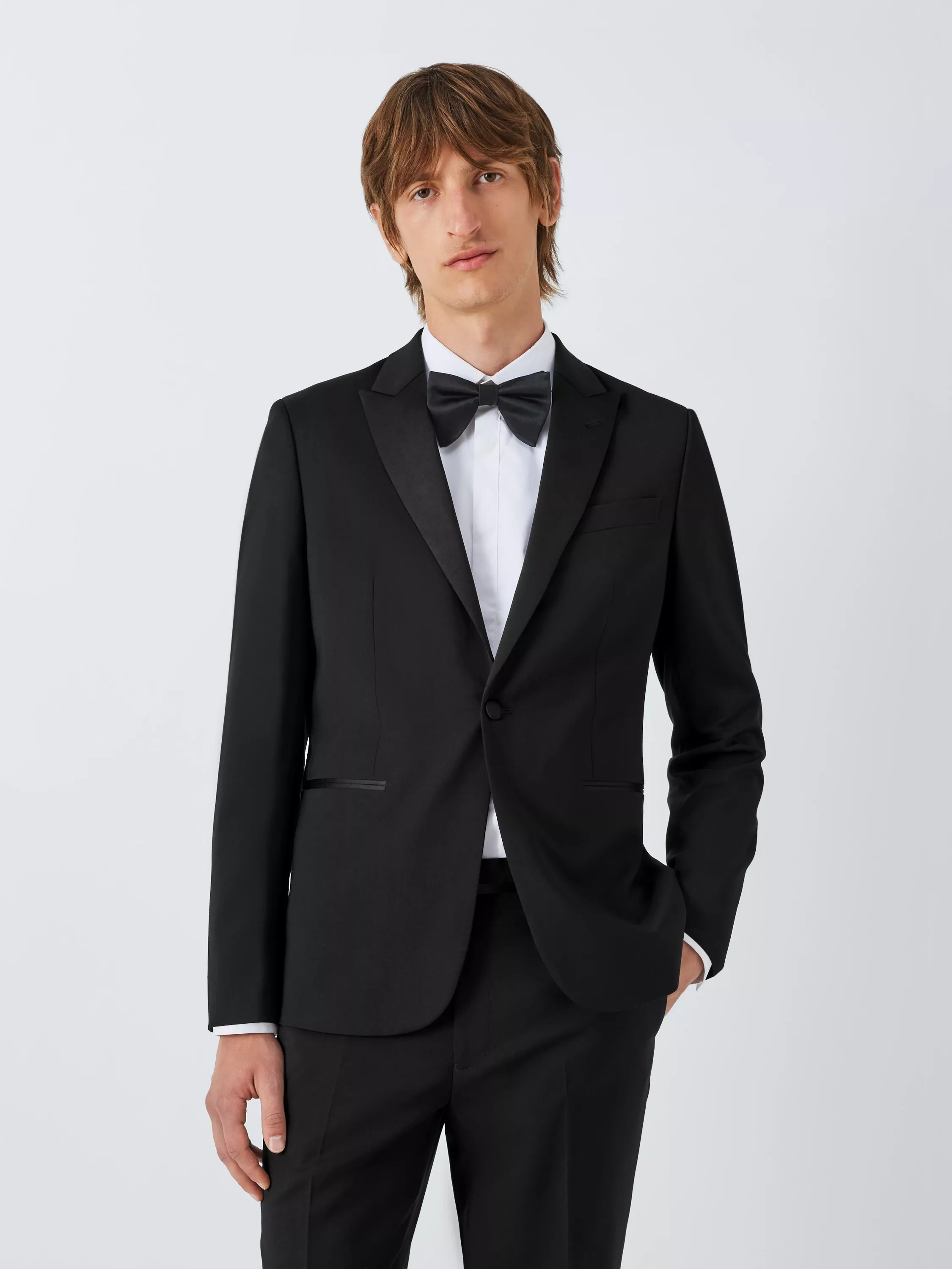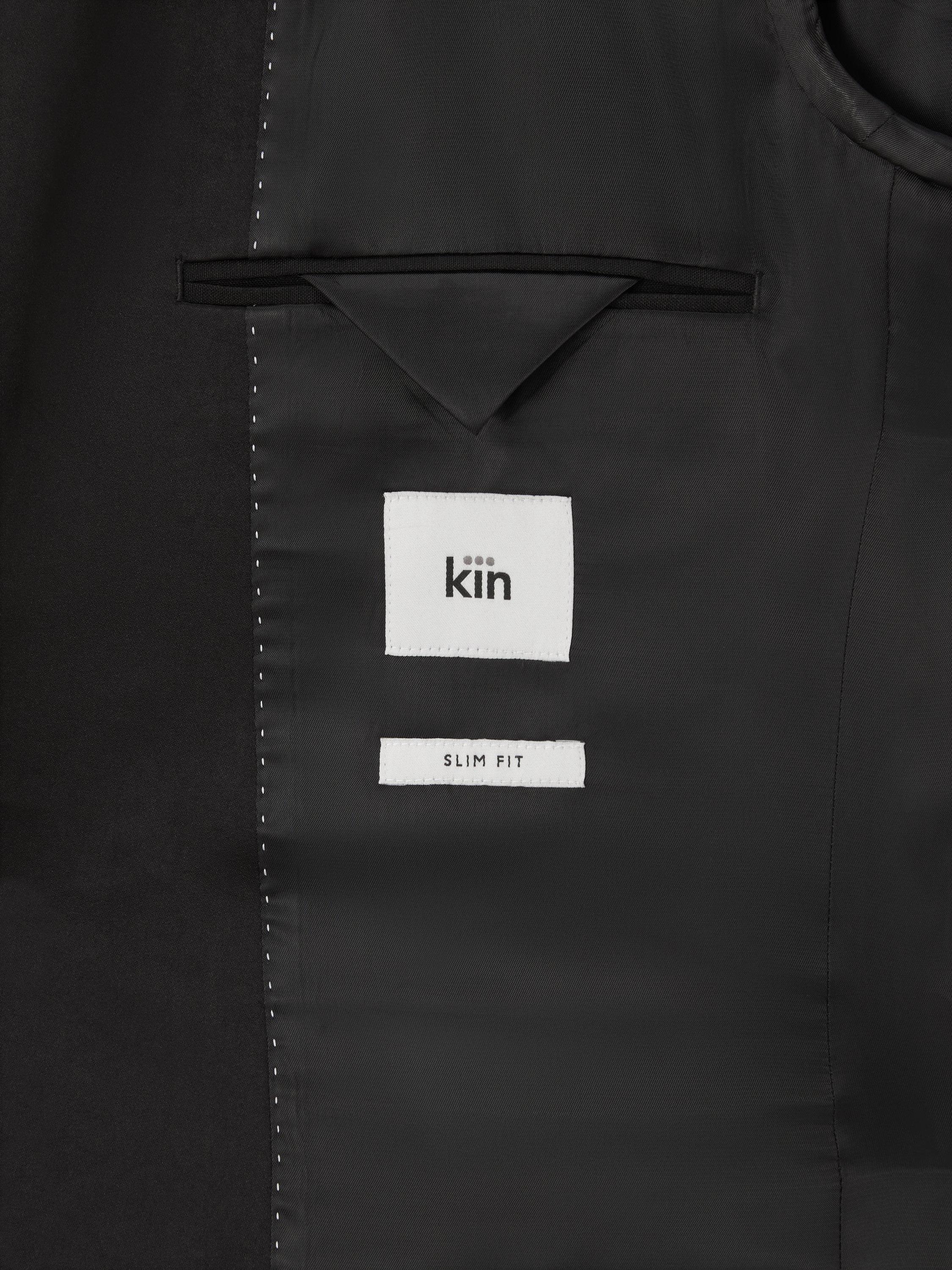 Woven in a wool blend with a touch of stretch for added comfort, this Kin dinner jacket is styled with a contrast satin peak lapel, satin jet pockets at the hip and a welt pocket at the chest. Finished with satin-covered buttons and a centre vent at the back.
