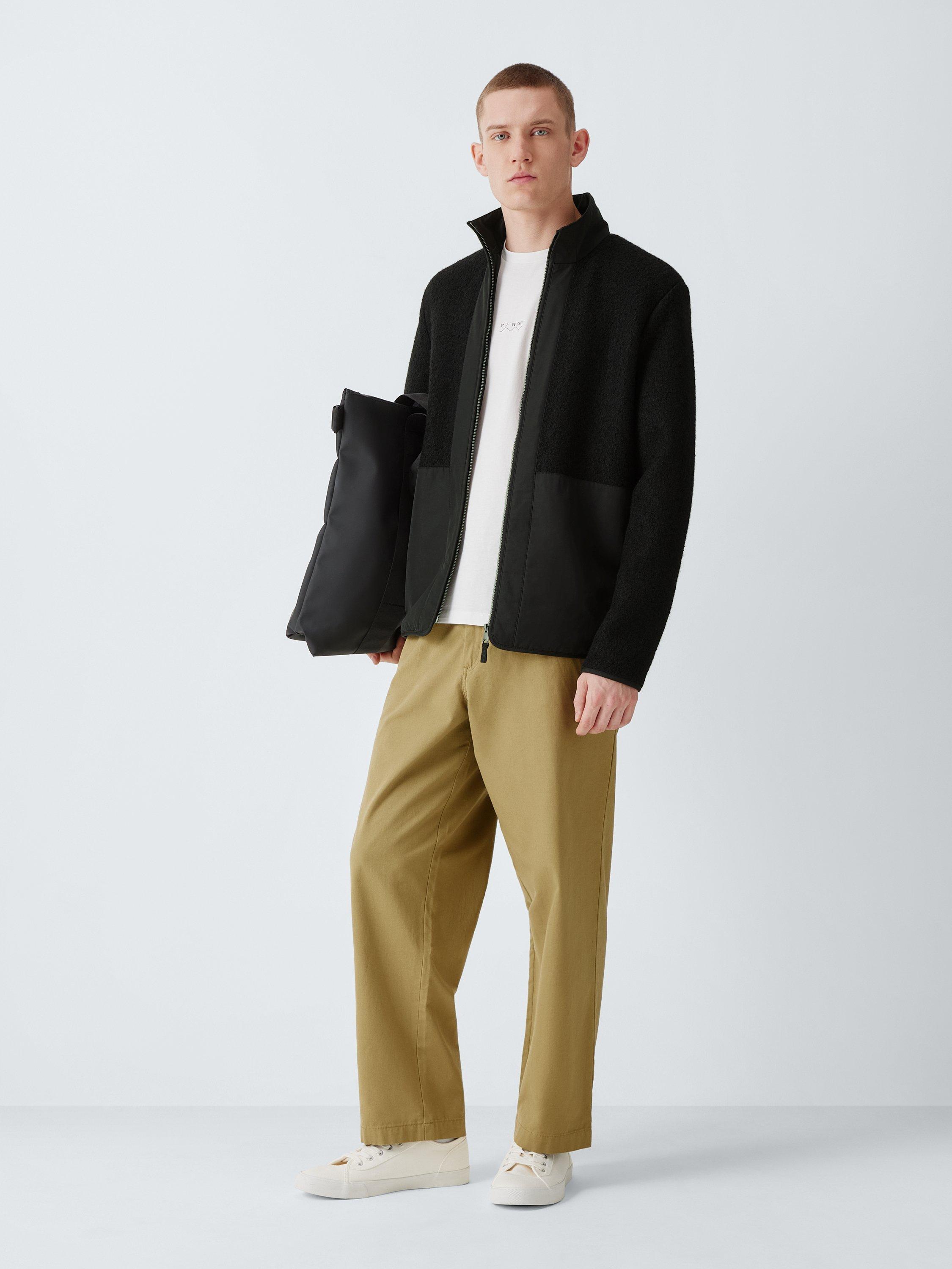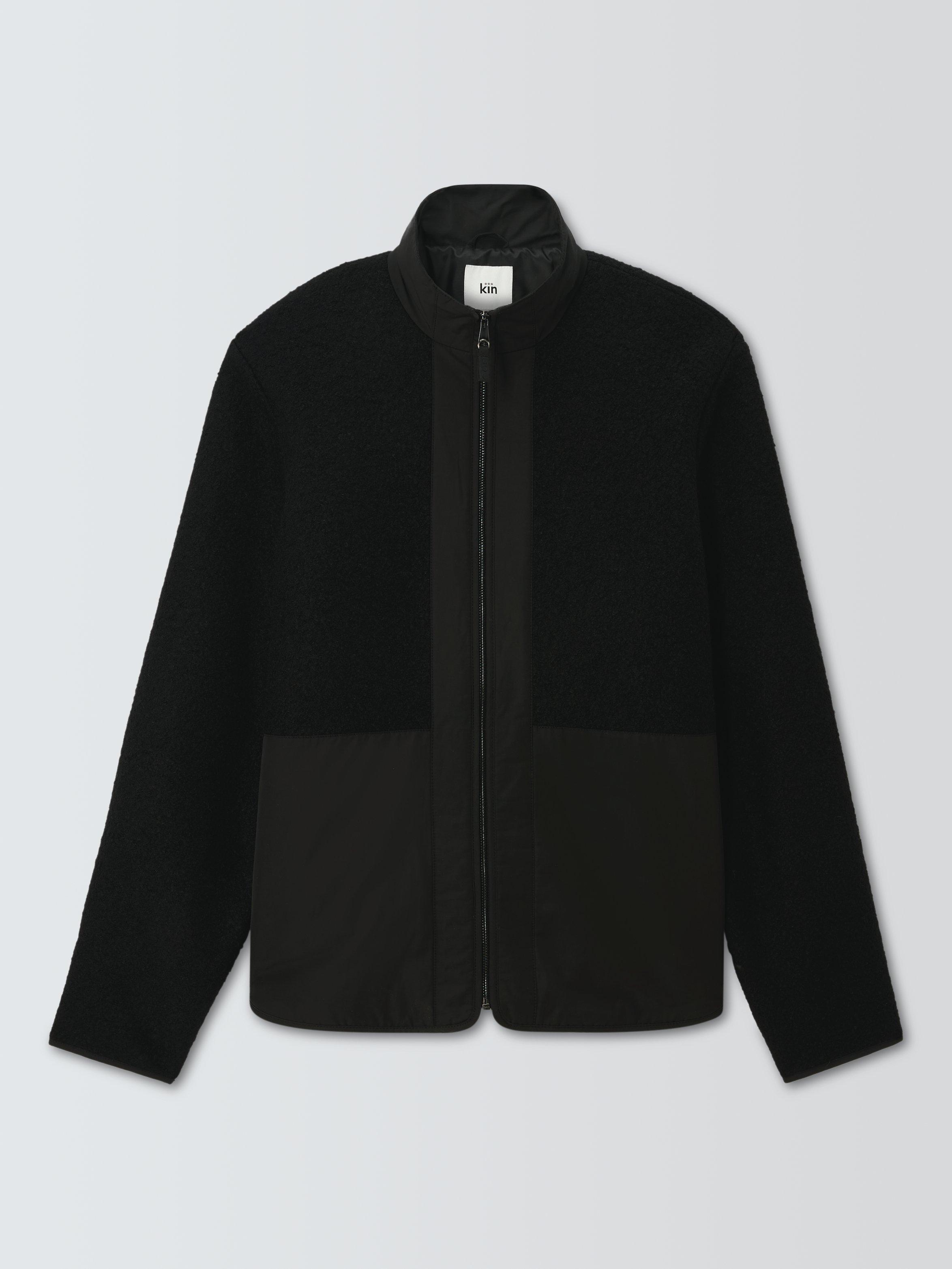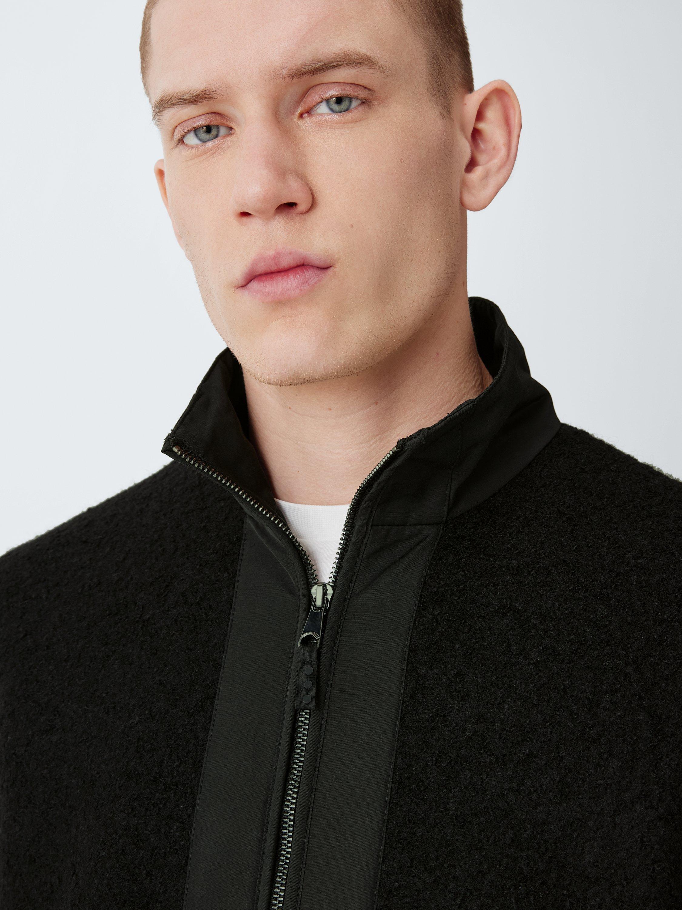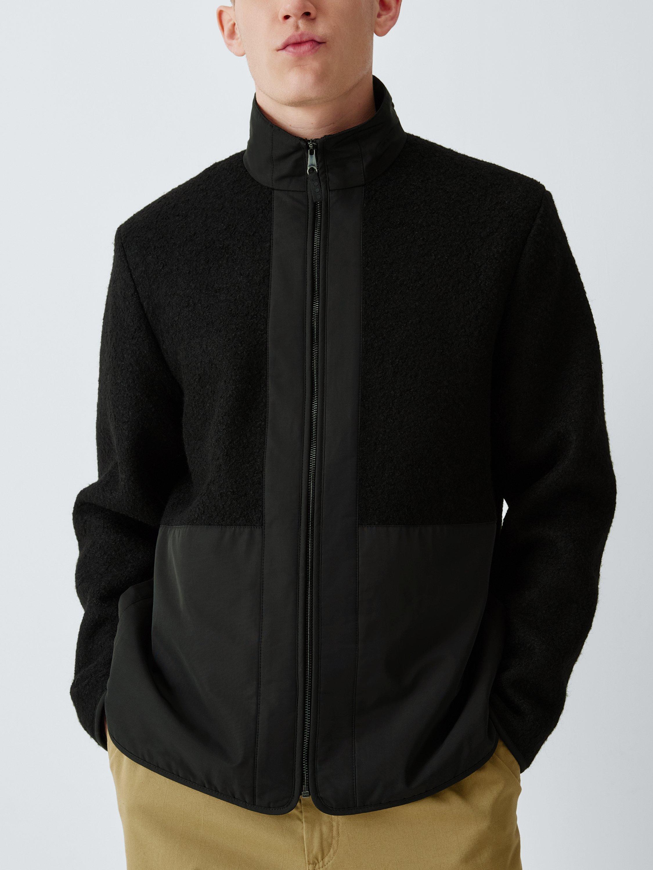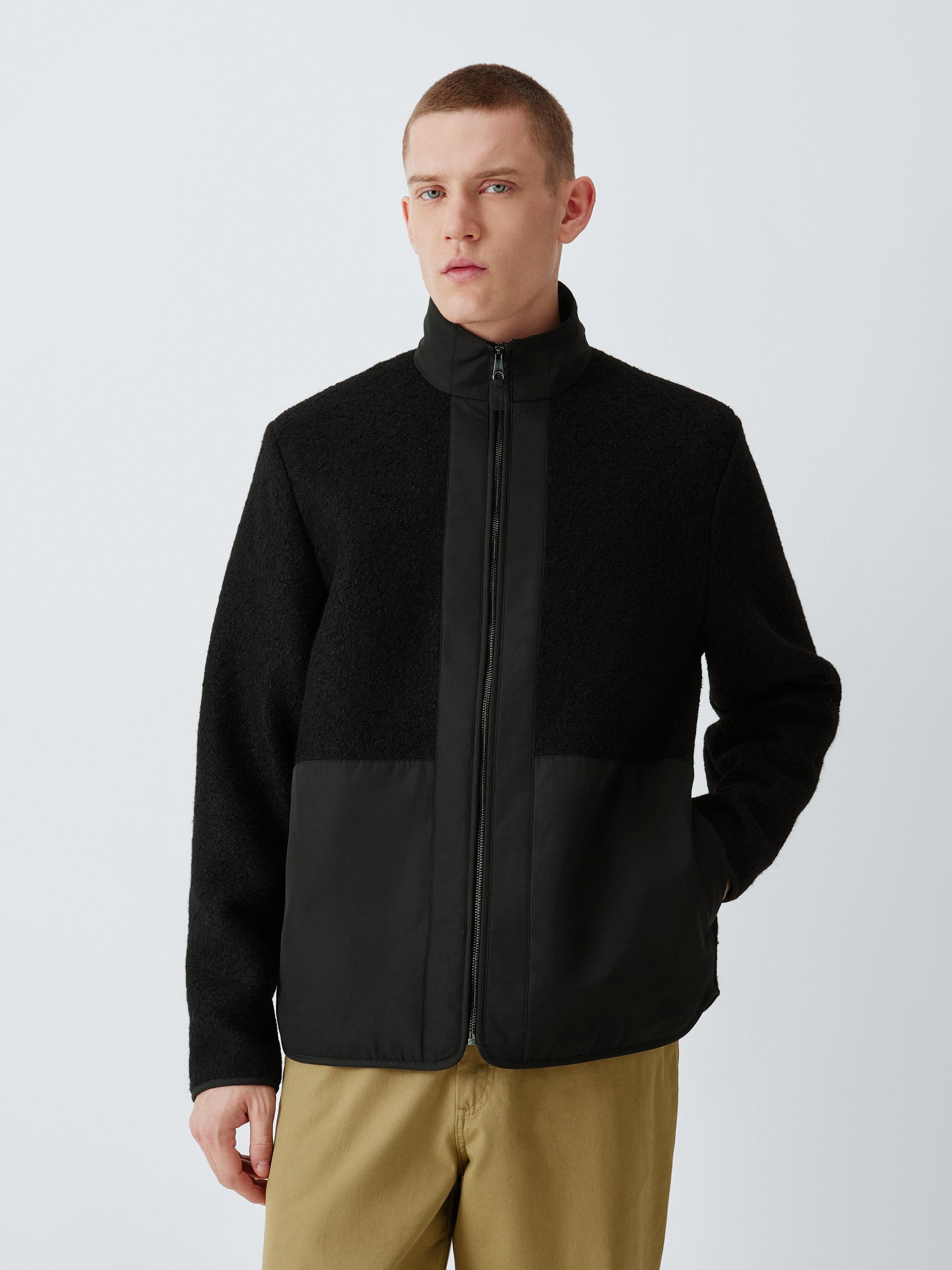 A tactile borg fleece upper meets structured panelling on this jacket. The wool-blend shell provides a natural, insulating warmth that feels substantial yet breathable, ensuring this hybrid design stands up to the elements while maintaining its refined, modern silhouette. Designed for effortless layering, the smooth interior slides easily over winter knitwear, while the high stand collar adds a practical touch of protection.