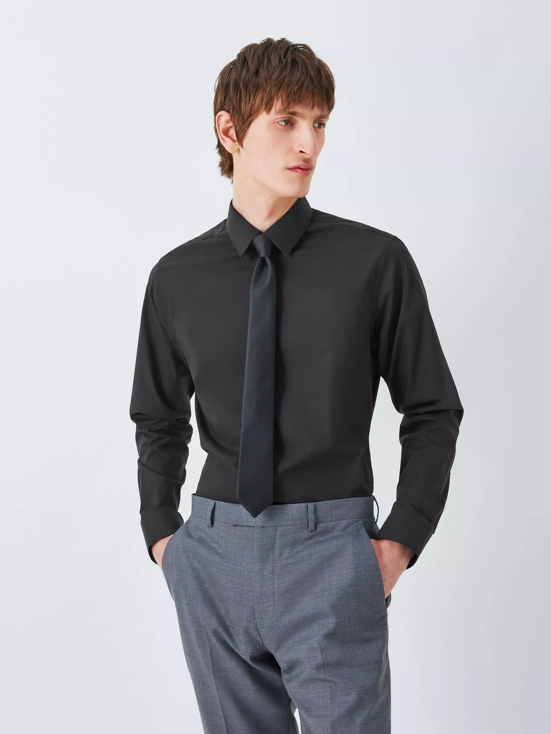 Cut to a slim fit with a point collar and mitred button cuffs, it will slot neatly into your tailored wardrobe.