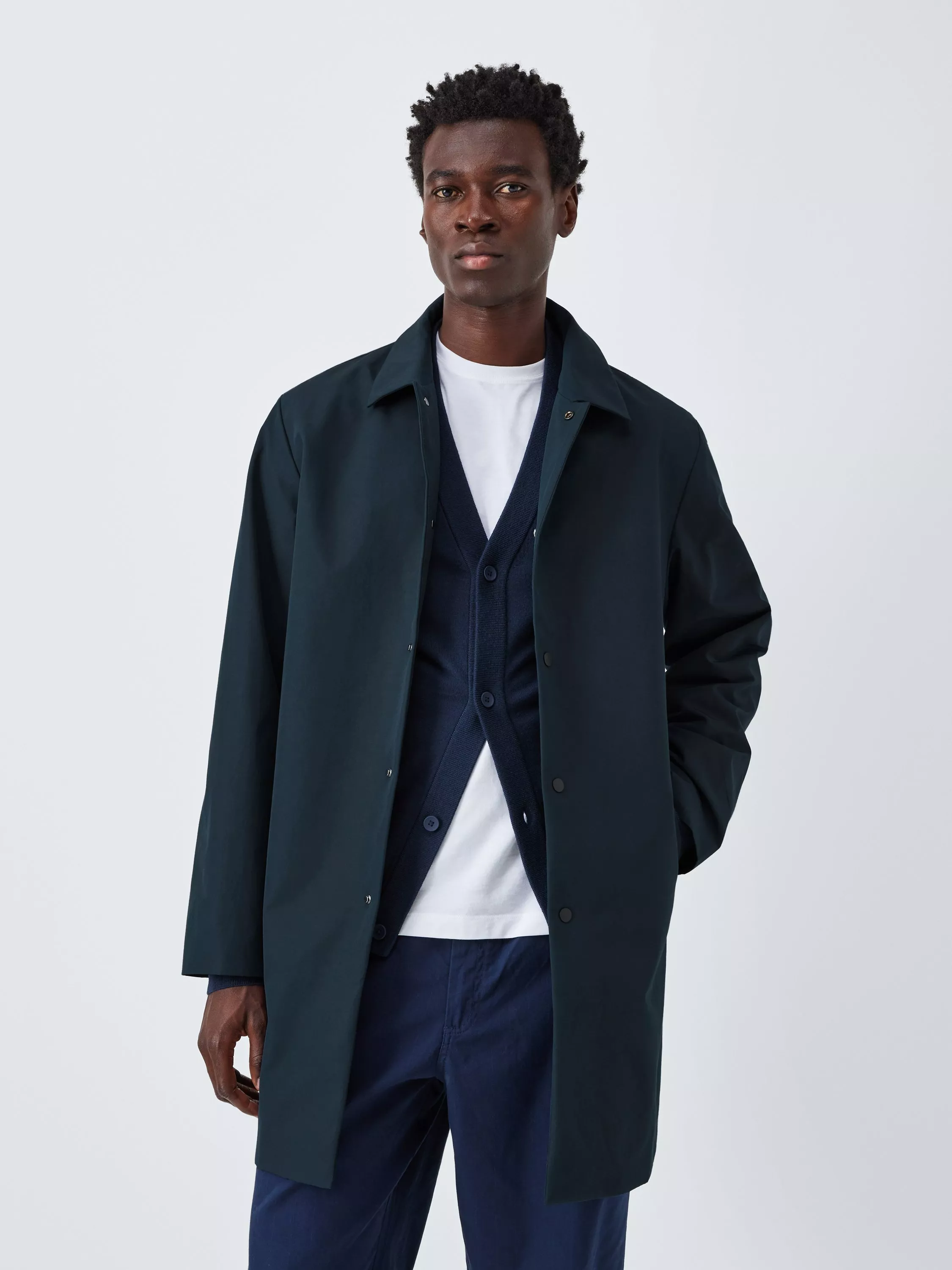 Step in and out of the commute in contemporary style with this Kin mac. Crafted from a cotton-rich fabric in a mid-length design, the coat features a button front and collar neckline to create a classic look. Pockets to the side add a practical touch.