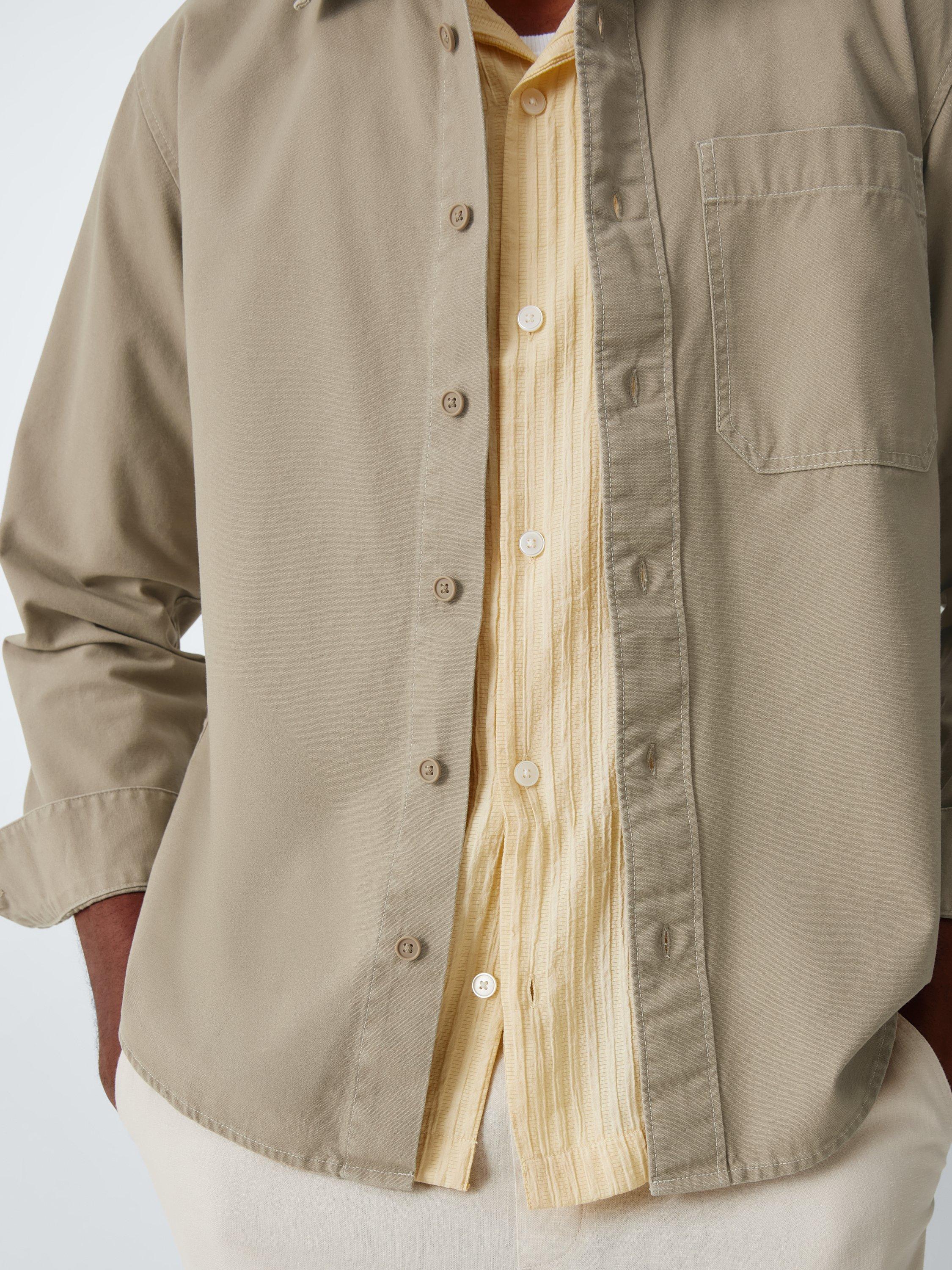 Topstitch detailing lends a utilitarian edge to this shirt. The heavy-gauge cotton weave provides a structured drape that holds its shape through regular wear. This material is durable, breathable and soft, with a finish that improves with age.