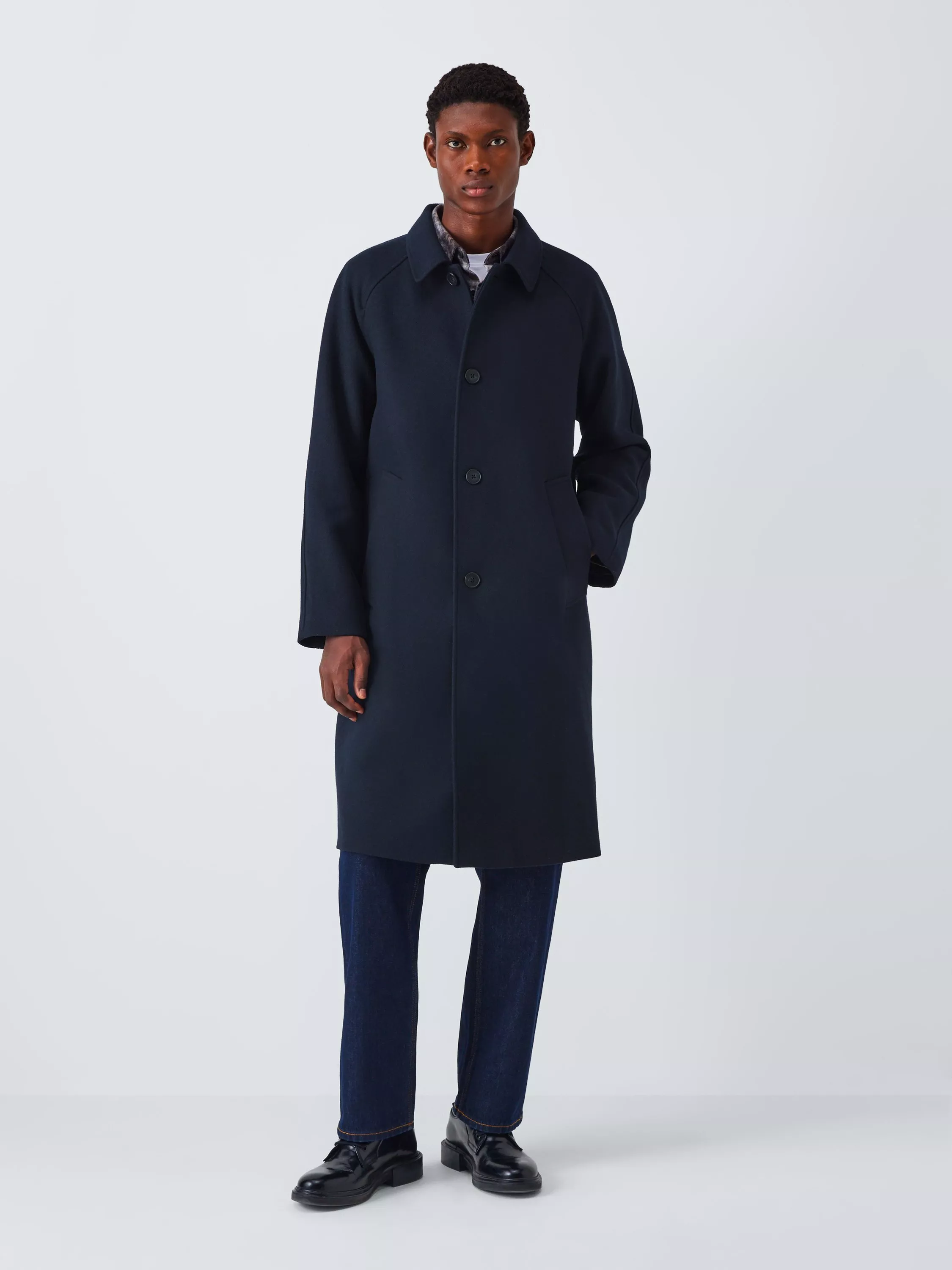 Car coat made of a soft, warm wool blend. Featuring a button-down front, collar and side pockets for a clean look.