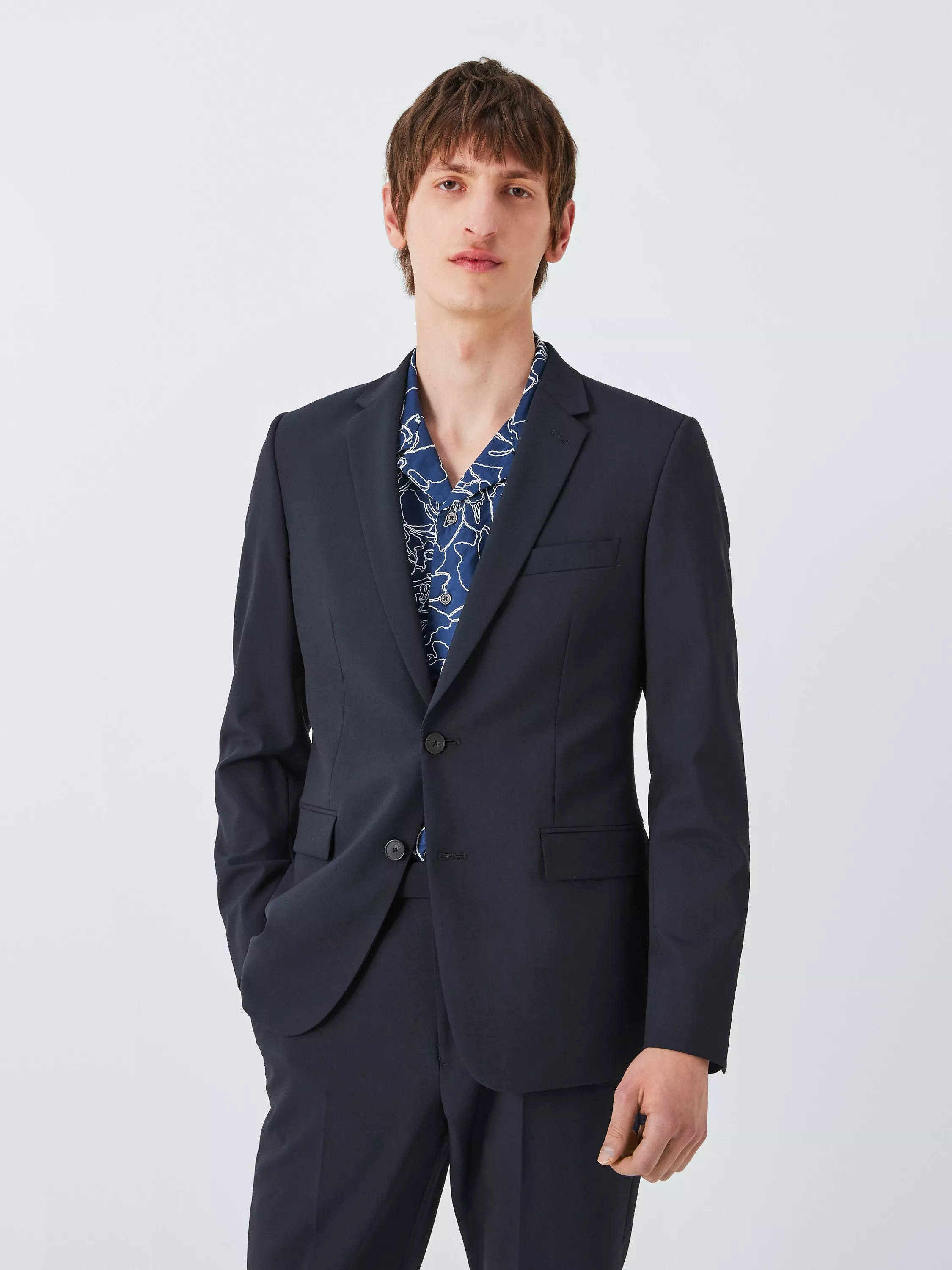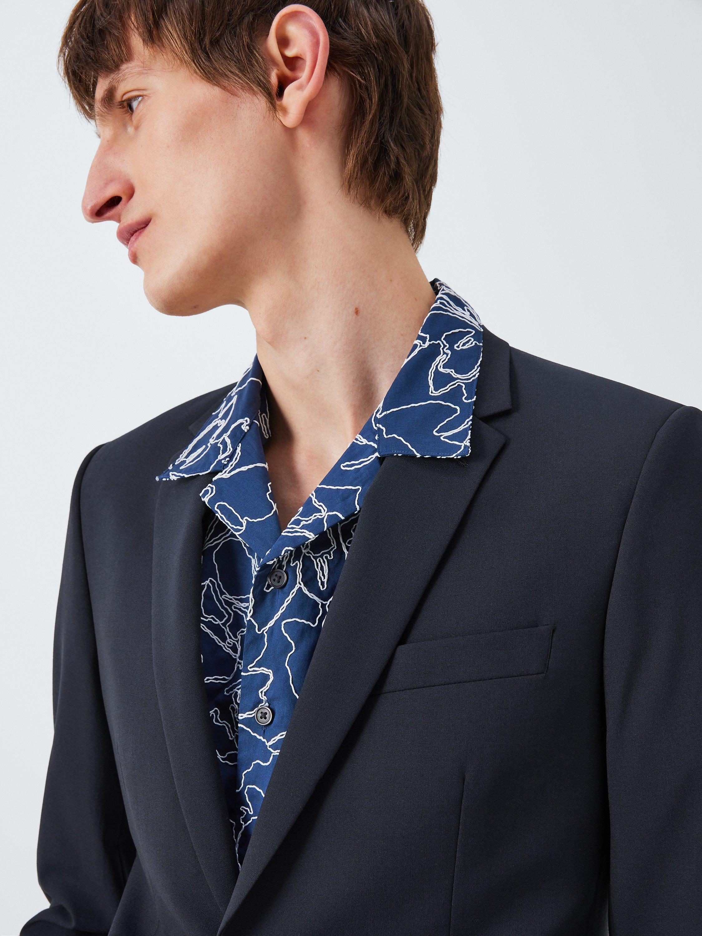 Tailored to our slim fit specification, this jacket has a softer shoulder line and is tapered through the waist. Inside, the jacket is fully lined in a black viscose blend with our signature white pick stitch and finished with two internal pockets.