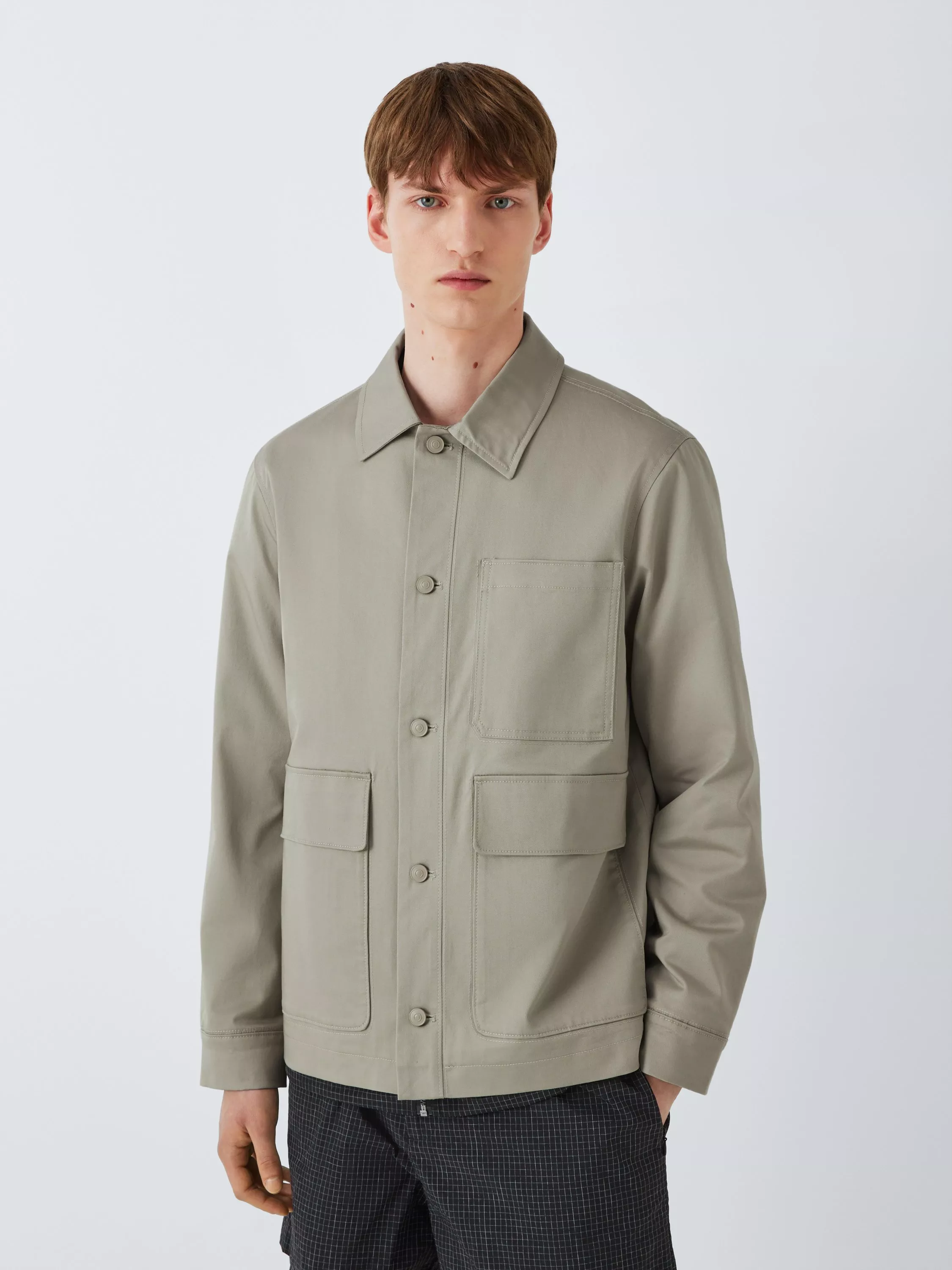 In keeping with Kin's clean, contemporary style, this Kin workwear jacket is a utility-inspired design with a simple collar and button-down front, a single patch pocket at the chest and two front flap pockets. It's water-resistant in light rainfall and made from a stretch cotton blend in a relaxed silhouette for comfortable wear.