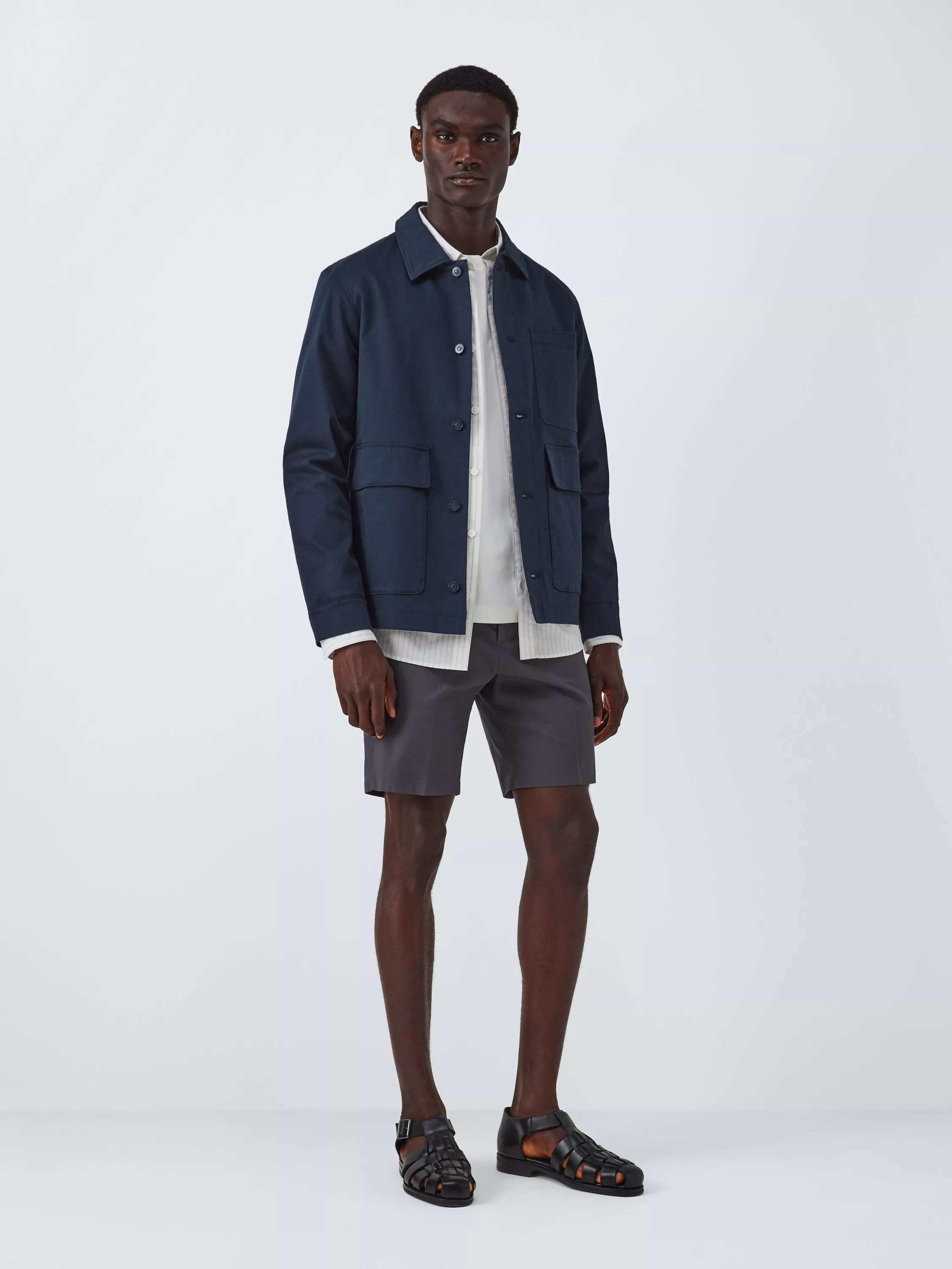 In keeping with Kin's clean, contemporary style, this Kin workwear jacket is a utility-inspired design with a simple collar and button-down front, a single patch pocket at the chest and two front flap pockets. It's water-resistant in light rainfall and made from a stretch cotton blend in a relaxed silhouette for comfortable wear.