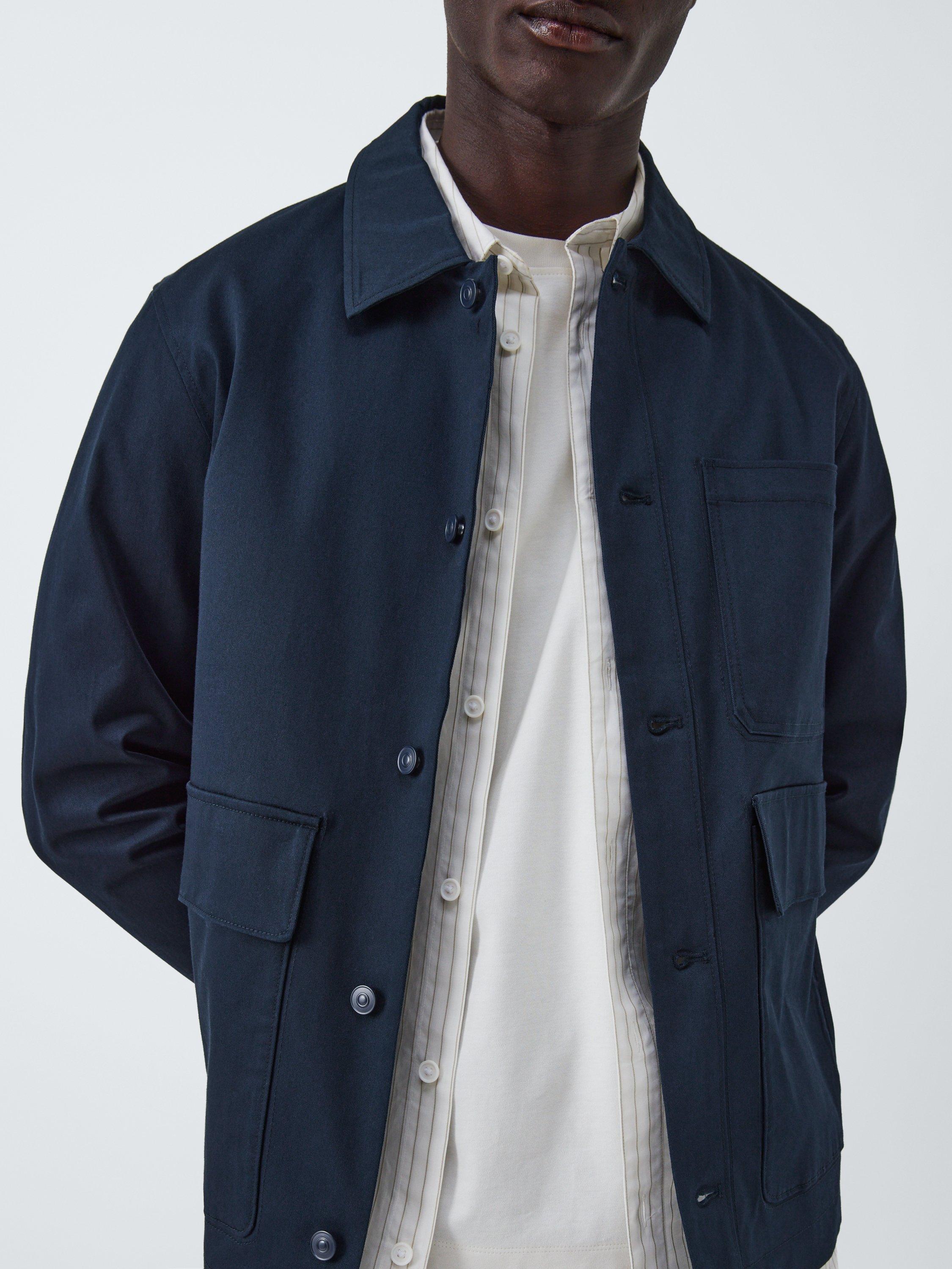 In keeping with Kin's clean, contemporary style, this Kin workwear jacket is a utility-inspired design with a simple collar and button-down front, a single patch pocket at the chest and two front flap pockets. It's water-resistant in light rainfall and made from a stretch cotton blend in a relaxed silhouette for comfortable wear.