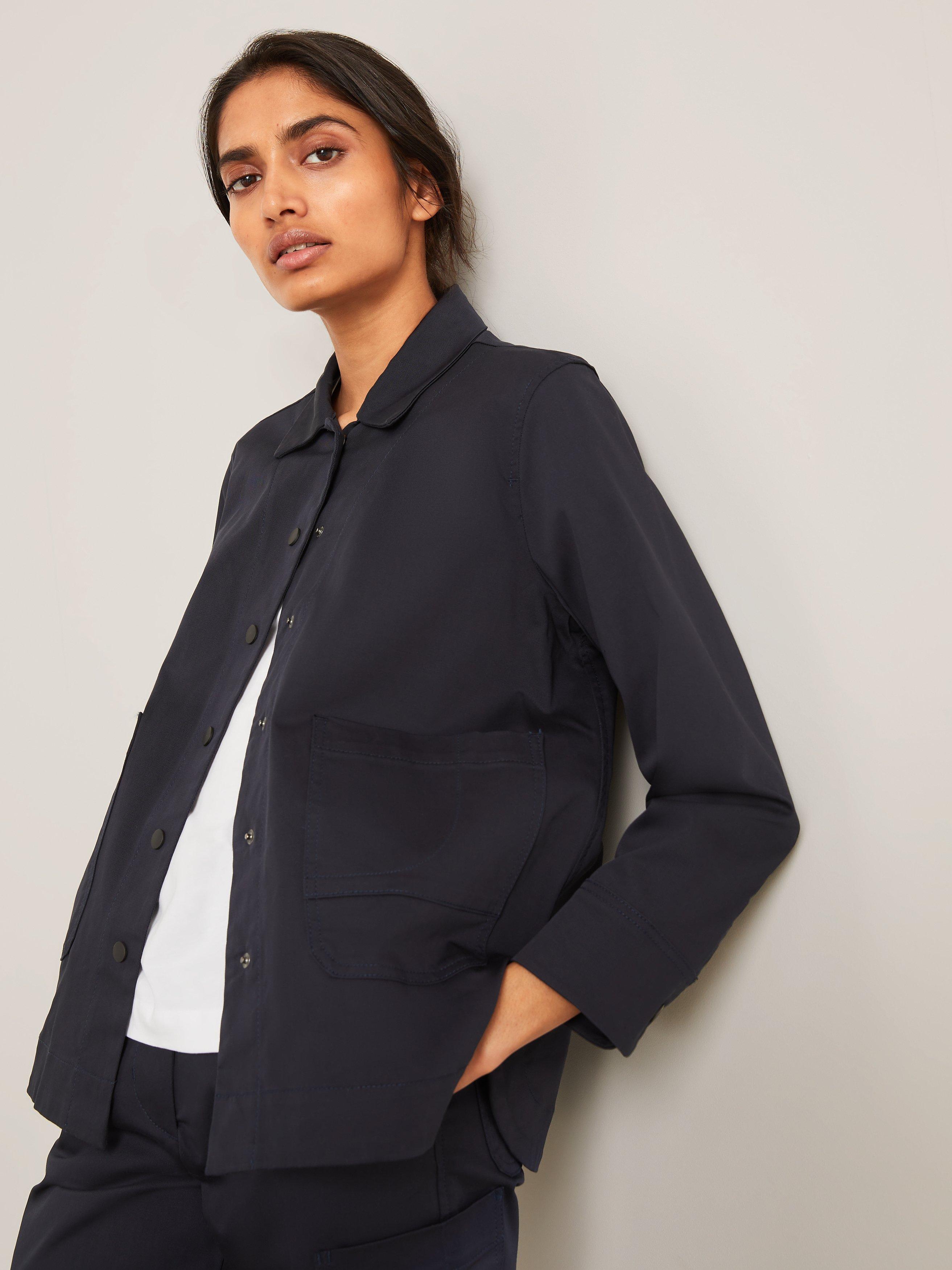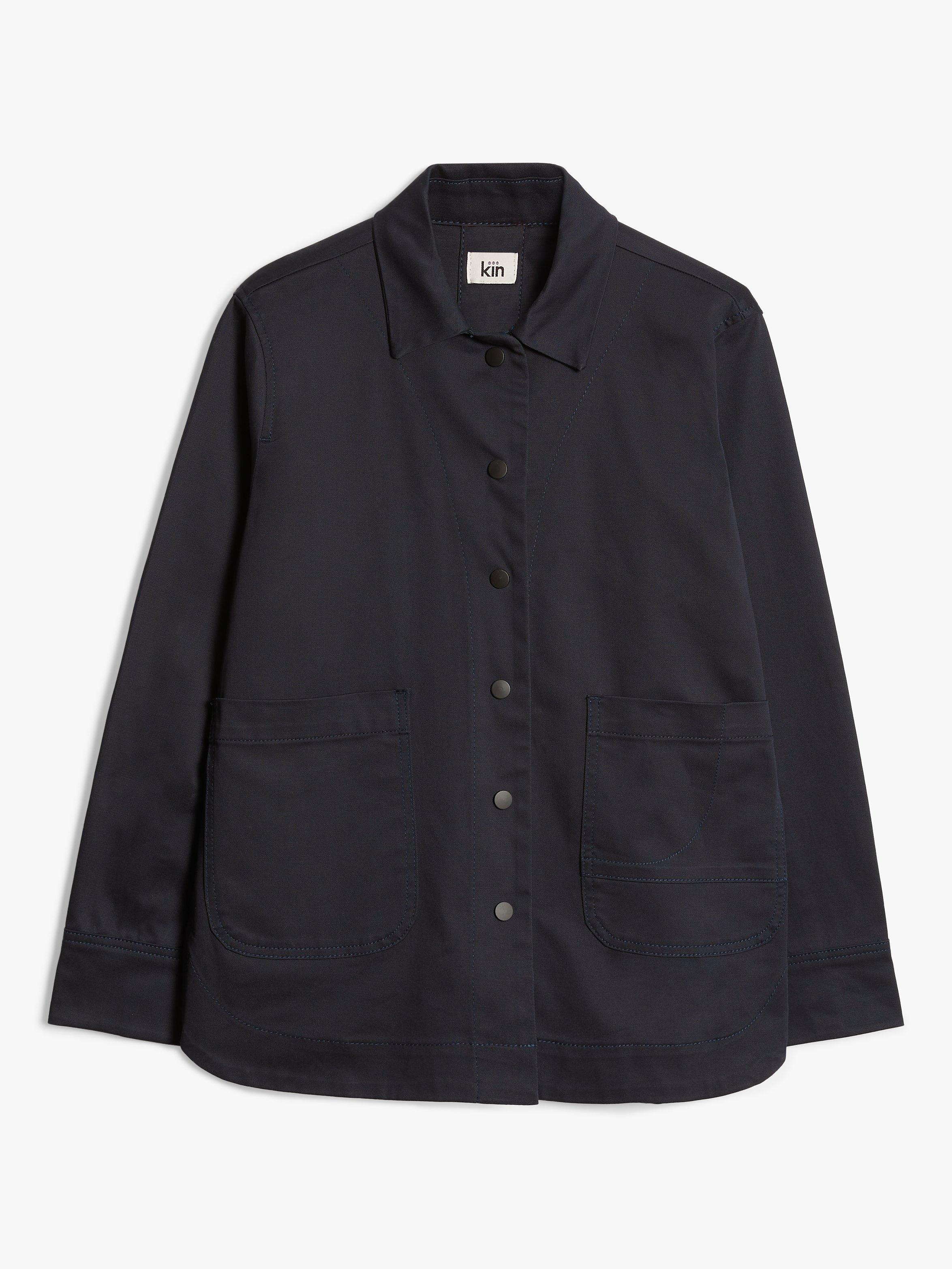 The perfect example of Kin's clean, contemporary style, this Kin workwear jacket is made from a soft cotton blend in a relaxed silhouette. It has an easy shape with a utility-inspired design complete with two front patch pockets and a popper fastening.