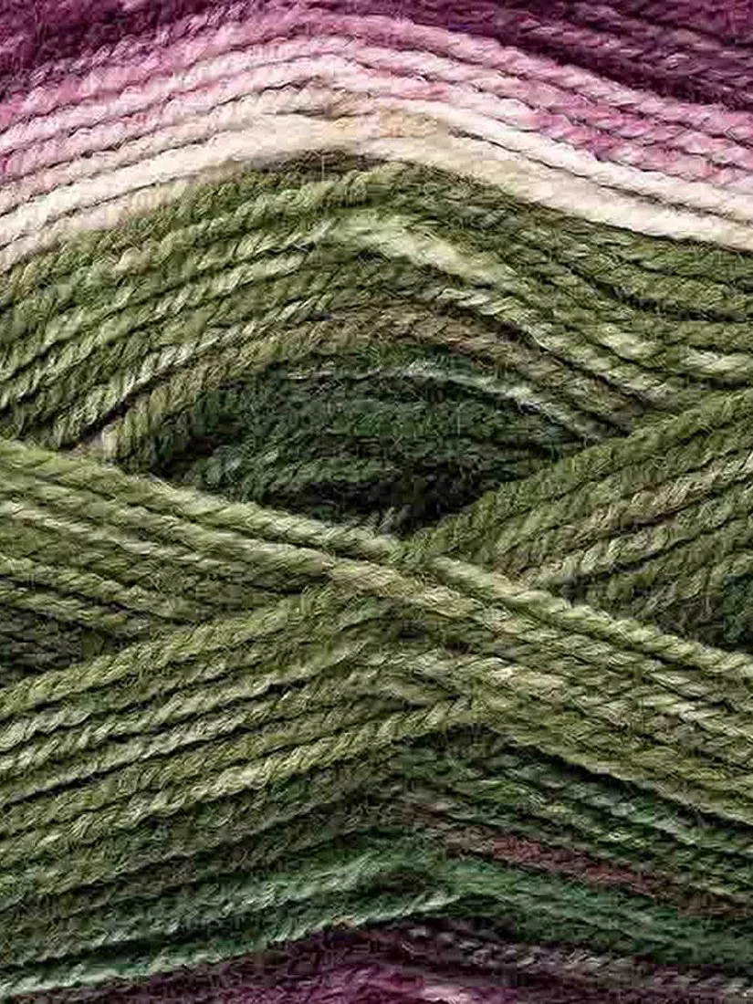 This DK yarn comes in beautiful nature-inspired colour mixes which self-stripe when knitting. A smooth spun yarn, it's ideal to crochet with as well as knit.