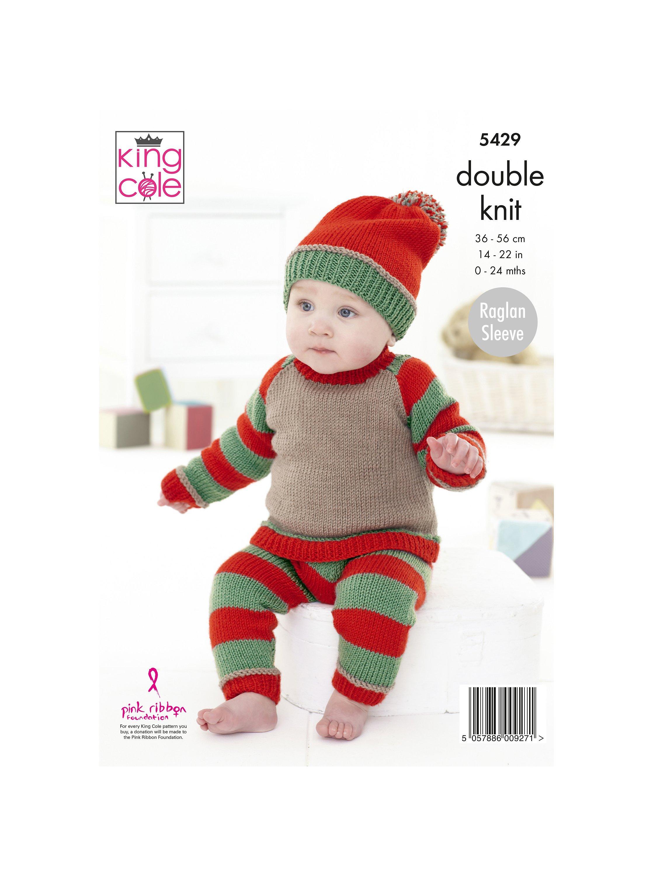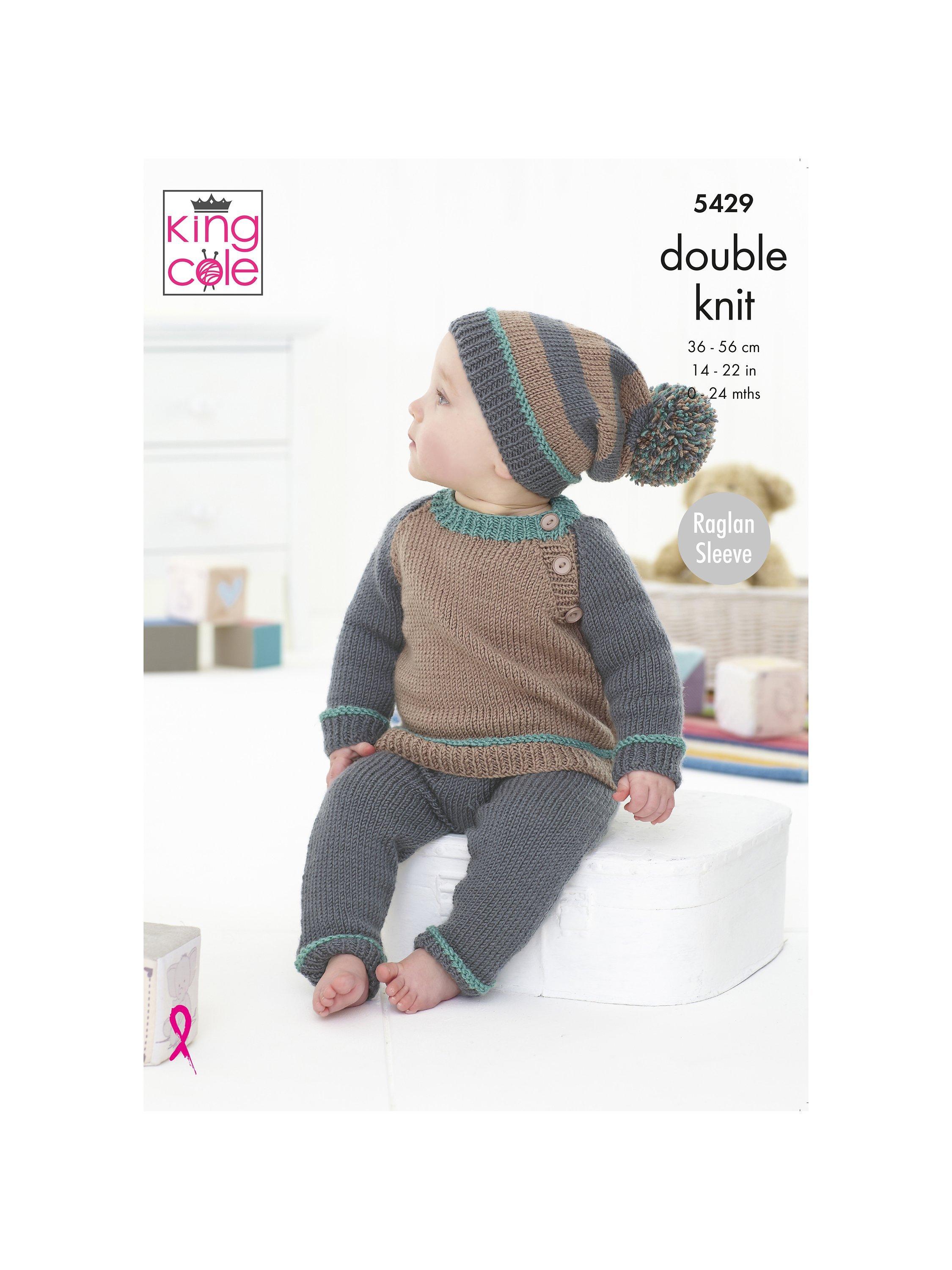 This baby set is knitted in King Cole Cherished DK yarn.