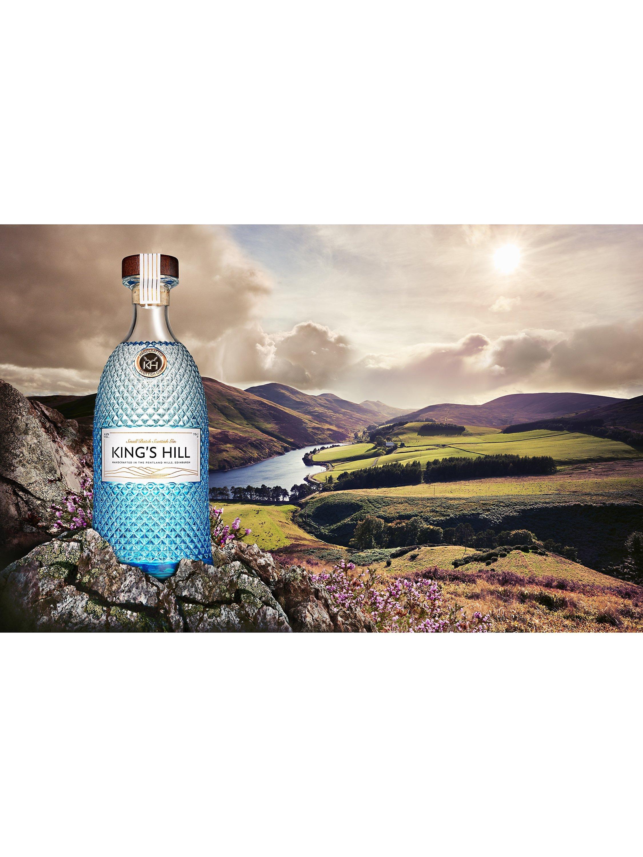 The award-winning hand-crafted King's Hill Gin in a new bespoke bottle. Piney juniper berries form the perfect backbone of this gin. Locally-foraged heather, rosehips, gorse and elderflower add smoothness, depth and character.