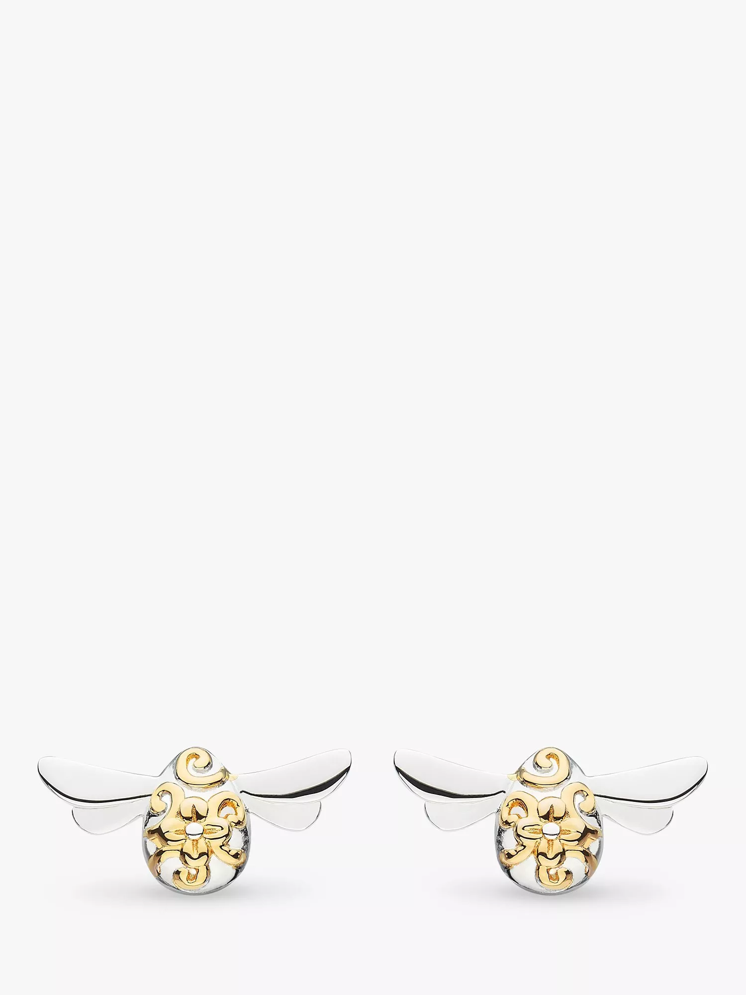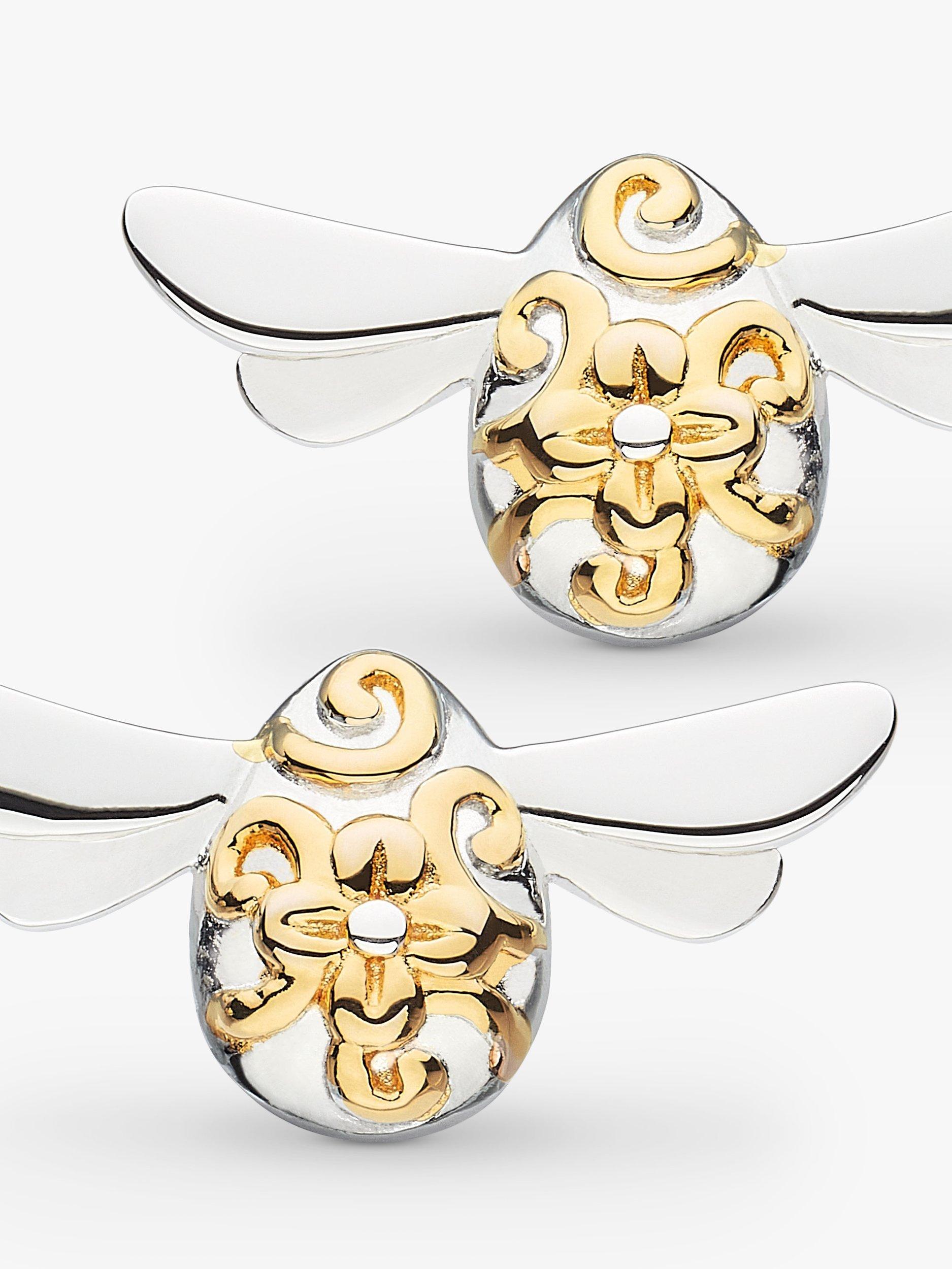 Show your appreciation for these busy pollinators. Made from 925 sterling silver, with rhodium and 18ct gold plate, these beautiful bee earrings feature a high shine finish and scrolled floral design.