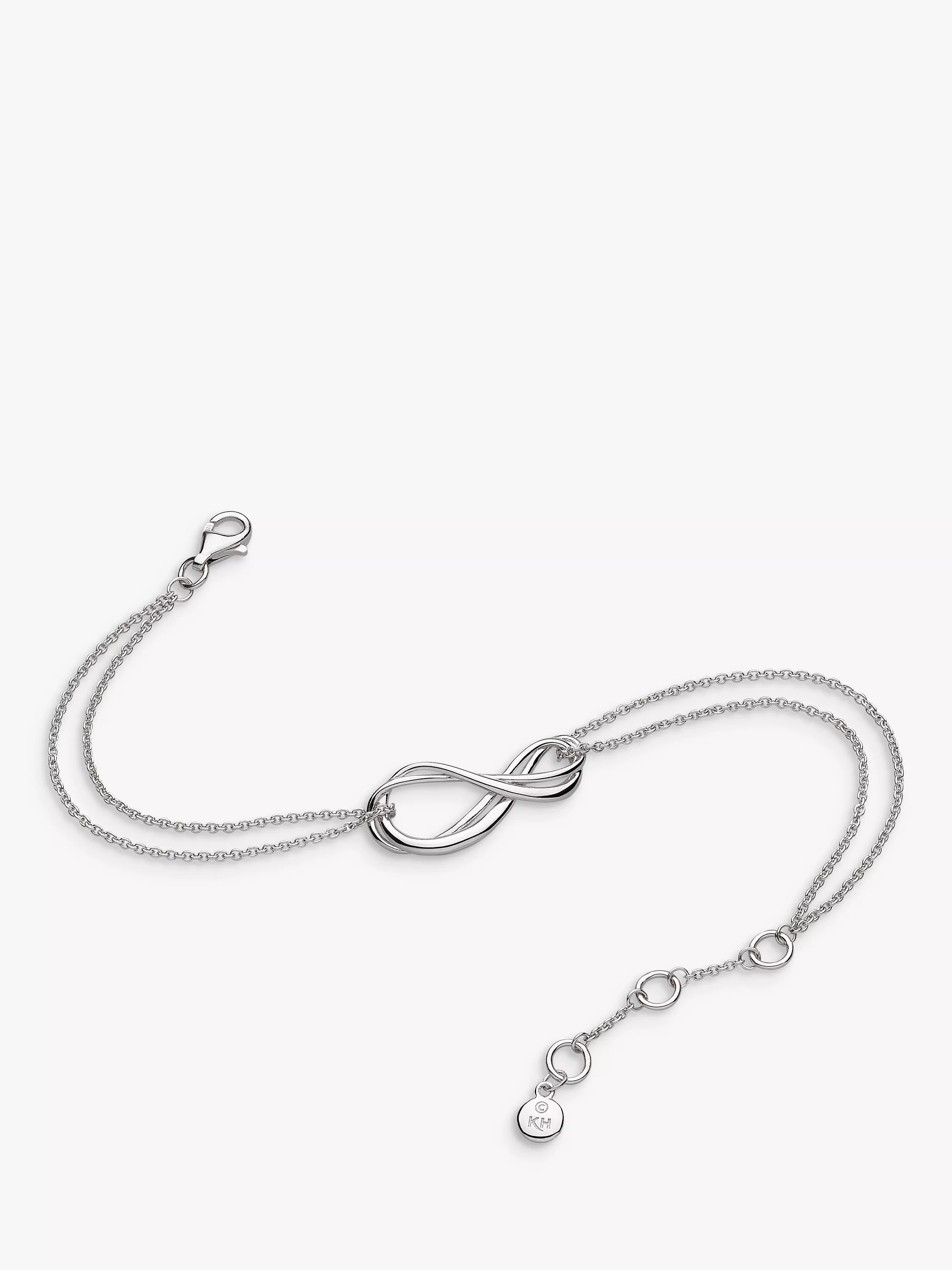 Featuring the Infinity symbol, this double-chain sterling silver bracelet from Kit Heath is designed to celebrate endless love. It is adjustable to three different lengths for a comfortable fit.